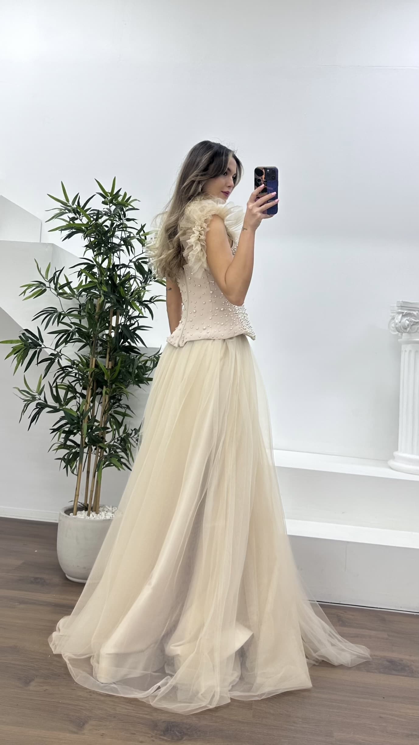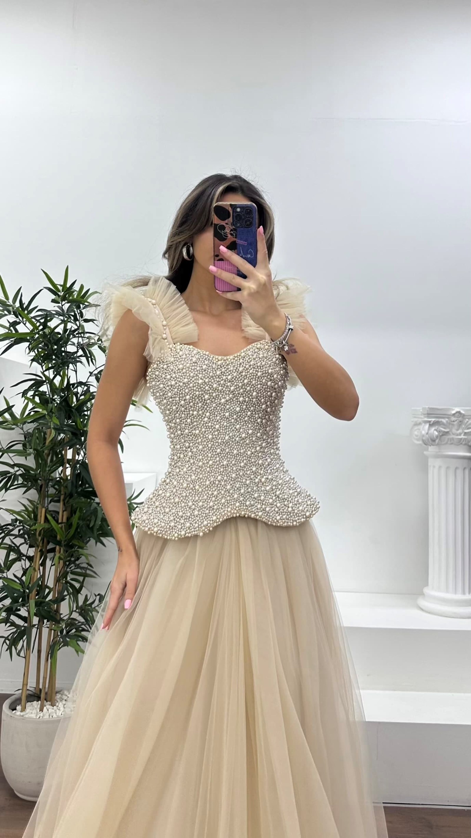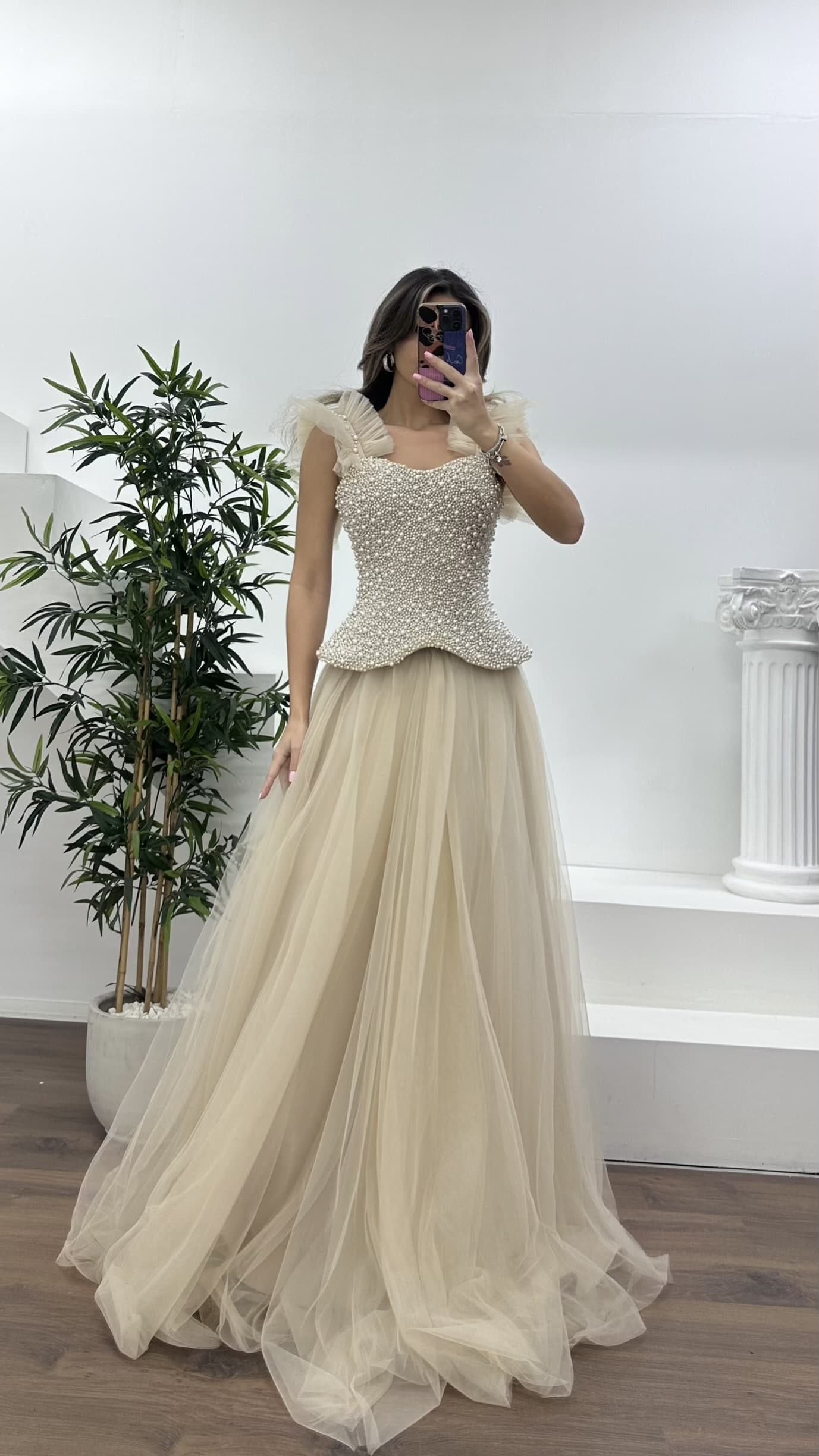 İnci kaplı korse detaylı abiye elbise