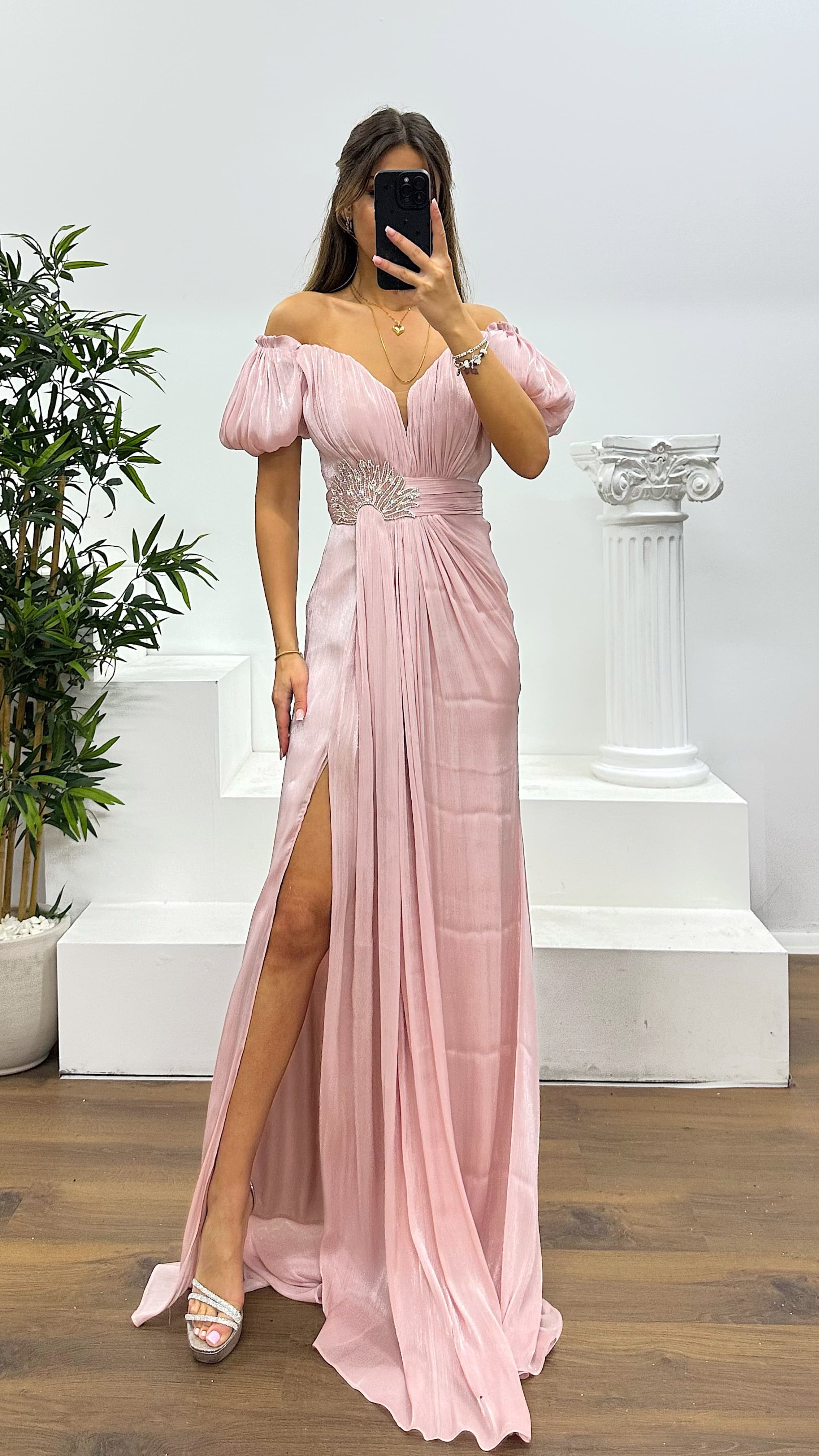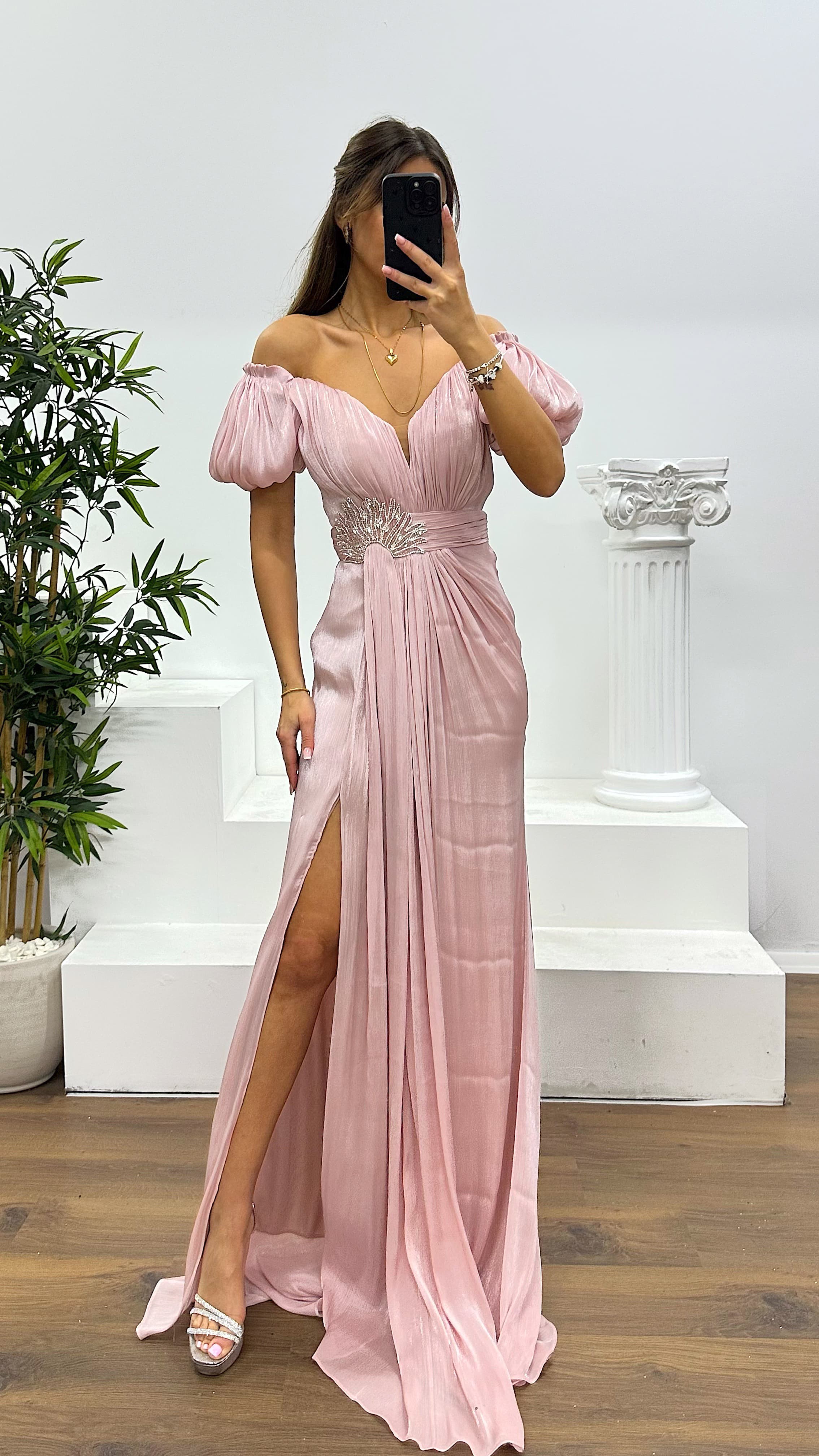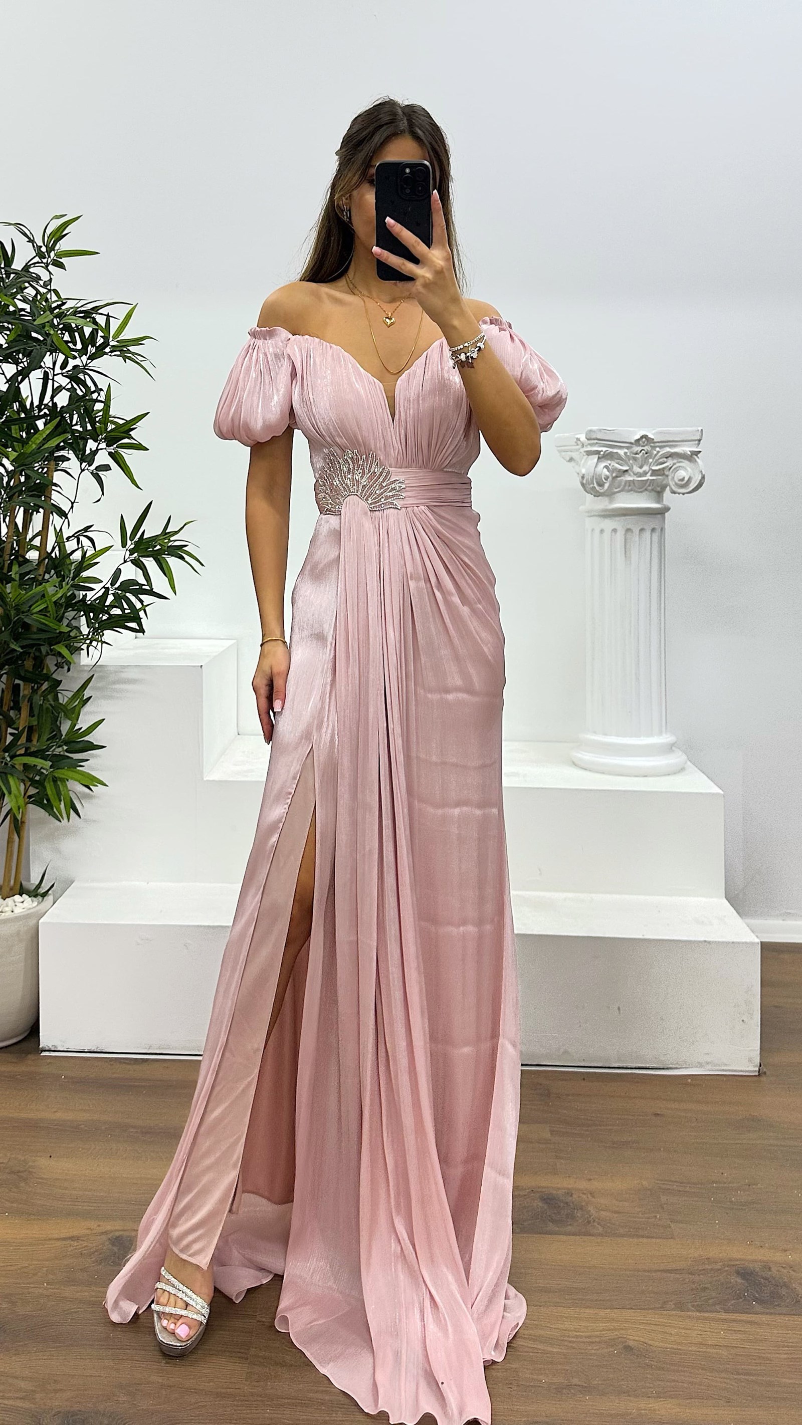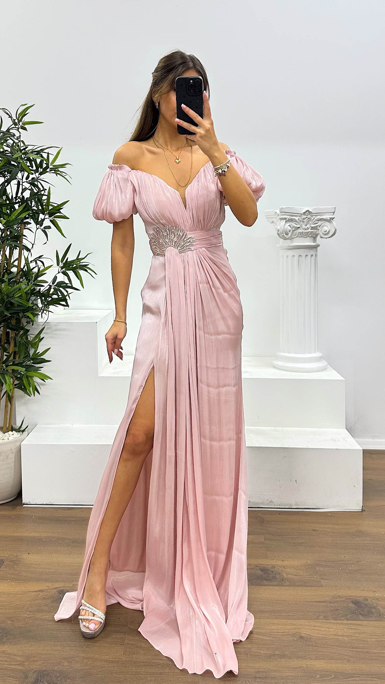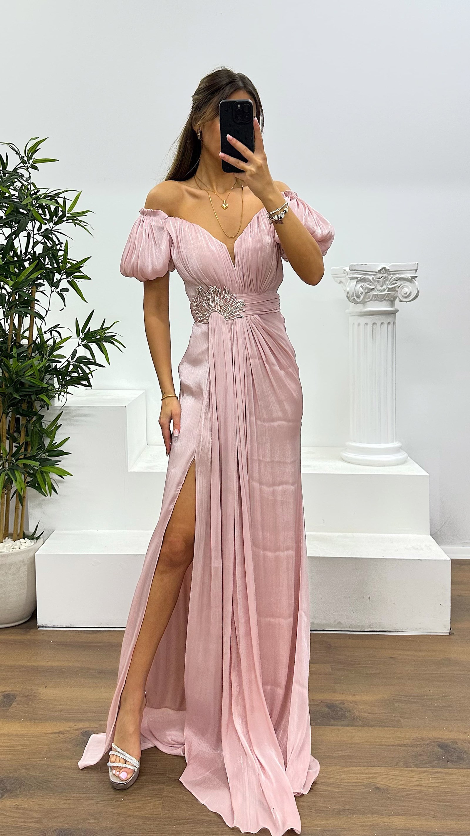Ürün 36-42 bedene kadar uyumlu, göğüs pedli, astarlı, arka kapama fermuar, yırtmaçlı, taş detay abiye olarak tasarlanmıştır.