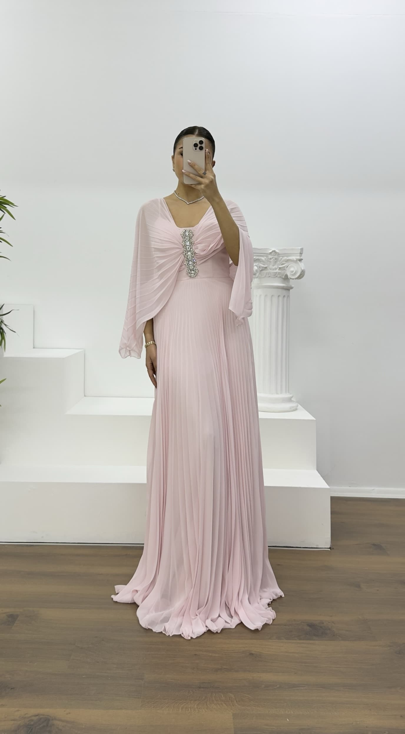 Ürün 36-42 bedene kadar uyumludur. göğüs pedli, astarlı, arka kapama fermuar, broş detaylı abiye olarak tasarlanmıştır.