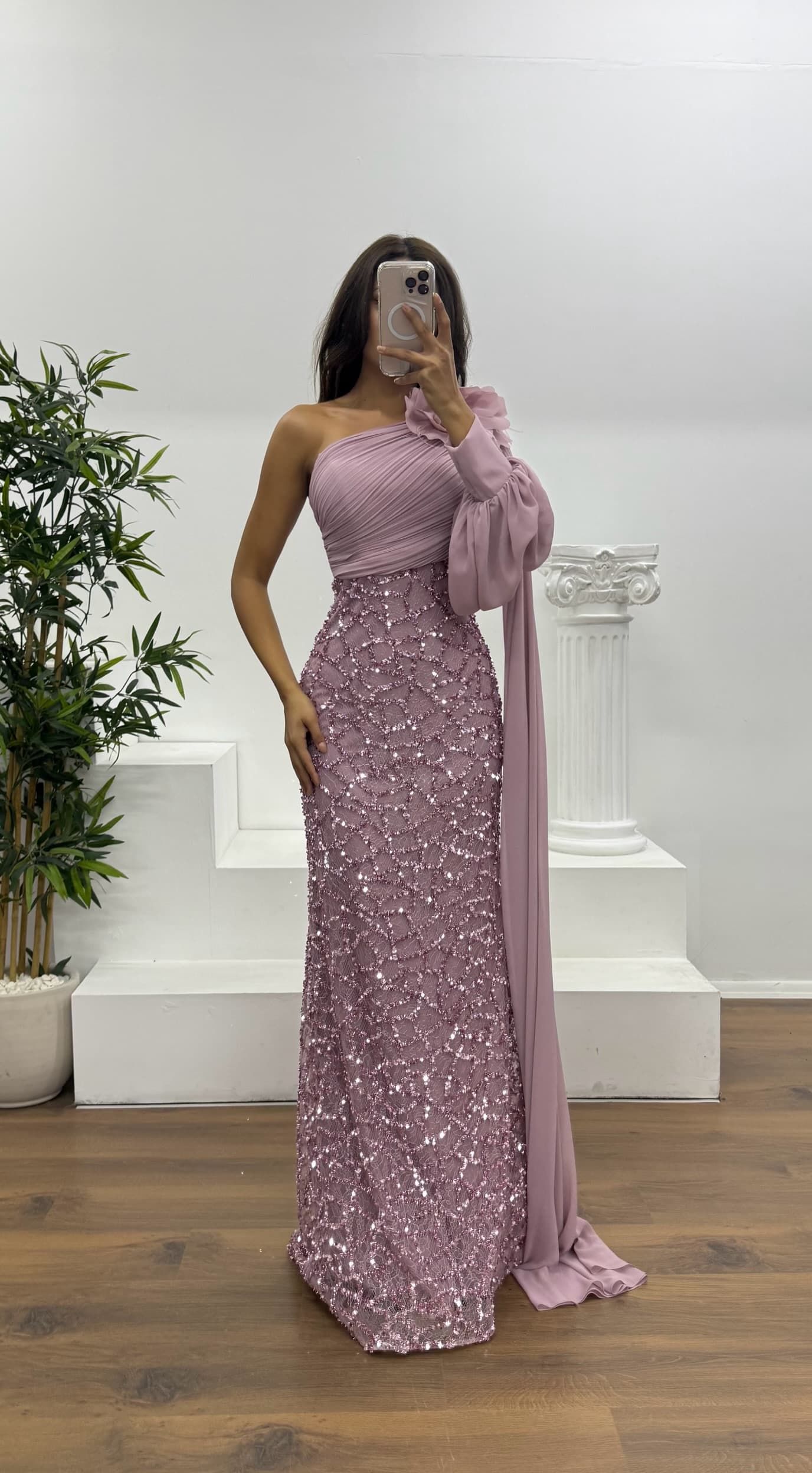 Tek kol işleme detay abiye elbise