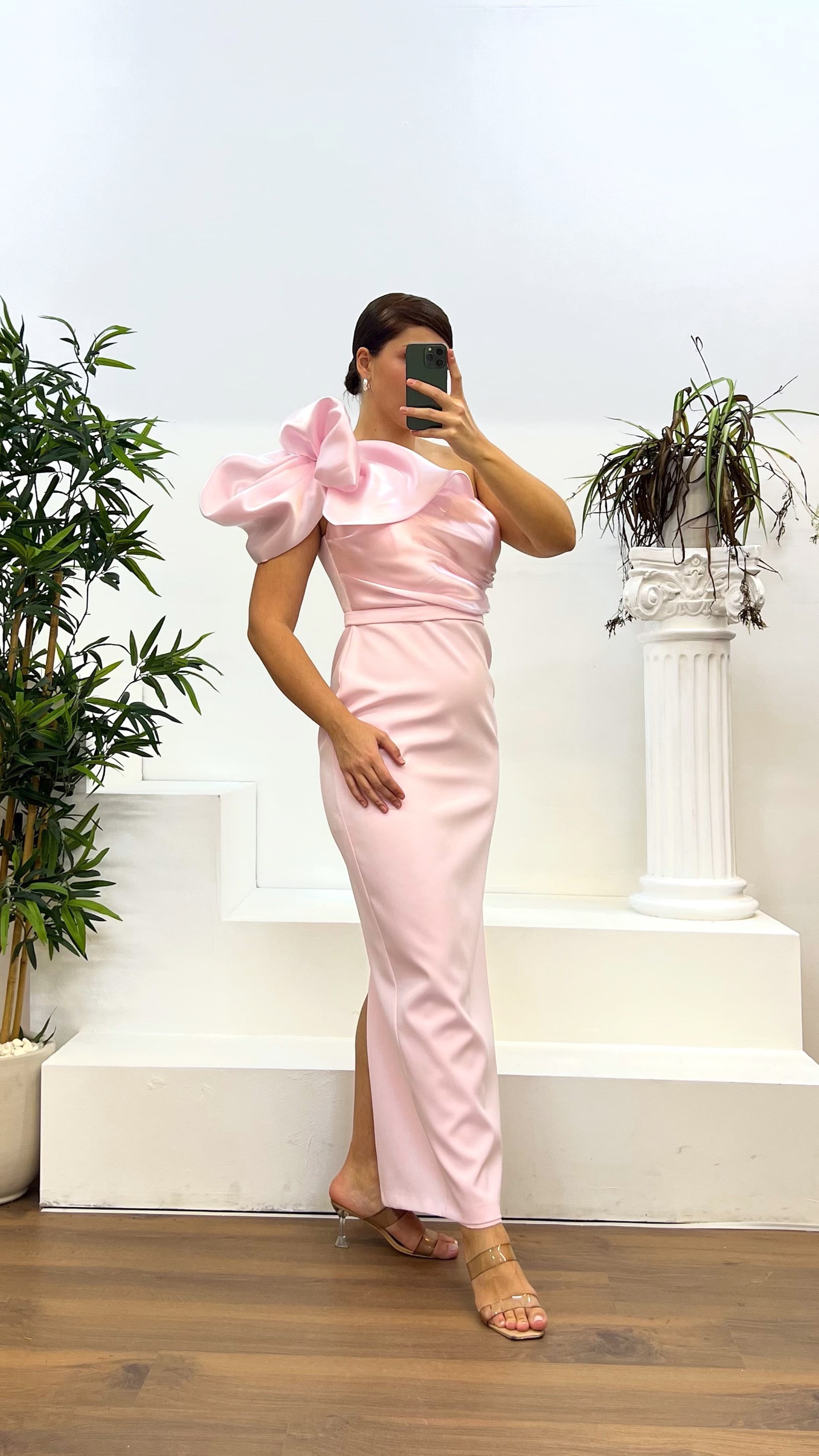 • Pudra Tek Omuz Büyük Beden Abiye Elbise