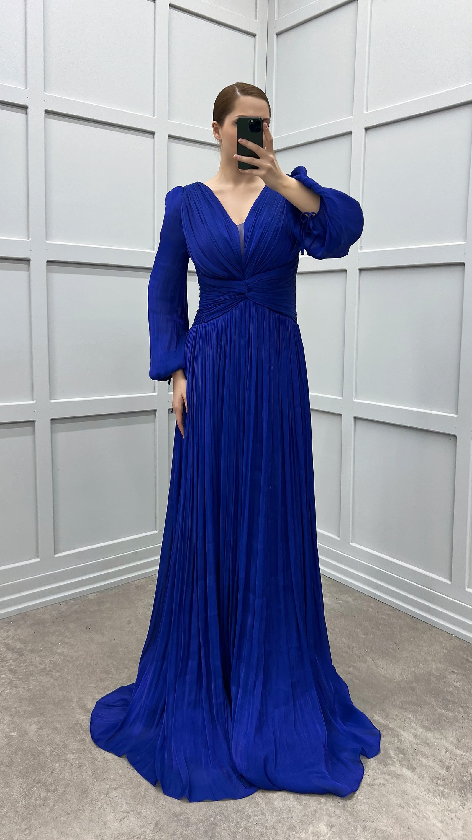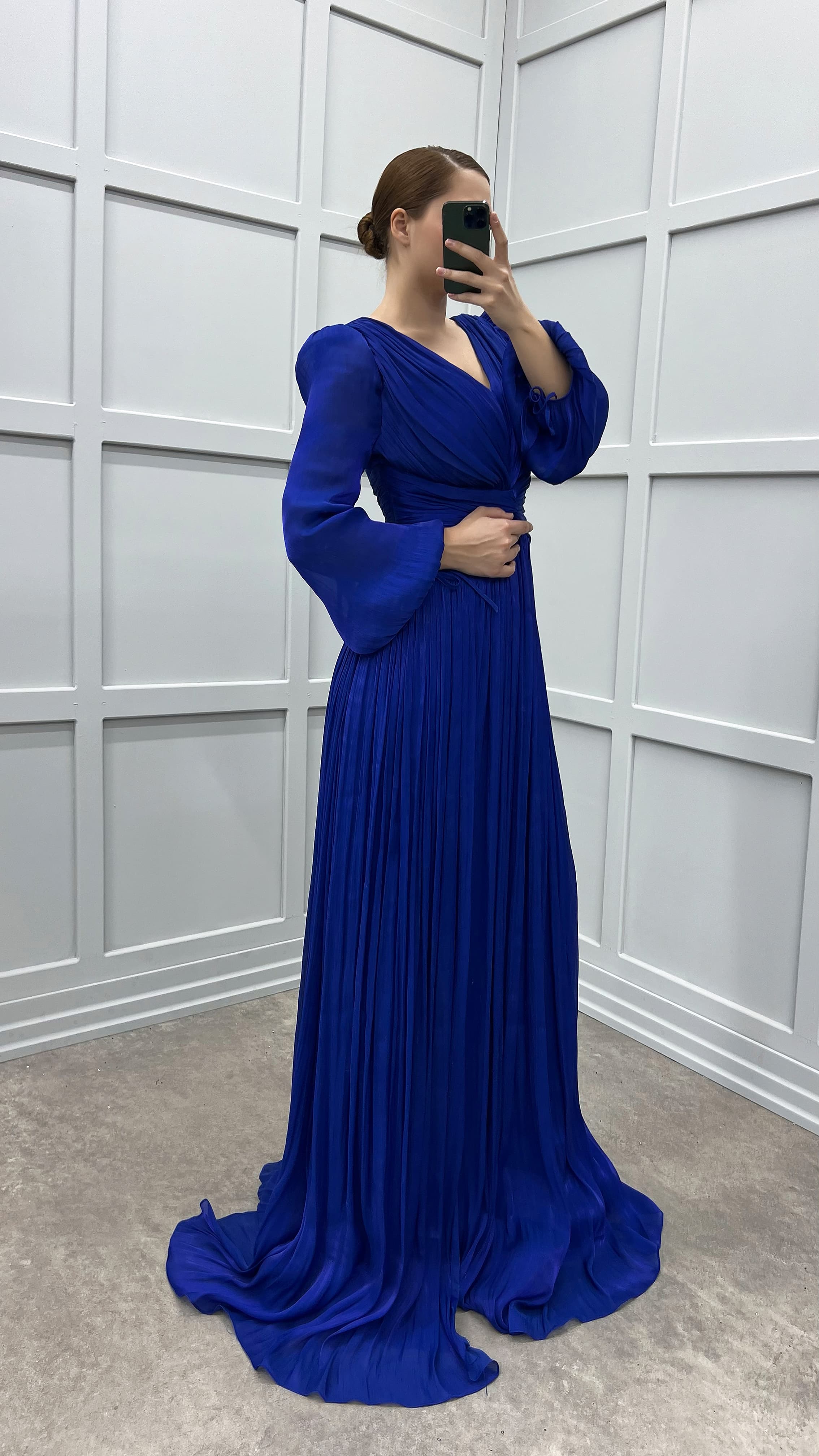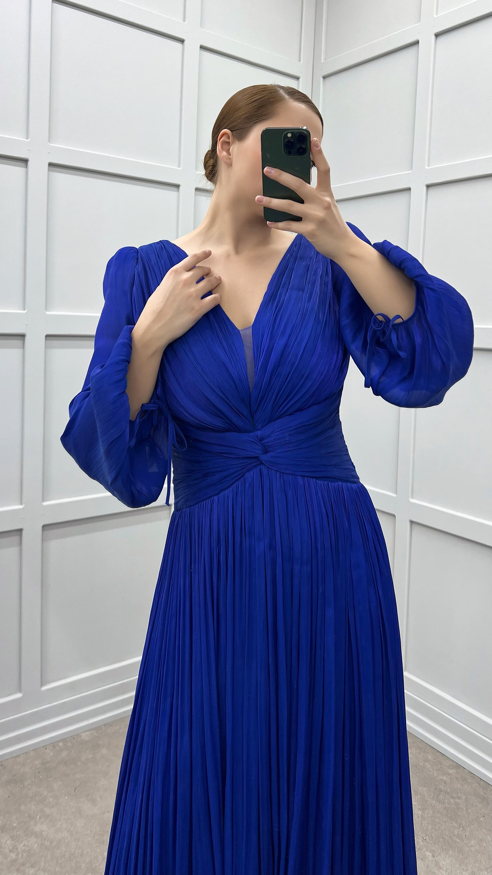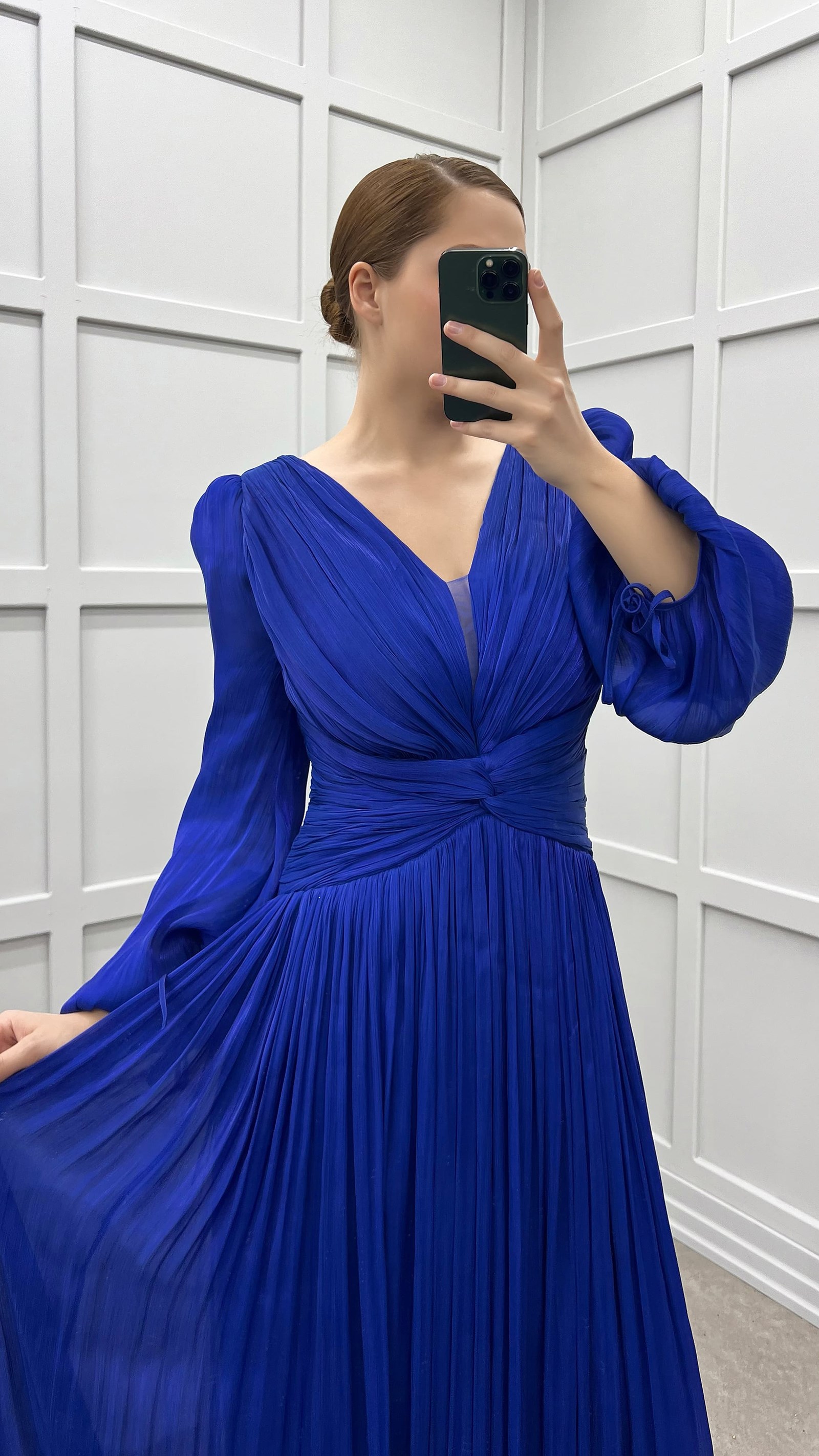 • Saks Balon Kol Drapeli Tasarım Büyük Beden Elbise