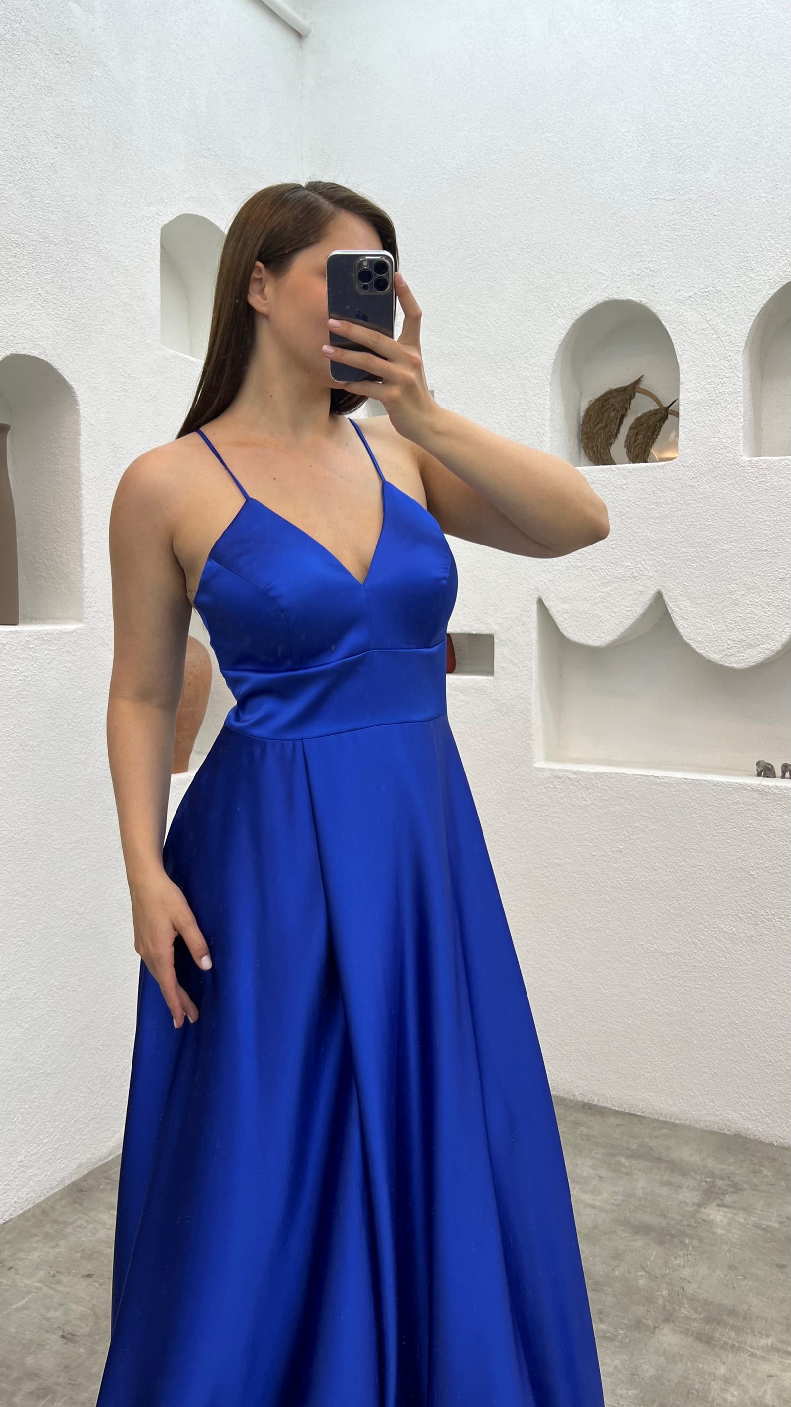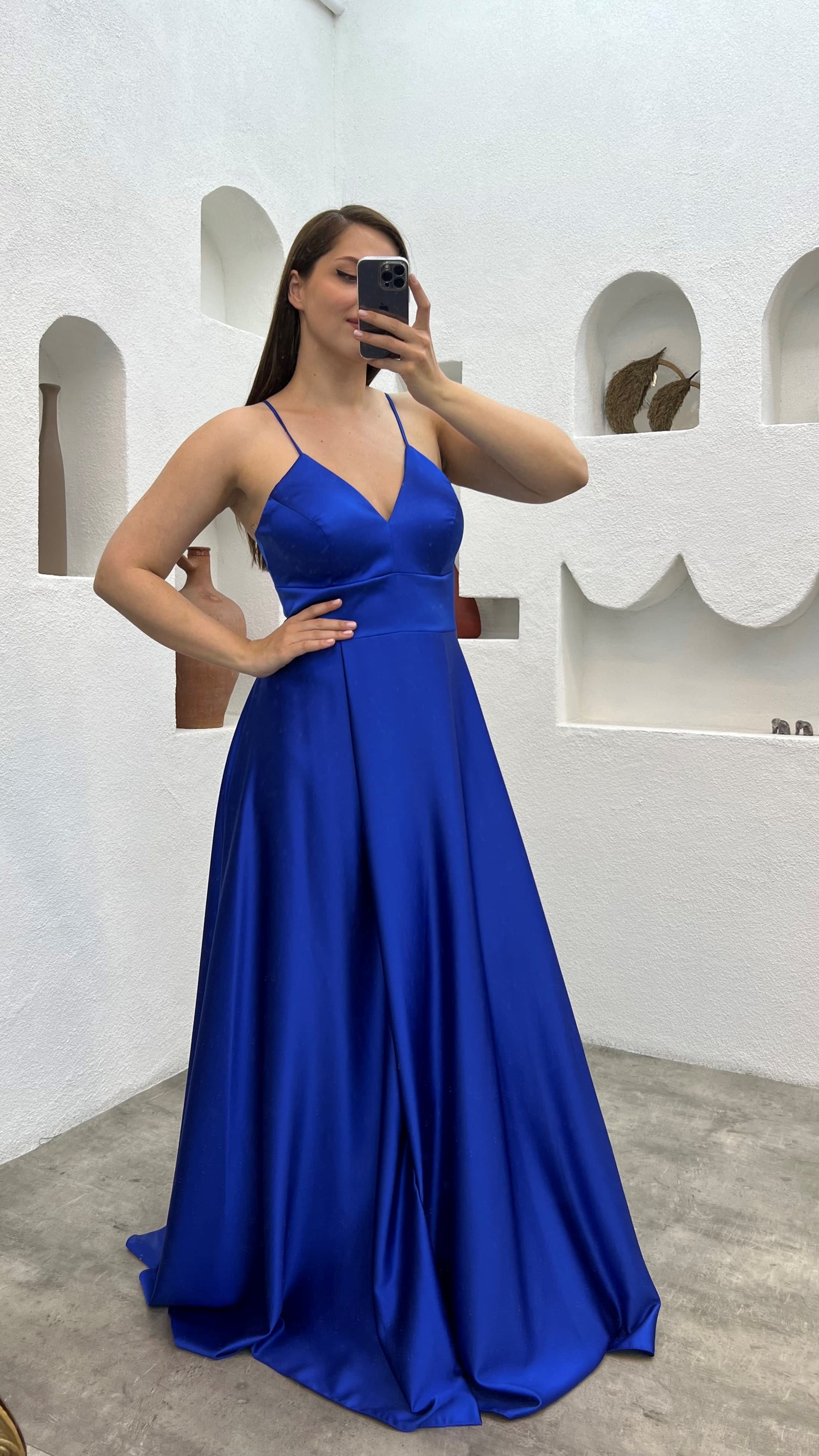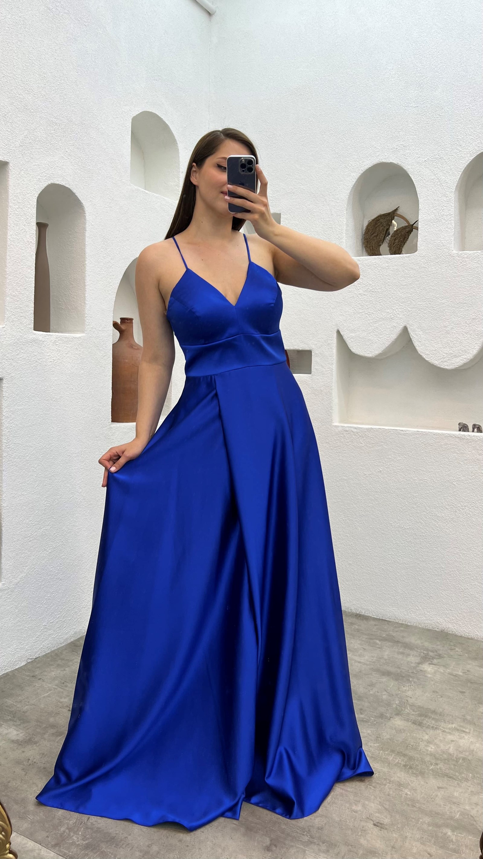 Saks İp Askılı Saten Büyük Beden Abiye Elbise