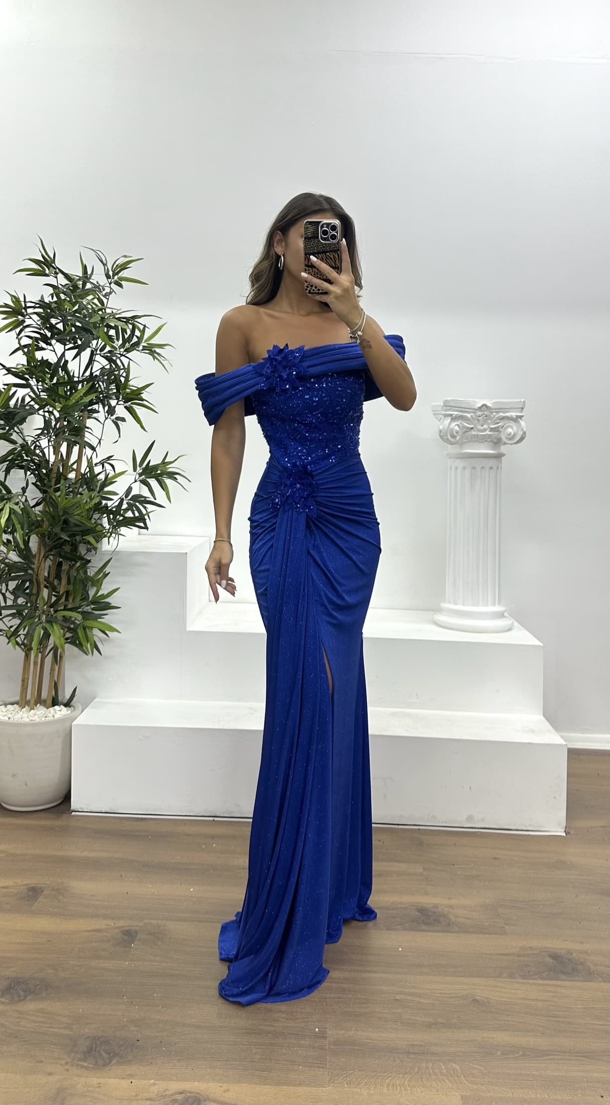 Ürün 36-42 bedene kadar uyumlu, göğüs pedli, astarlı, arka kapama fermuar, yırtmaçlı, işlemeli abiye olarak tasarlanmıştır.