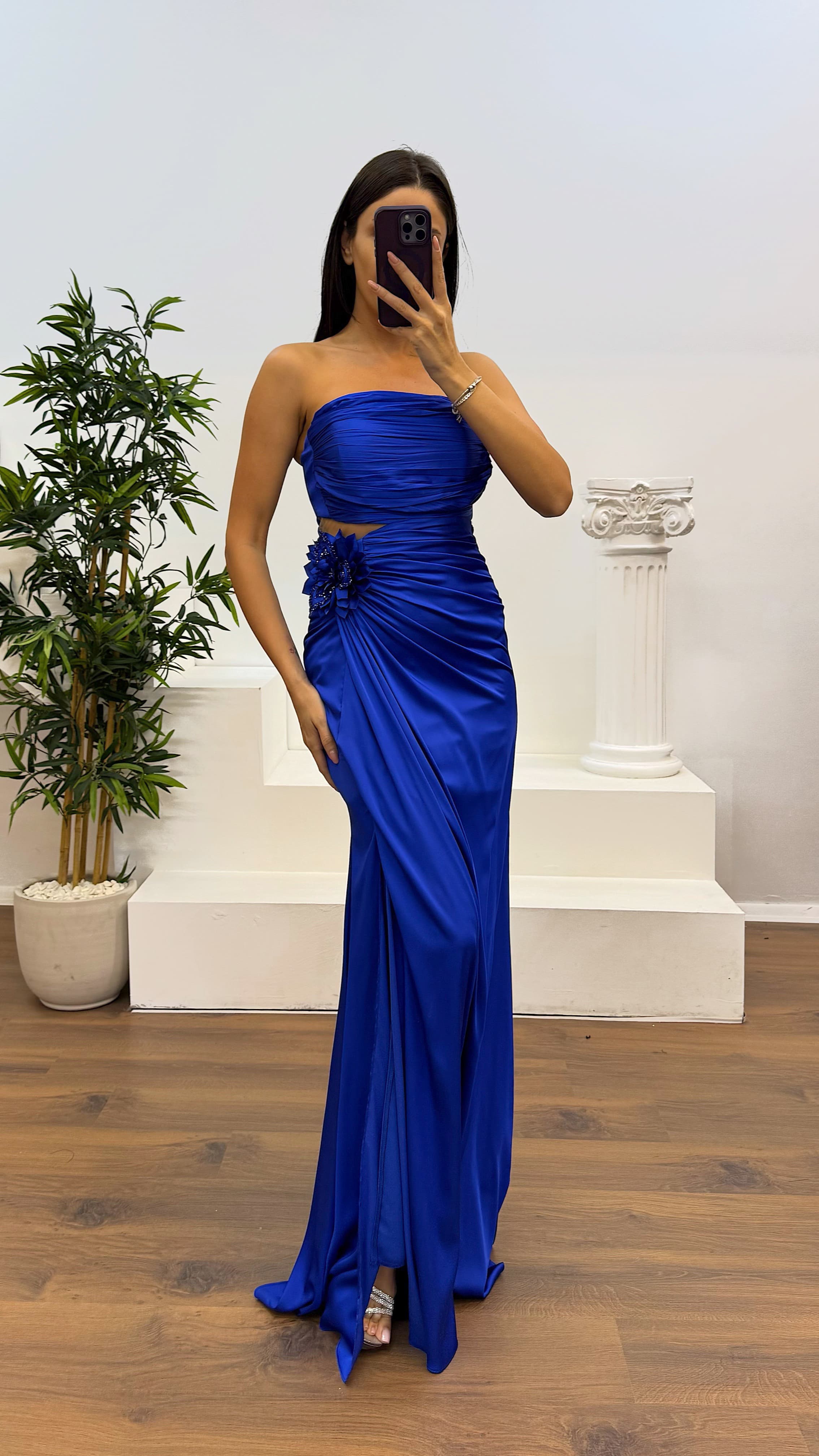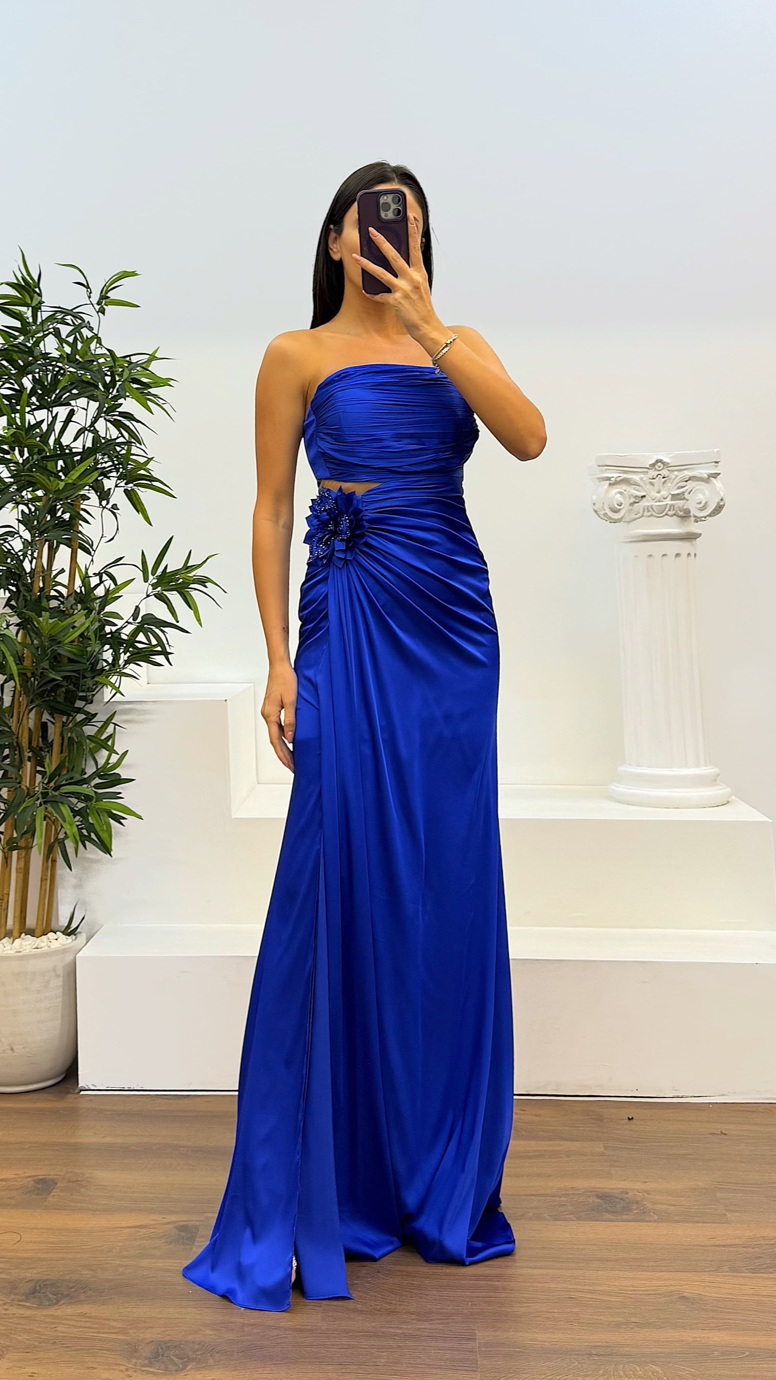 Ürün 36-42 bedene kadar uyumlu, göğüs pedli, astarlı, arka kapama fermuar, yırtmaçlı, çiçek detay abiye olarak tasarlanmıştır.
