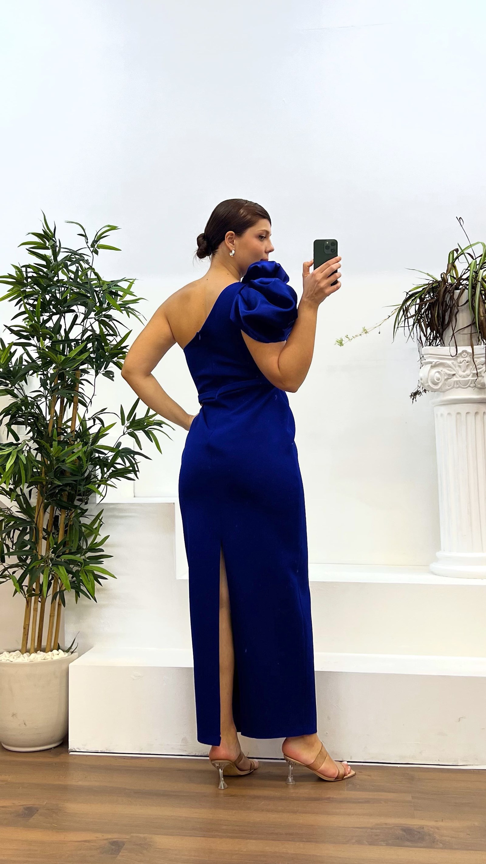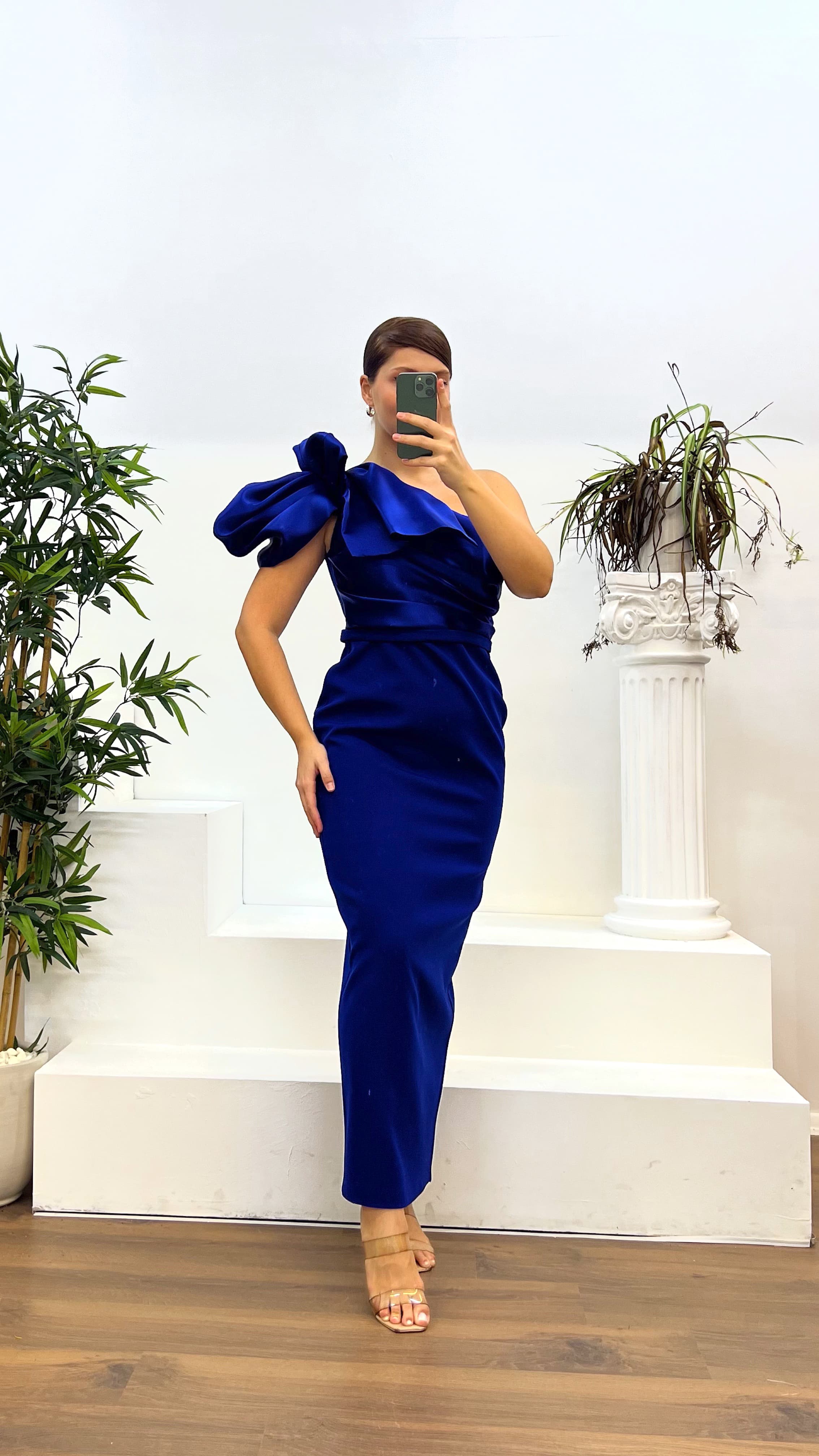 • Lacivert Tek Omuz Büyük Beden Abiye Elbise