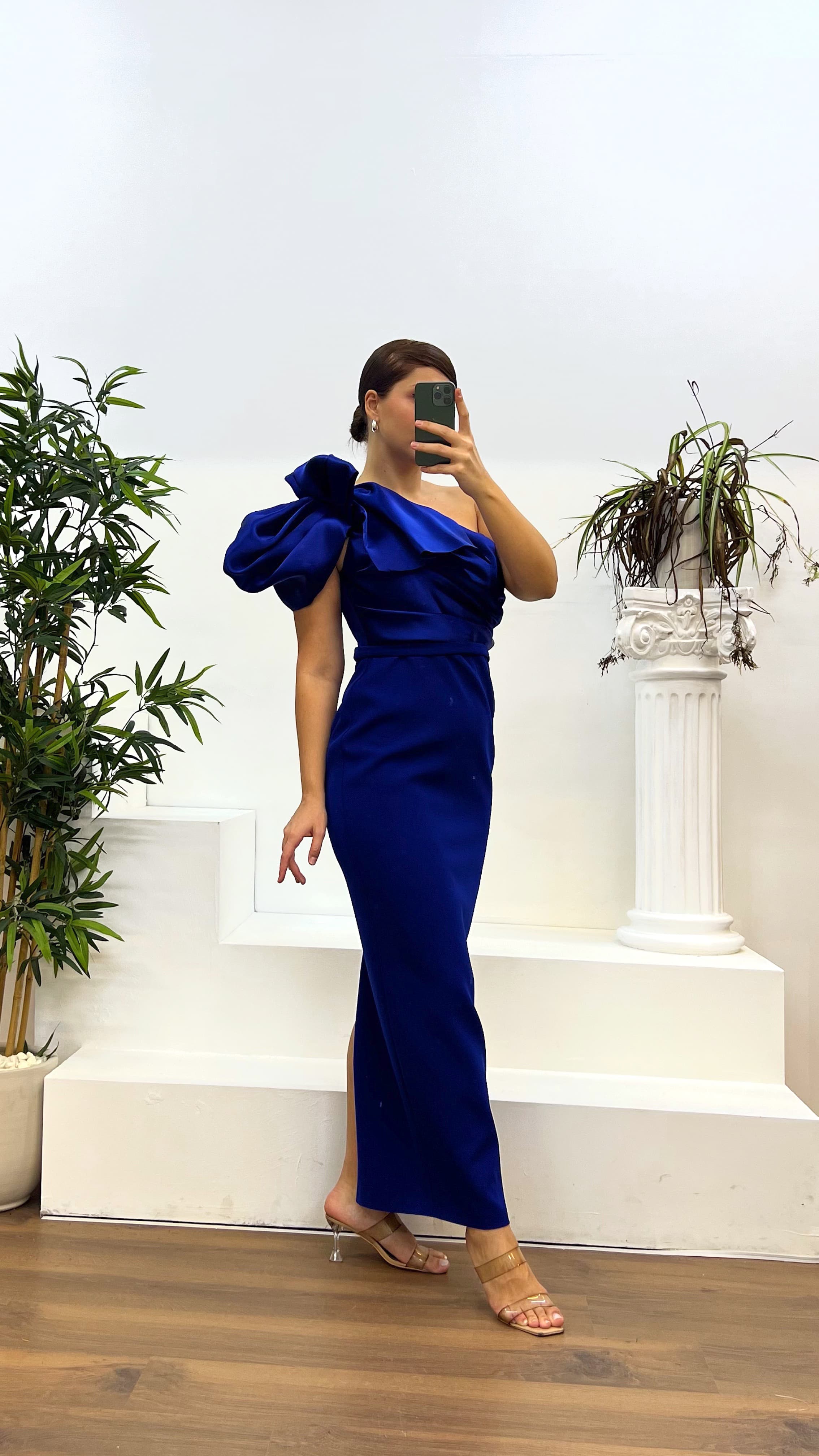 • Saks Tek Omuz Büyük Beden Abiye Elbise