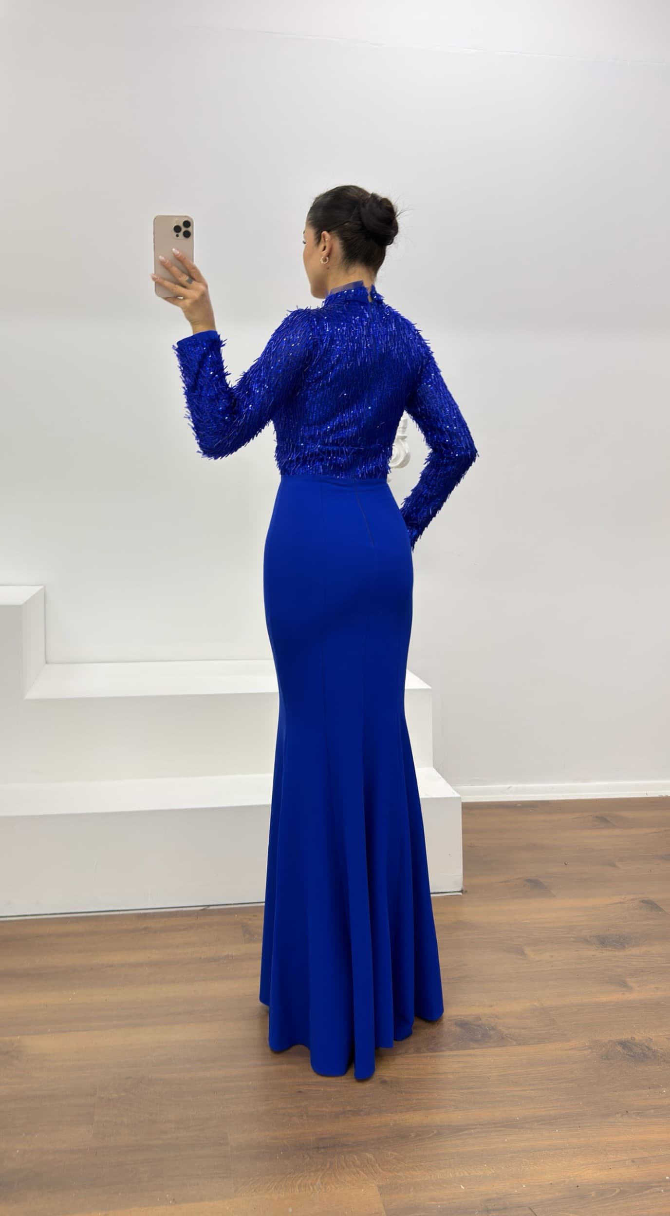 Ürün 36-44 bedene kadar uyumludur. göğüs pedli, astarlı, arka kapama fermuar, uzun kollu abiye olarak tasarlanmıştır.