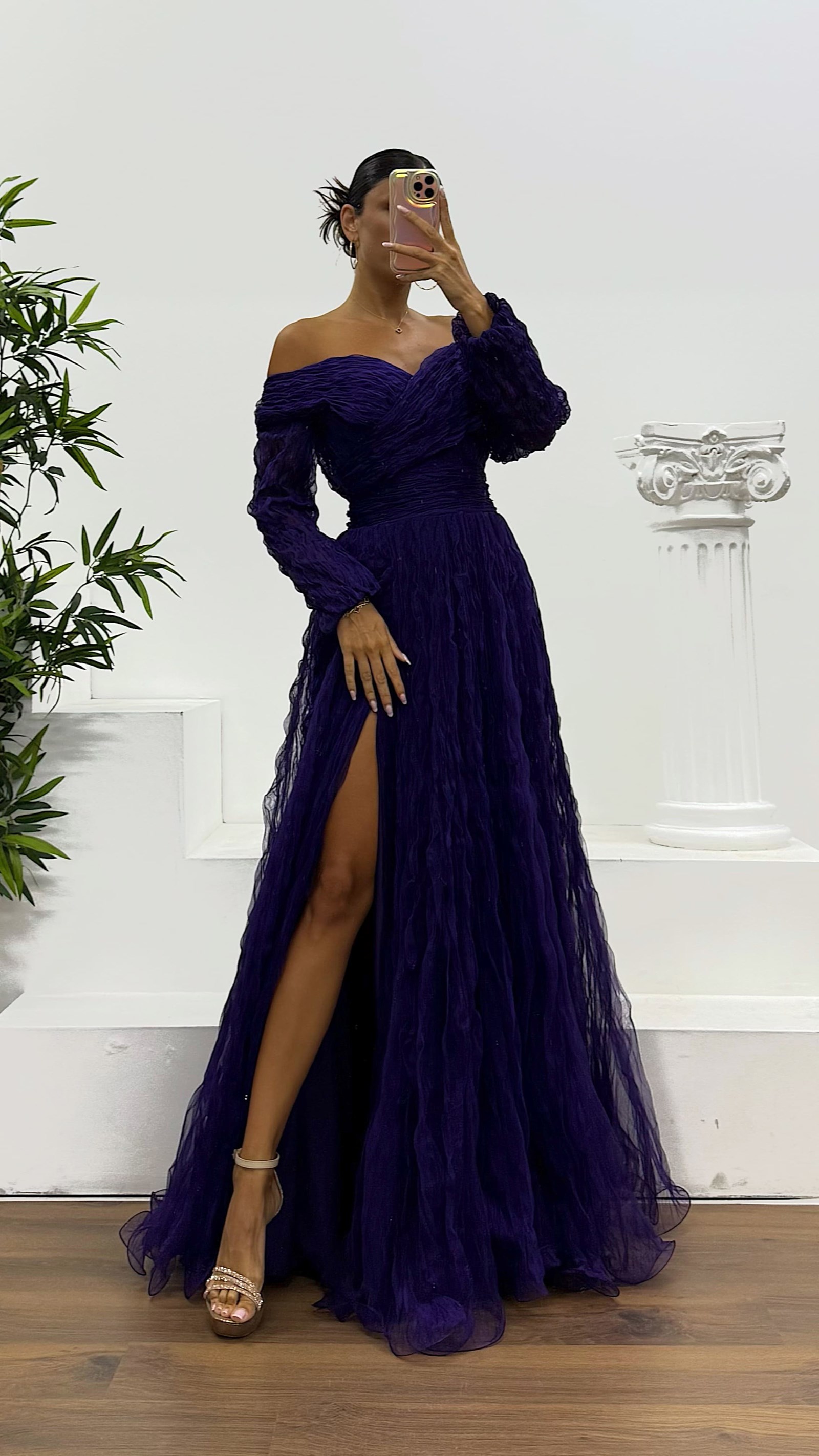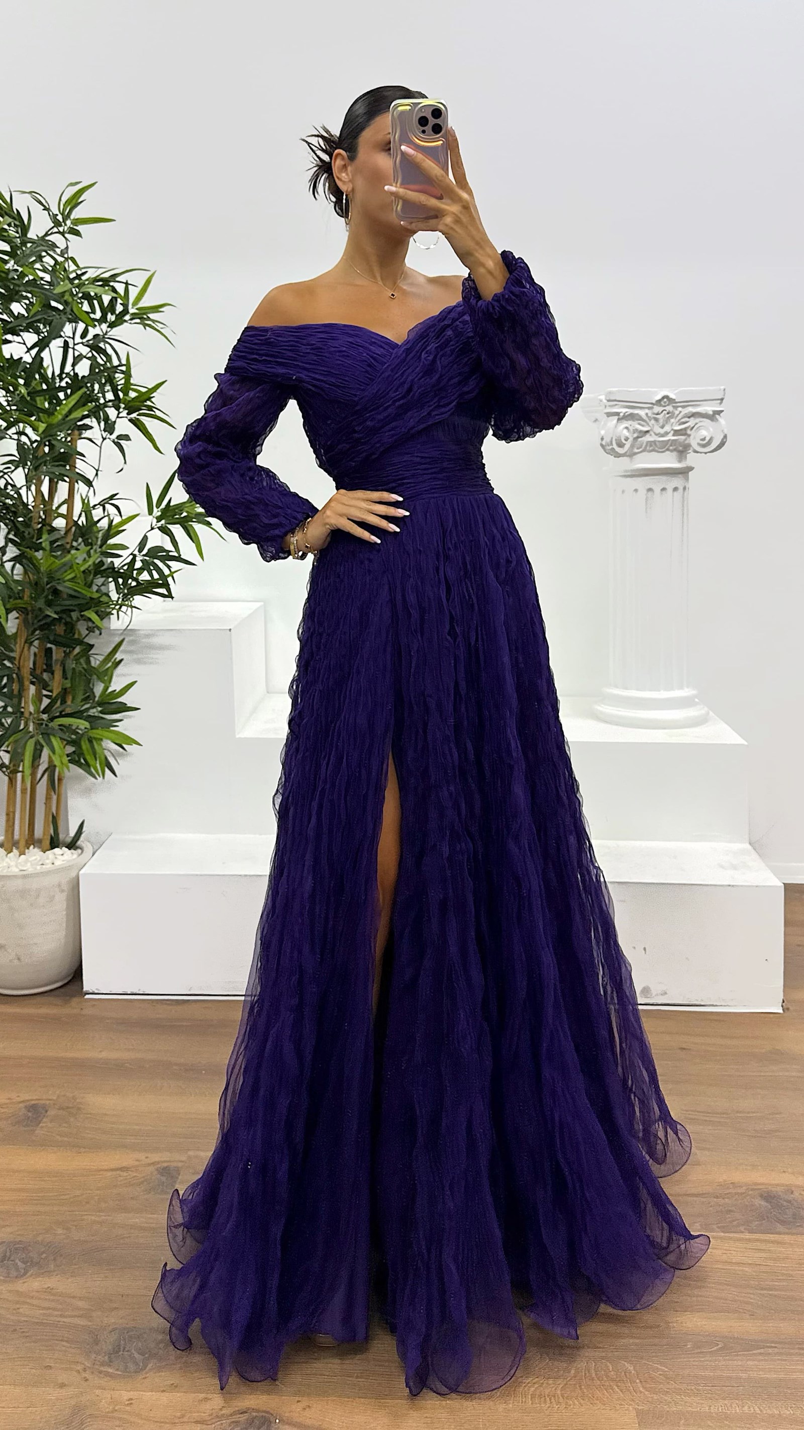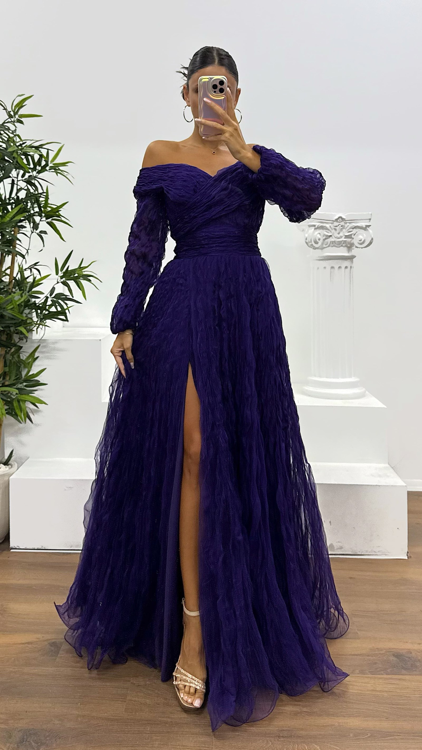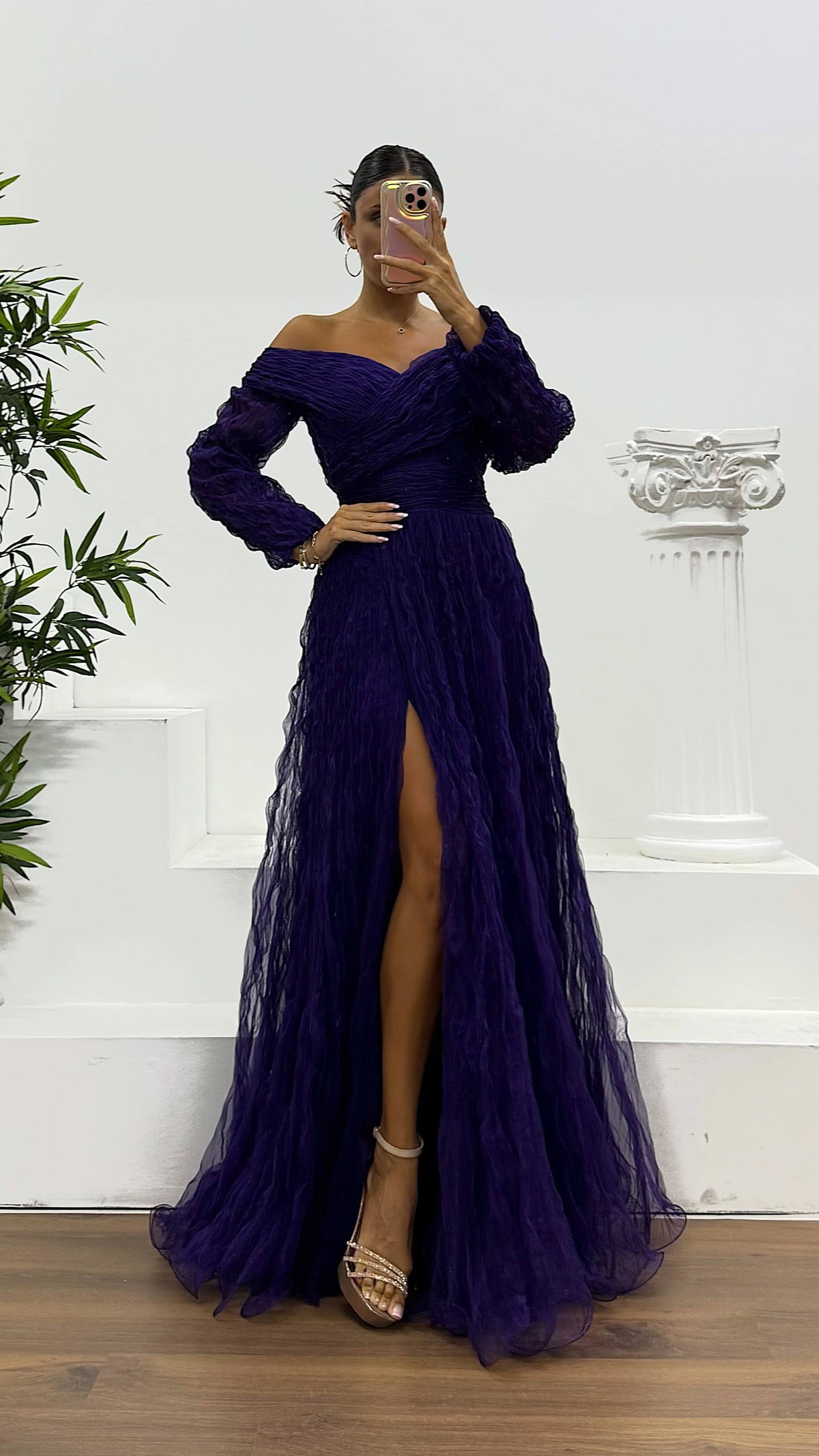 Ürün 36-44 bedene kadar uyumlu, göğüs pedli, astarlı, arka kapama fermuar, yırtmaçlı abiye olarak tasarlanmıştır.