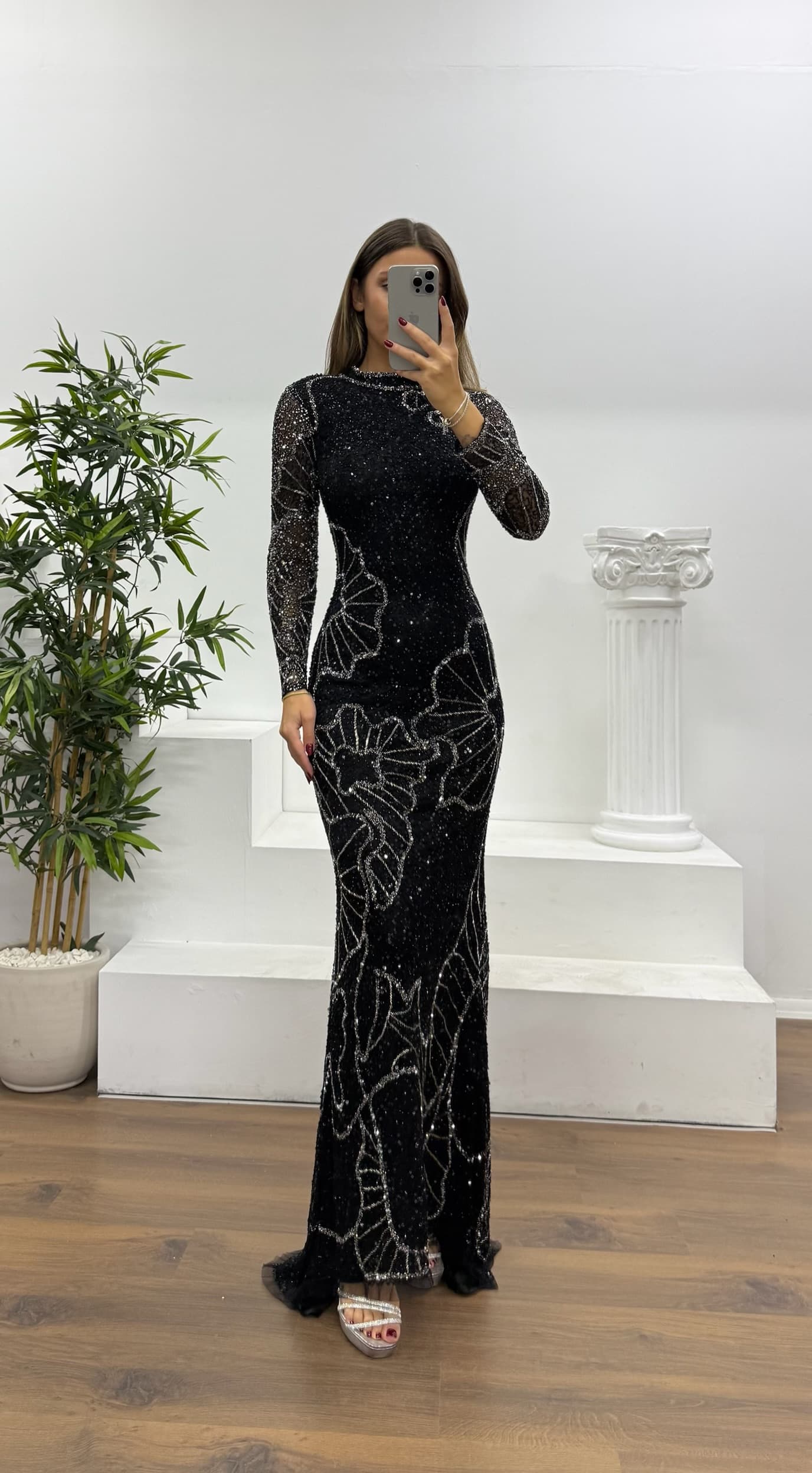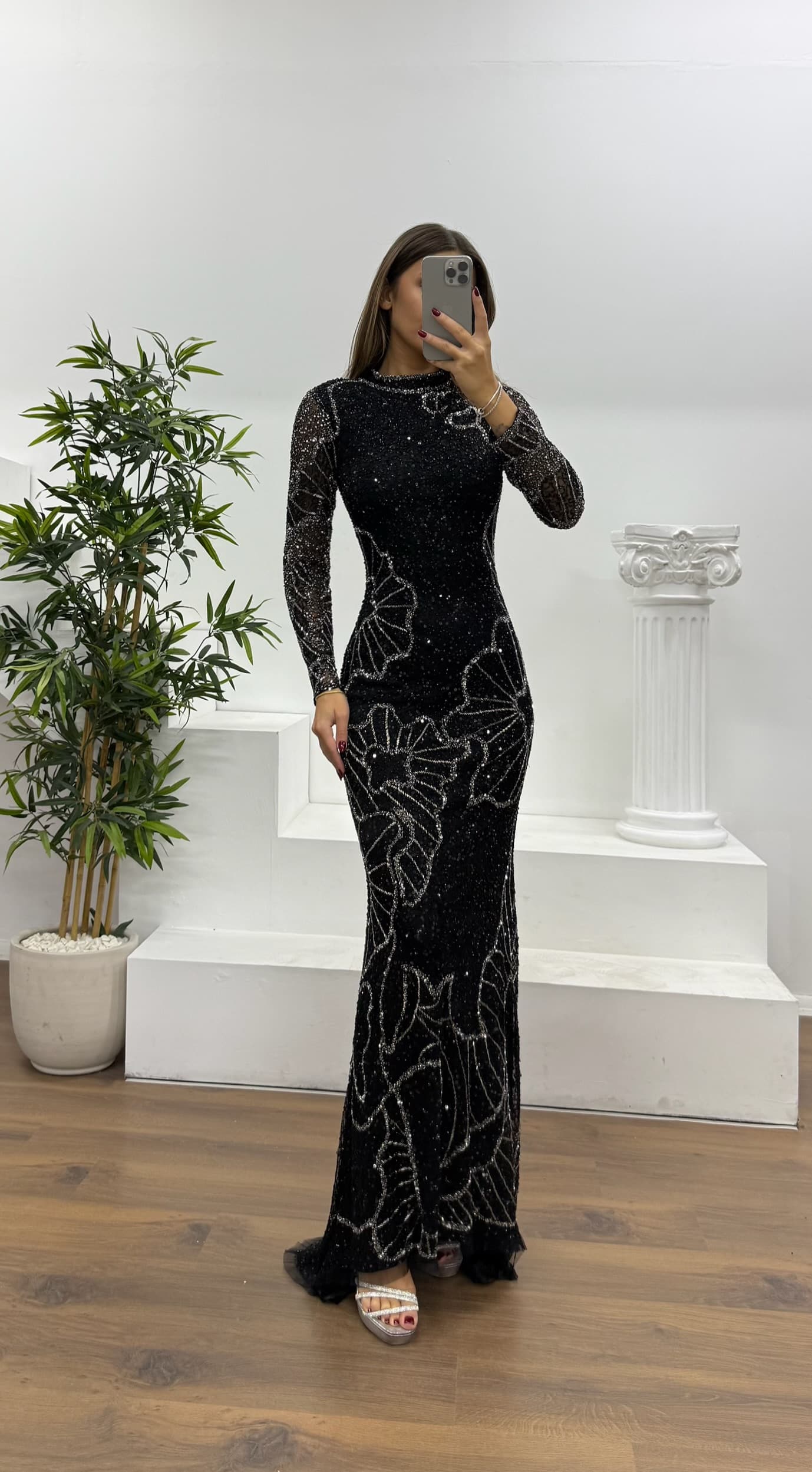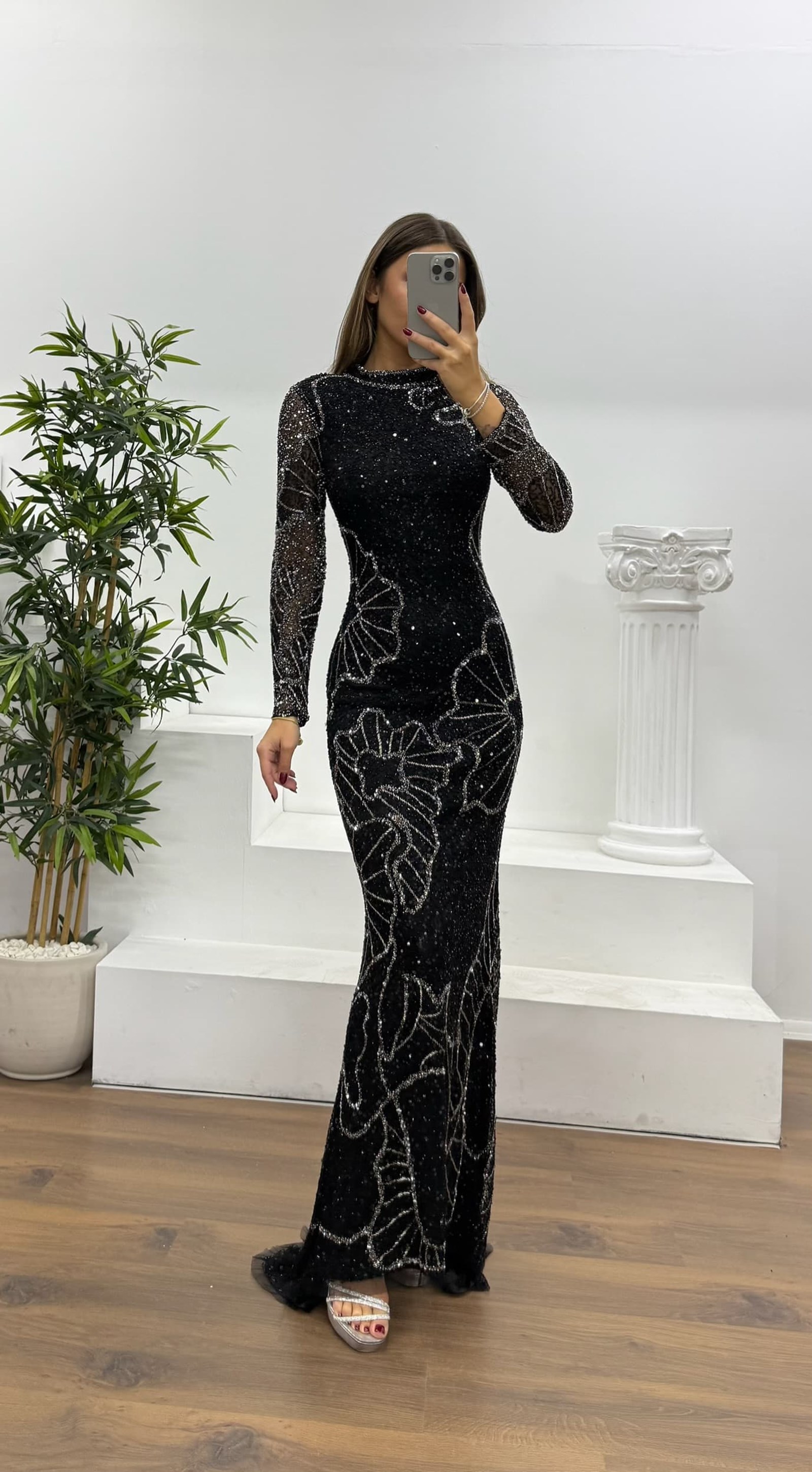 Uzun kollu özel el işlemesi abiye elbise