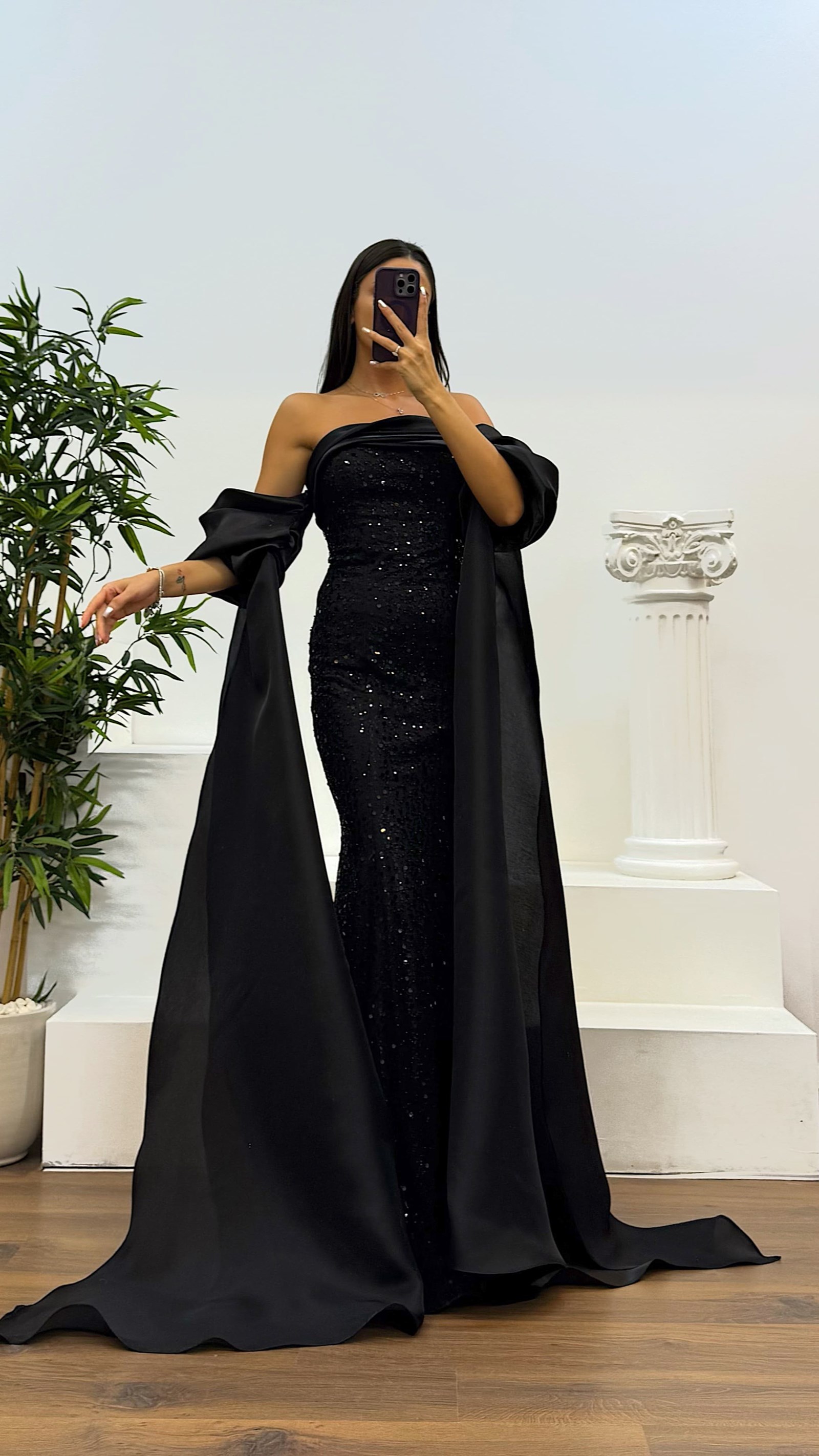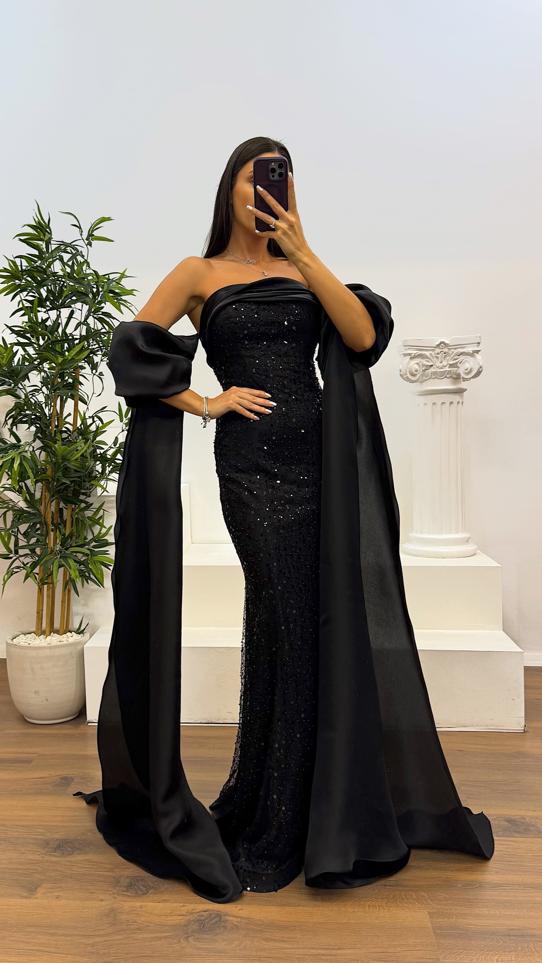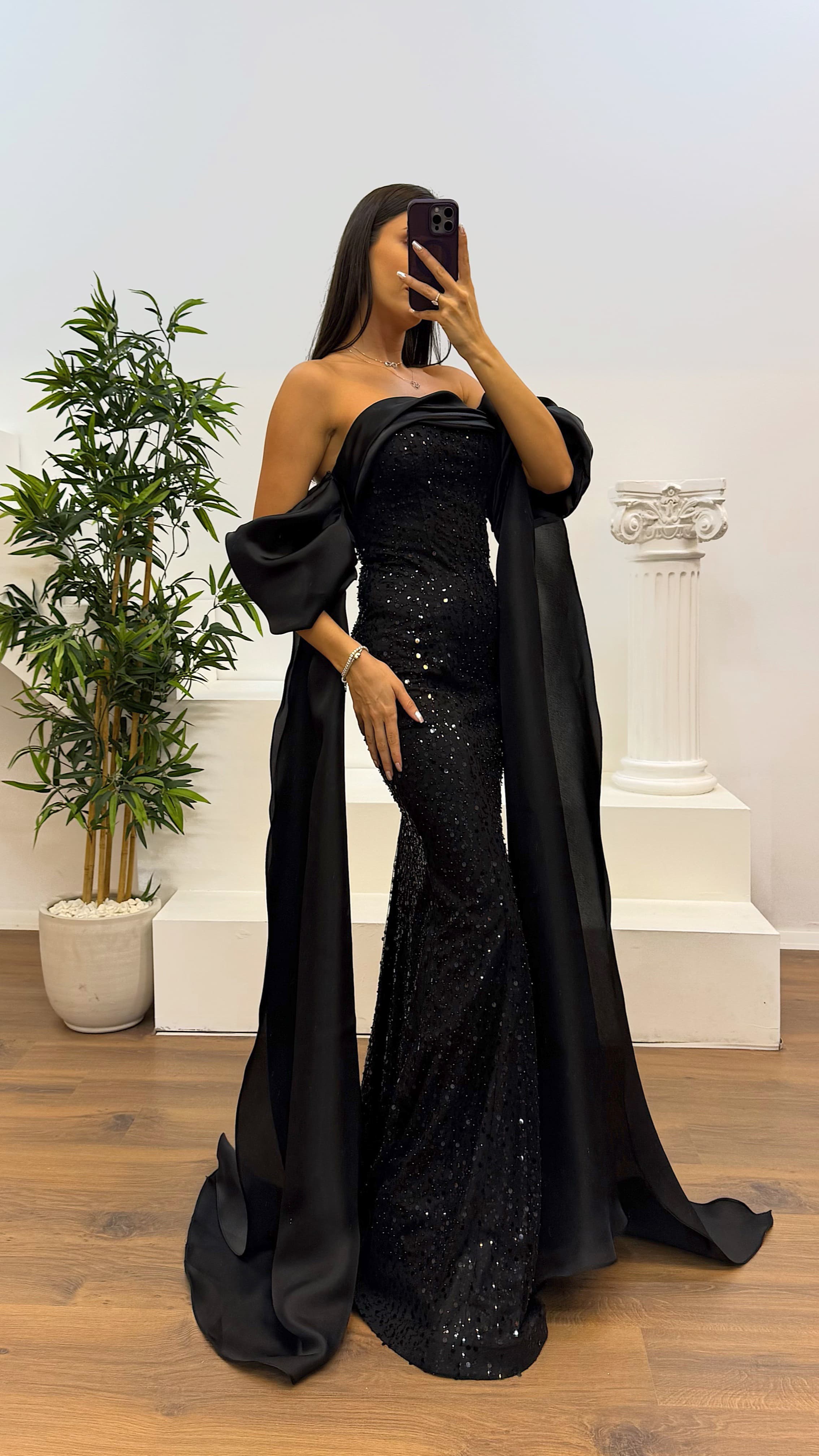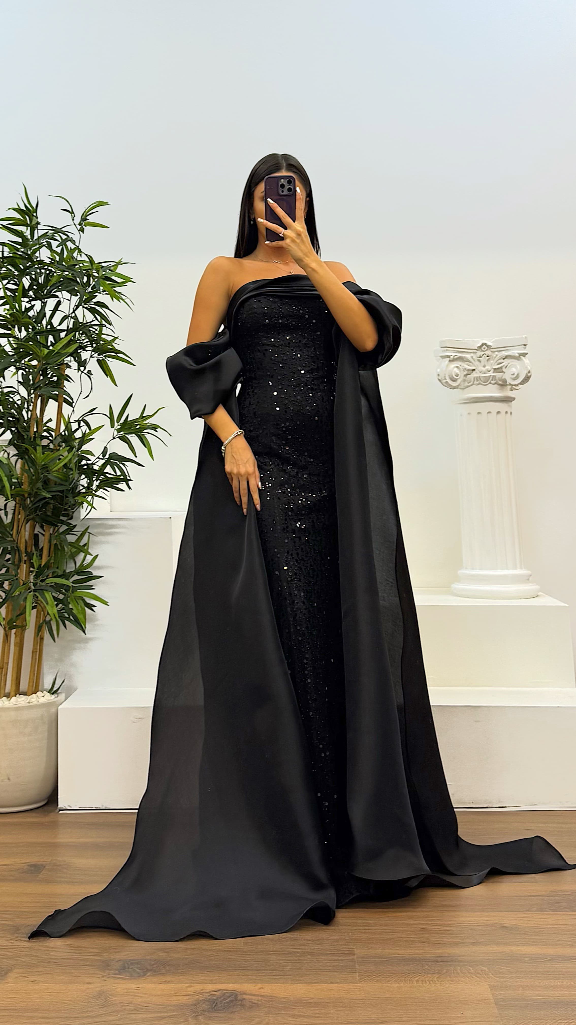 Balon kol işlemeli abiye elbise