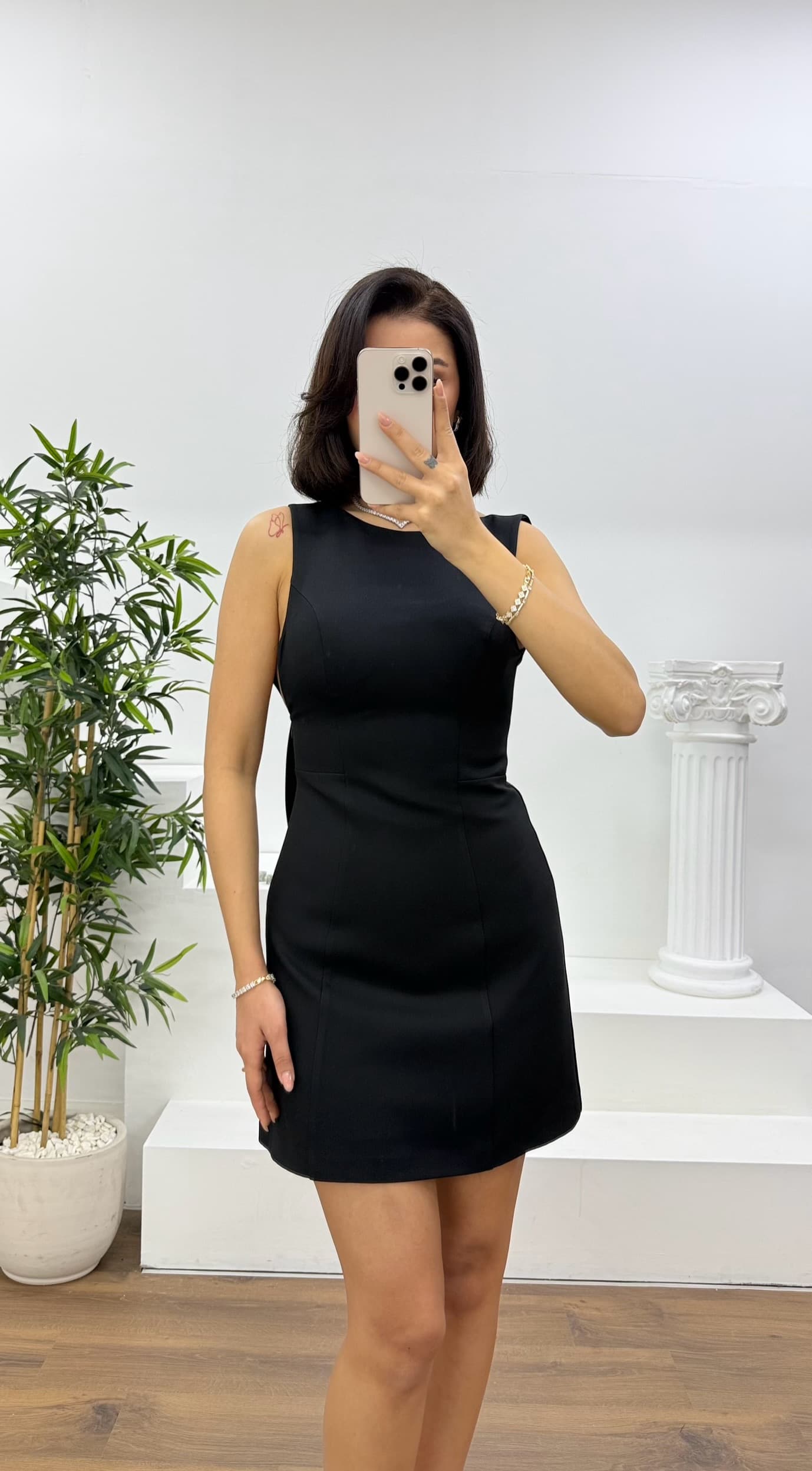 • Siyah Bisiklet Yaka Kolsuz Mini Abiye Elbise