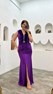 • Mor Göğsü Taş işleme Tüylü Pliseli Büyük Beden Abiye Elbise