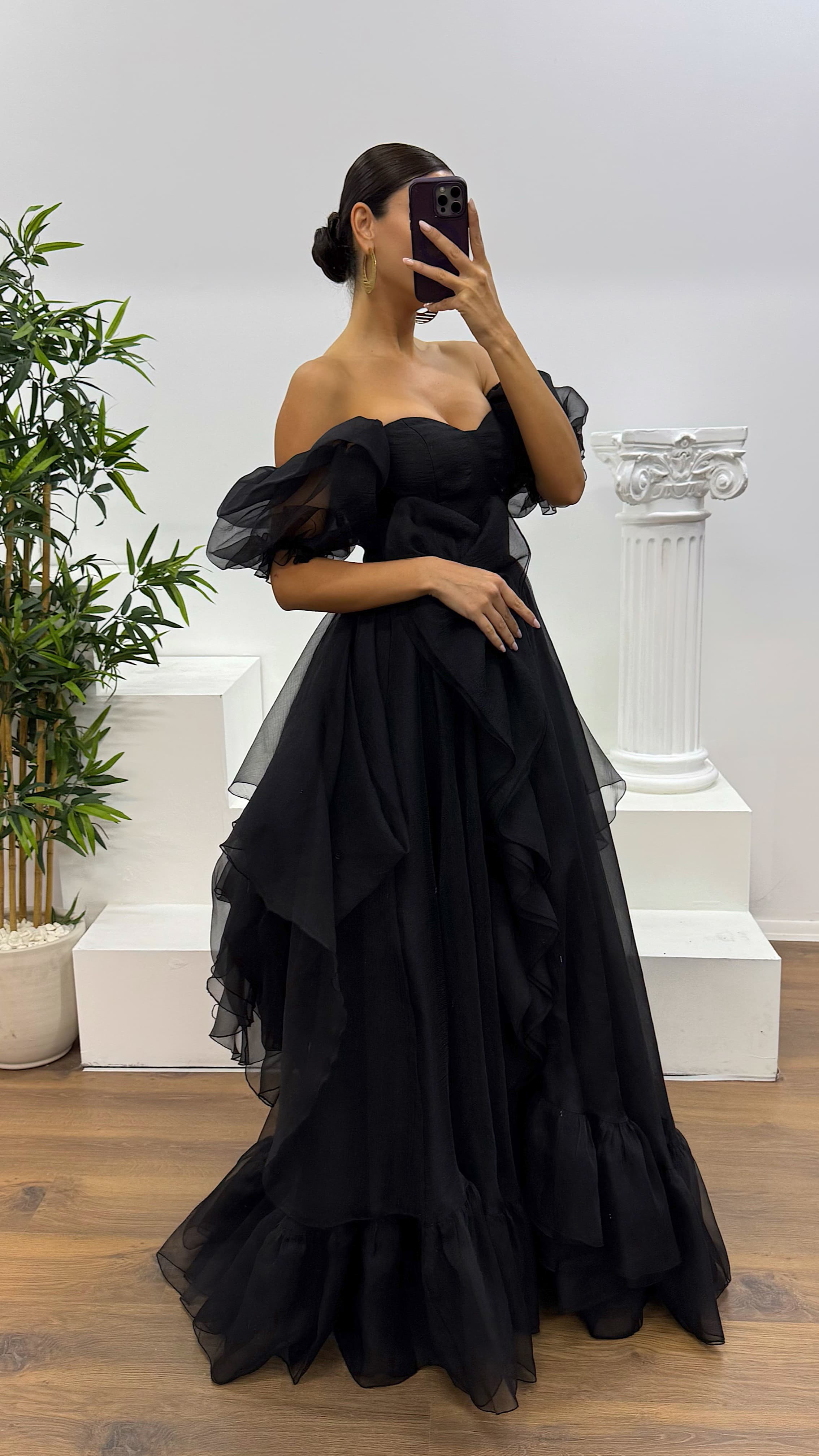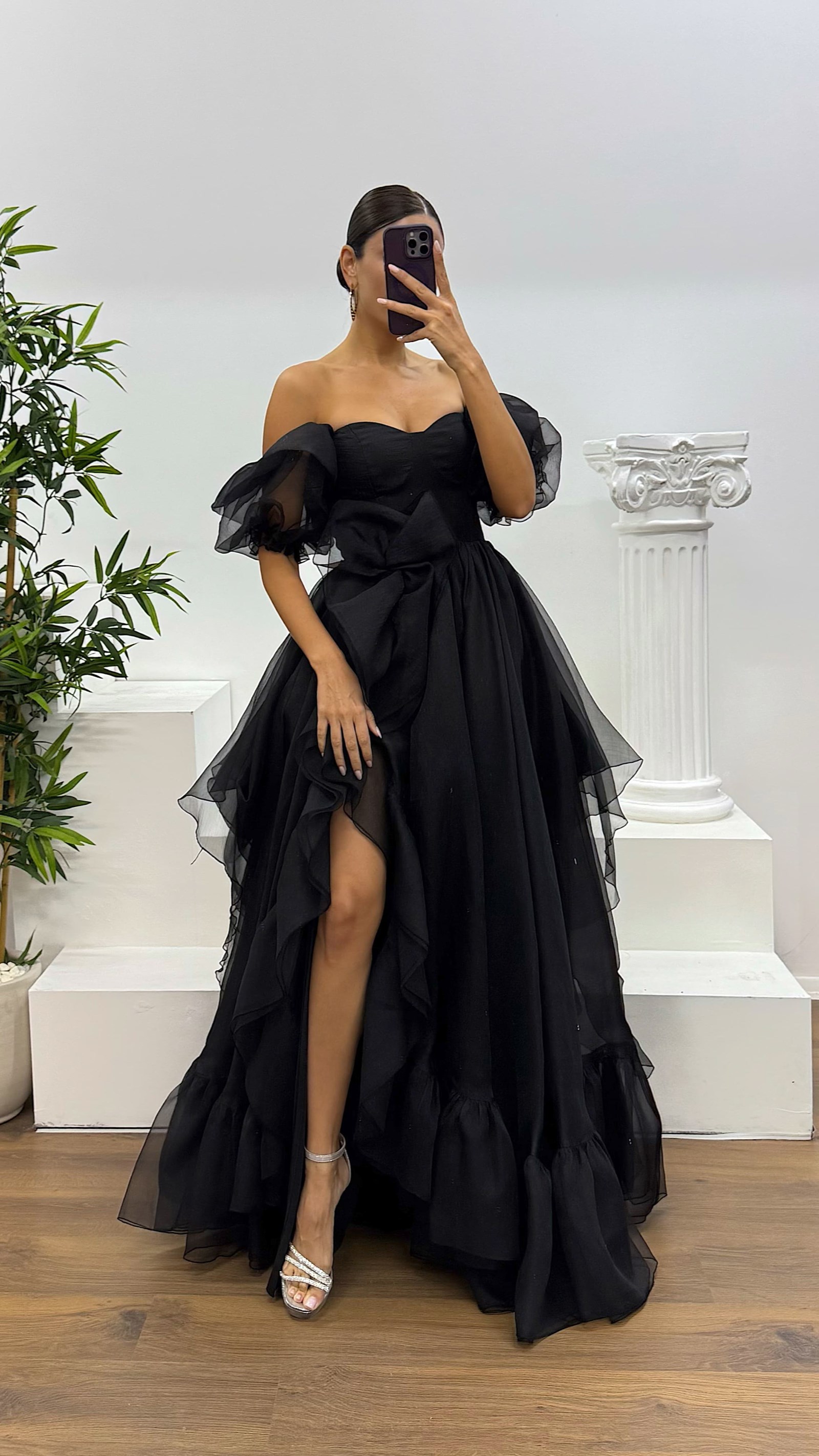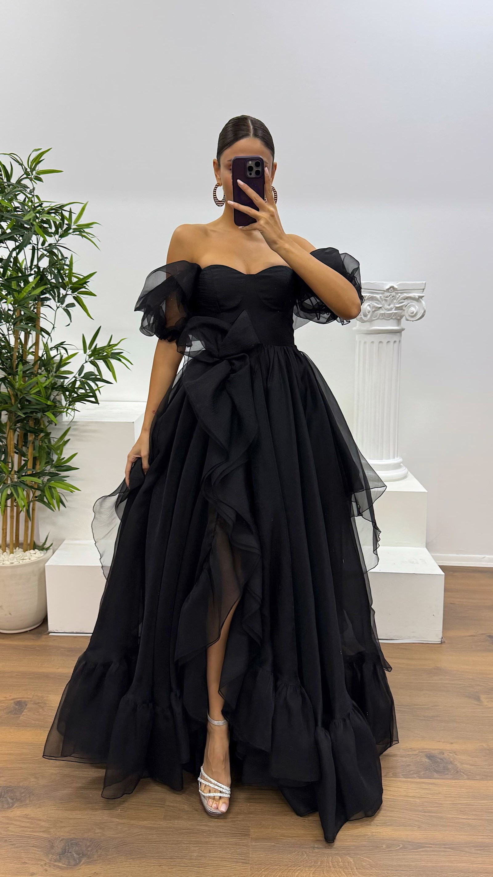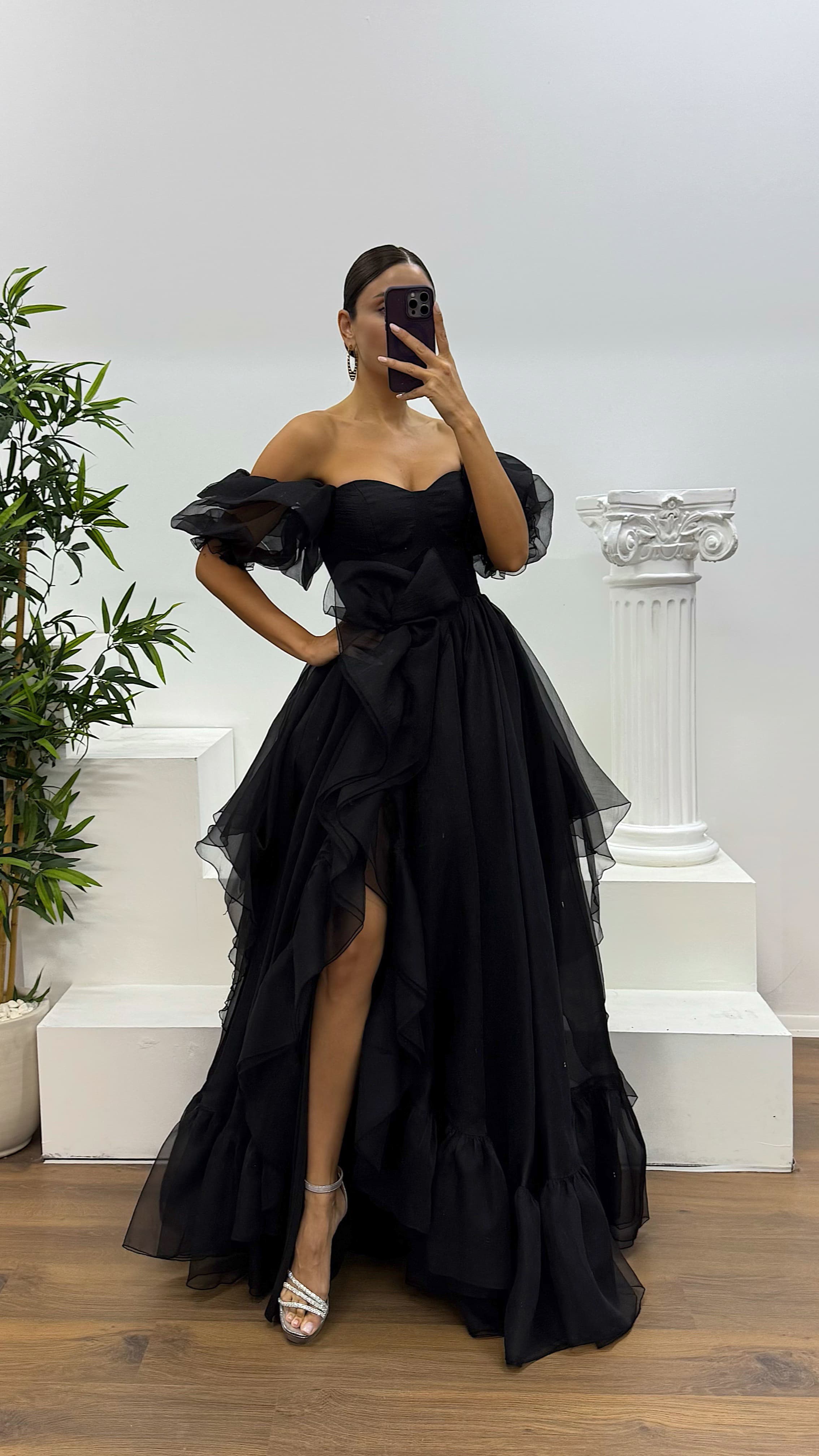 Ürün 36-42 bedene kadar uyumlu, göğüs pedli, astarlı, yırtmaçlı, sırt çapraz ip ve fermuar kapamalı abiye olarak tasarlanmıştır.
