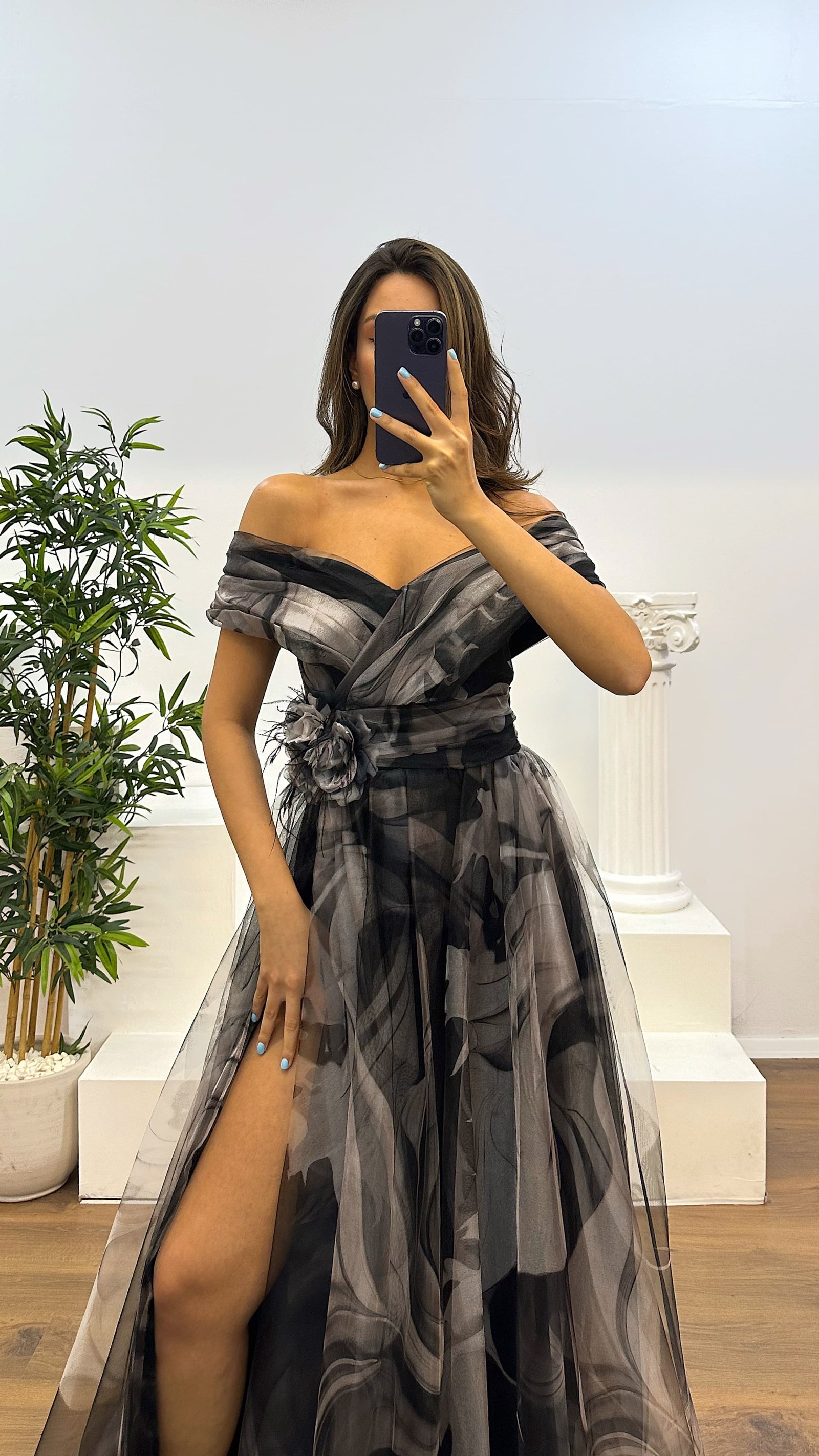 Ürün 36-42 bedene kadar uyumlu, göğüs pedli, astarlı, arka kapama fermuar, yırtmaçlı abiye olarak tasarlanmıştır.