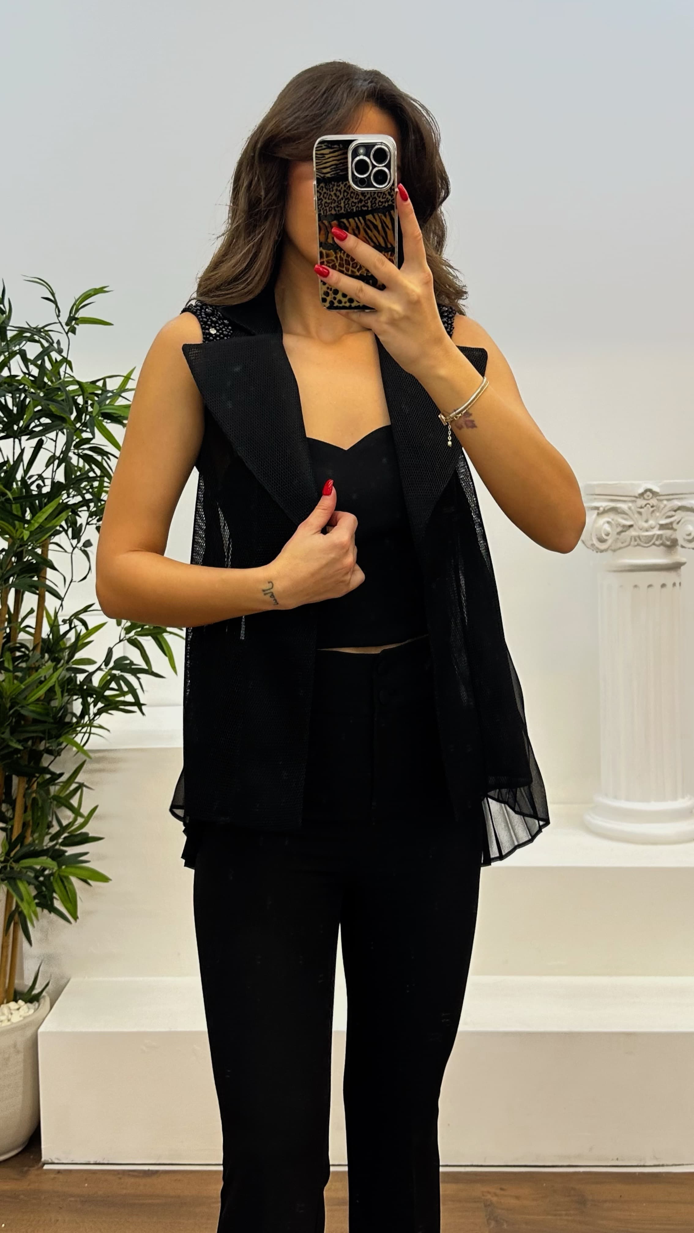 Ürün 36-42 bedene kadar uyumlu, göğüs pedli, astarlı, bustiyerli, düğme ve fermuar kapamalı, düğme kapamalı ve işlemeli tül ceket olarak tasarlanmıştır.