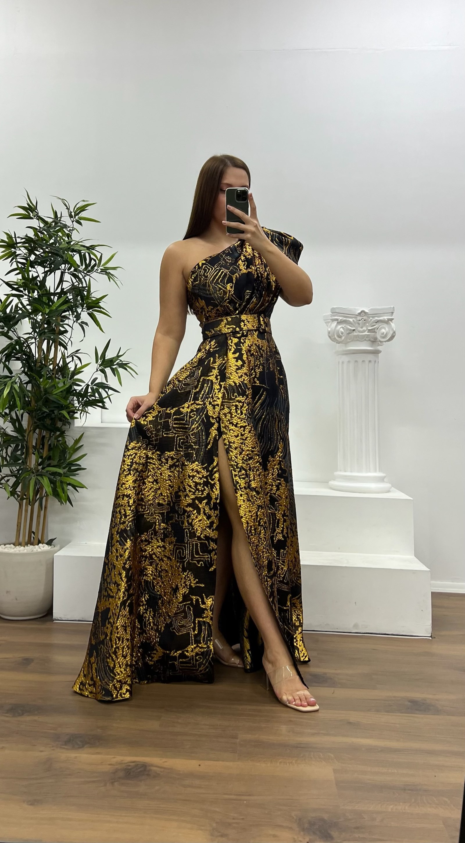 Tek omuz kemerli abiye elbise