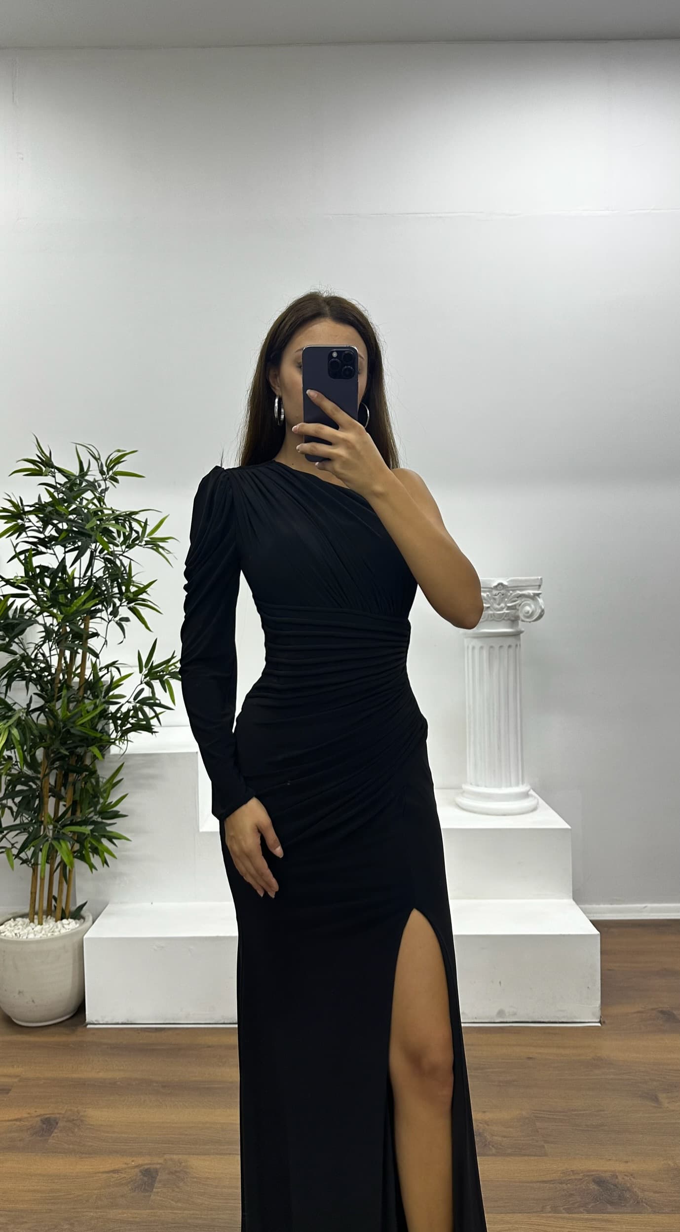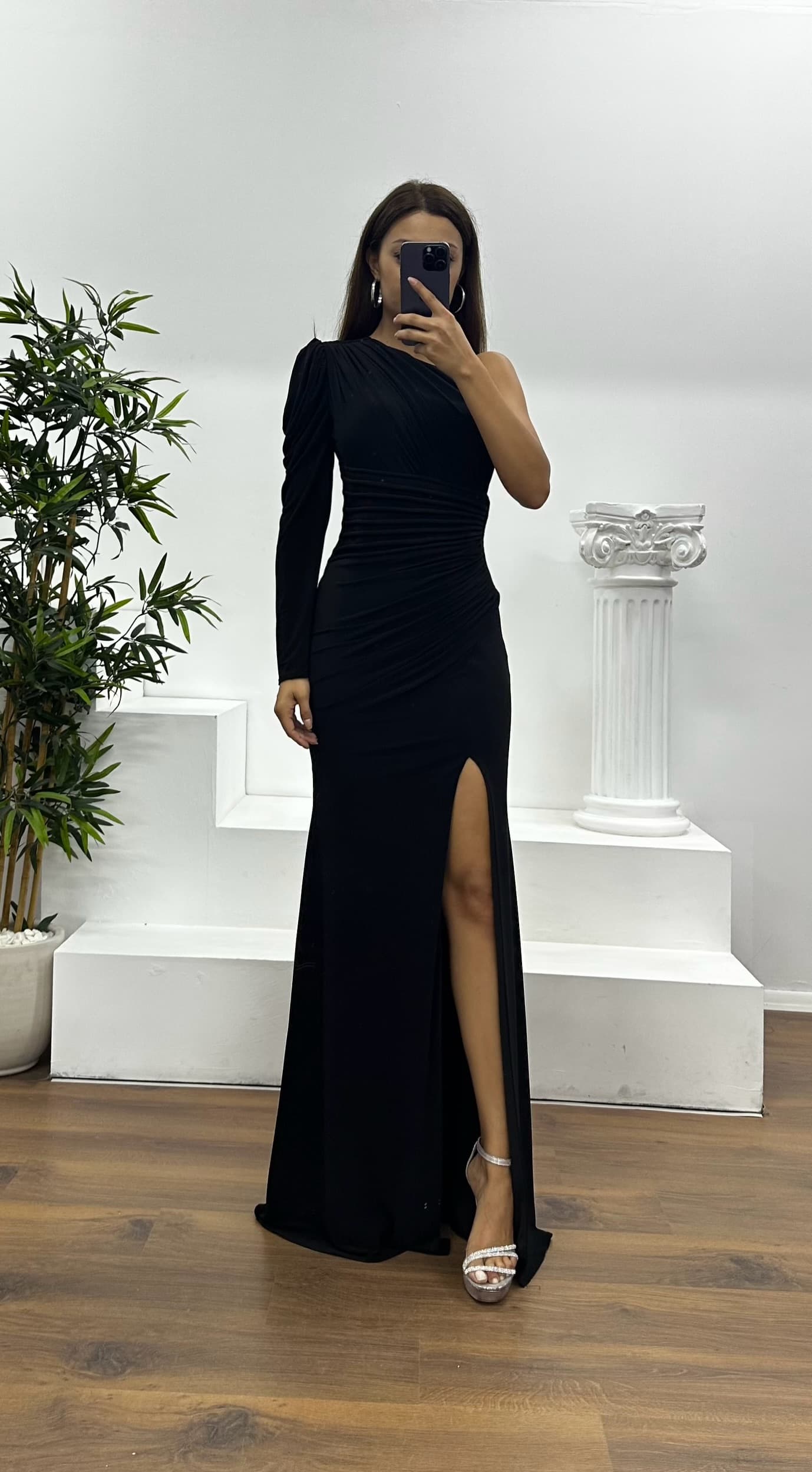 Tek omuz drapeli abiye elbise