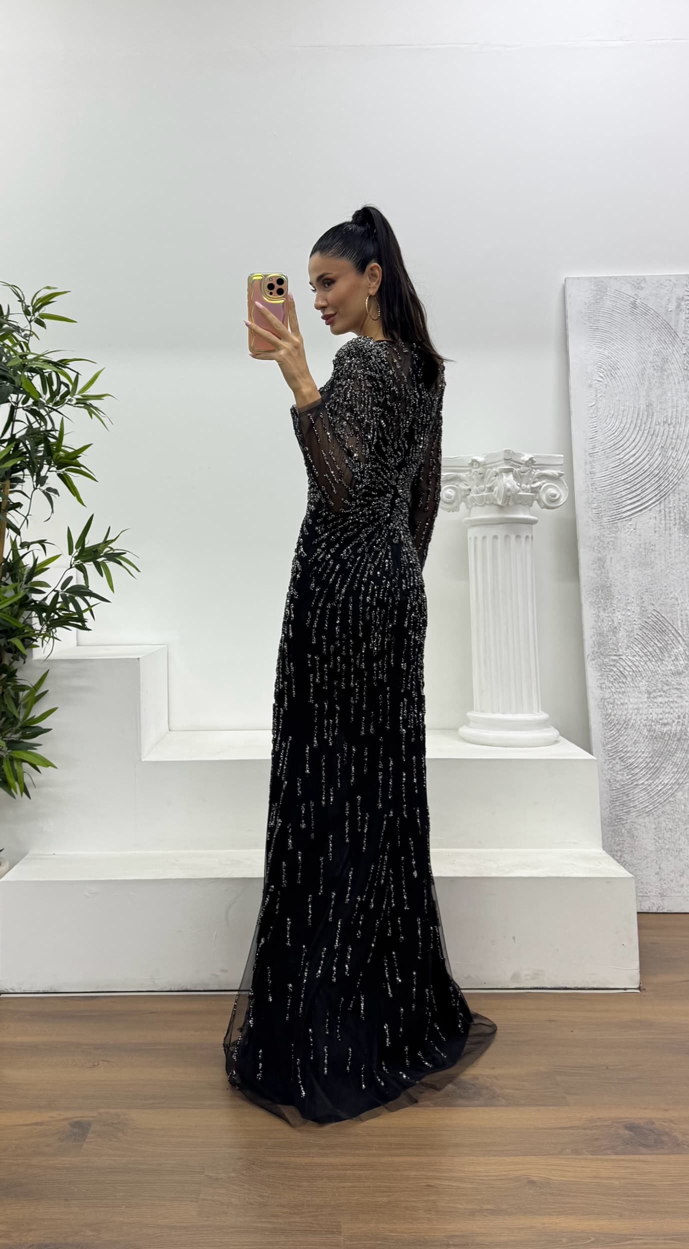 Siyah Transparan Detay İşleme Detay Abiye Elbise