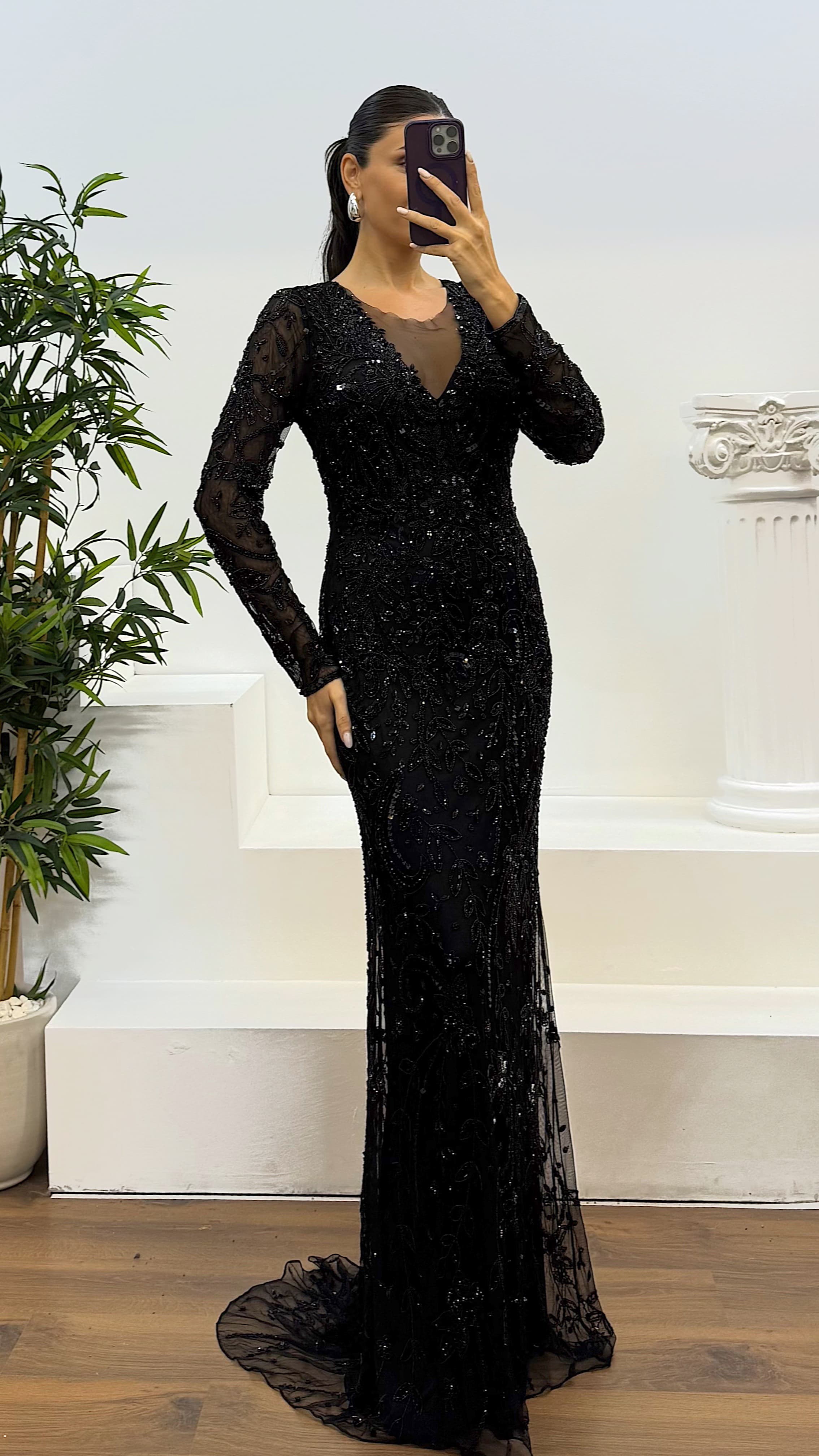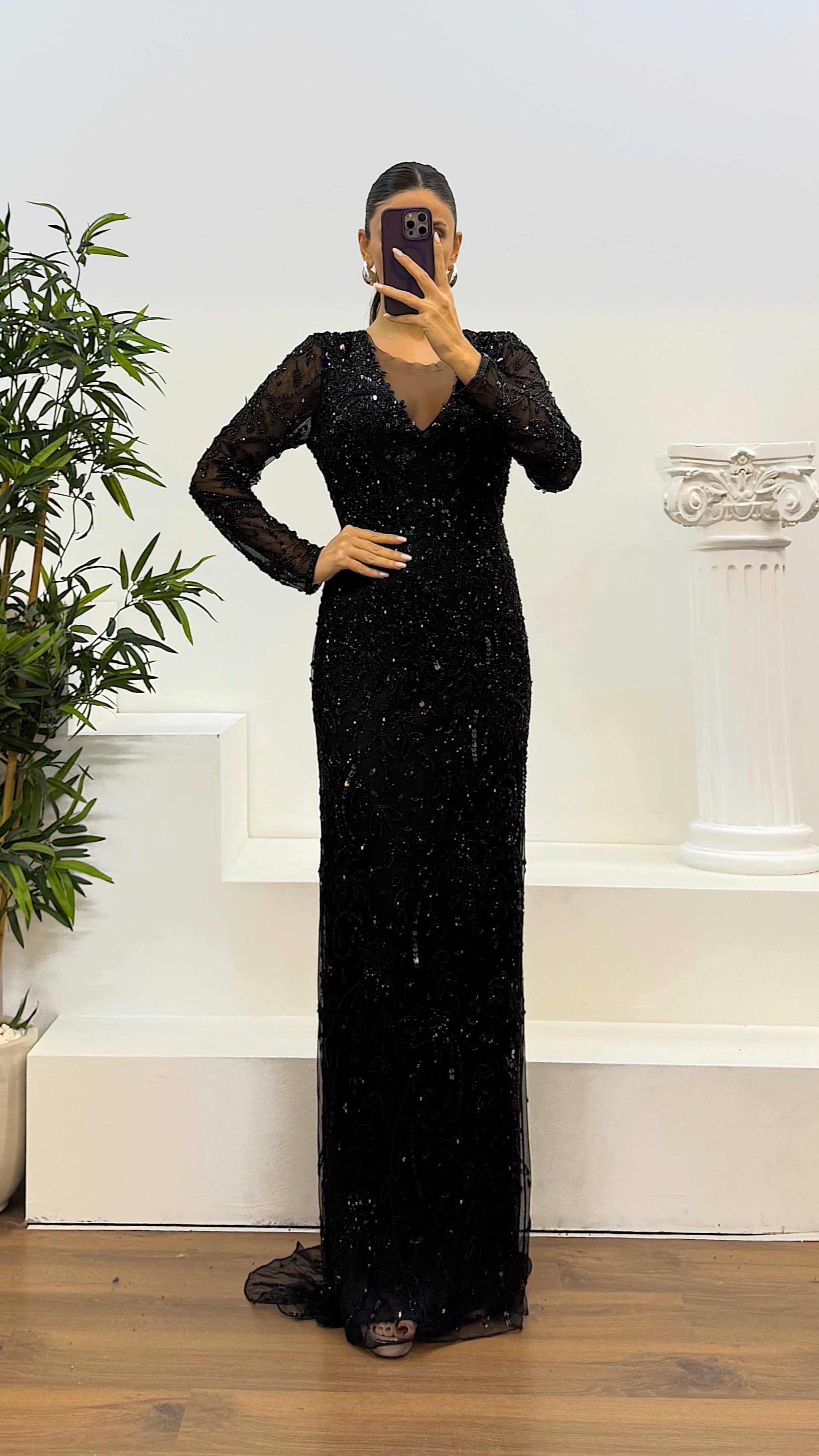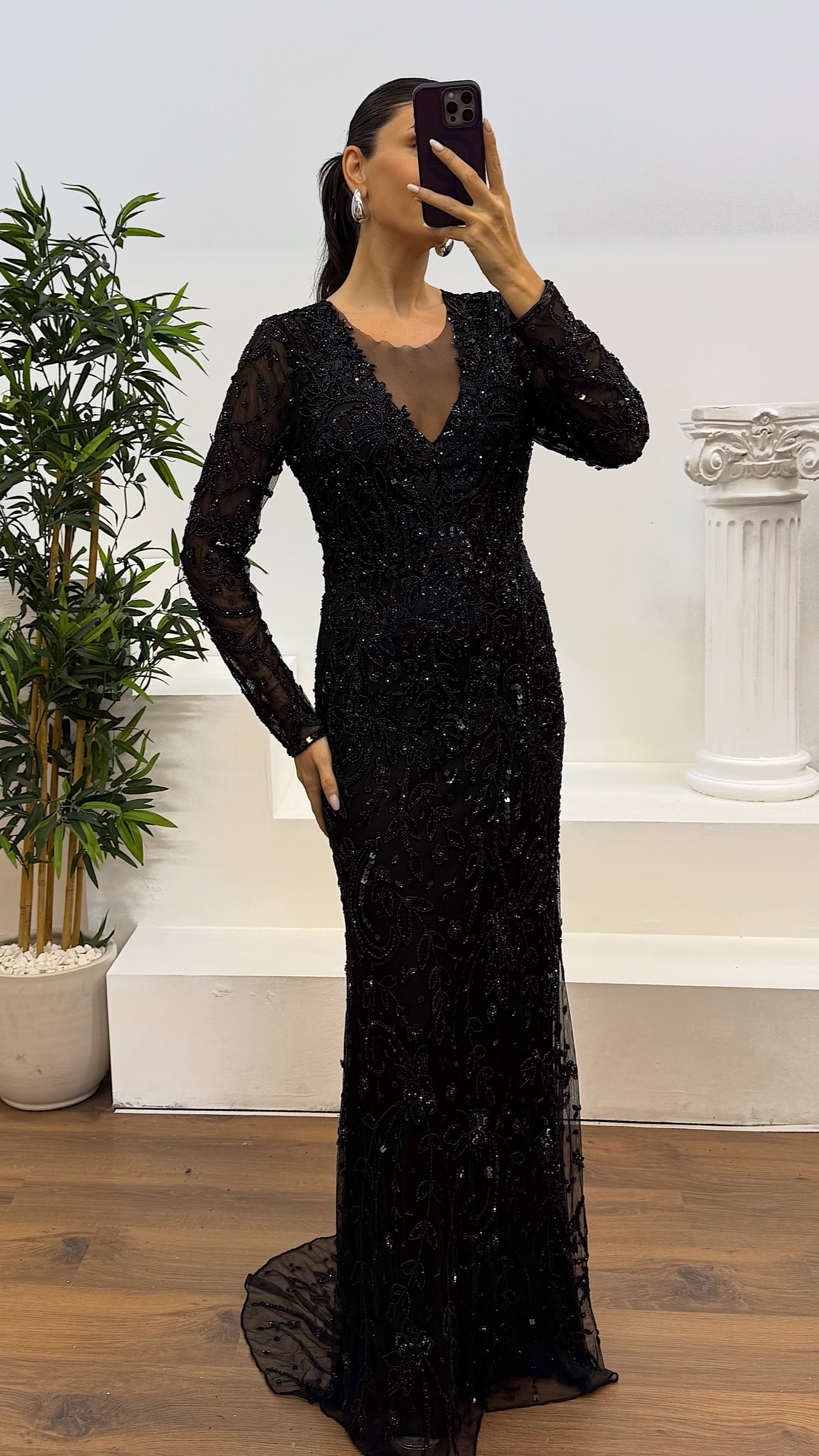 Ürün 36-42 bedene kadar uyumlu, göğüs pedli, astarlı, arka kapama fermuar, işlemeli abiye olarak tasarlanmıştır.