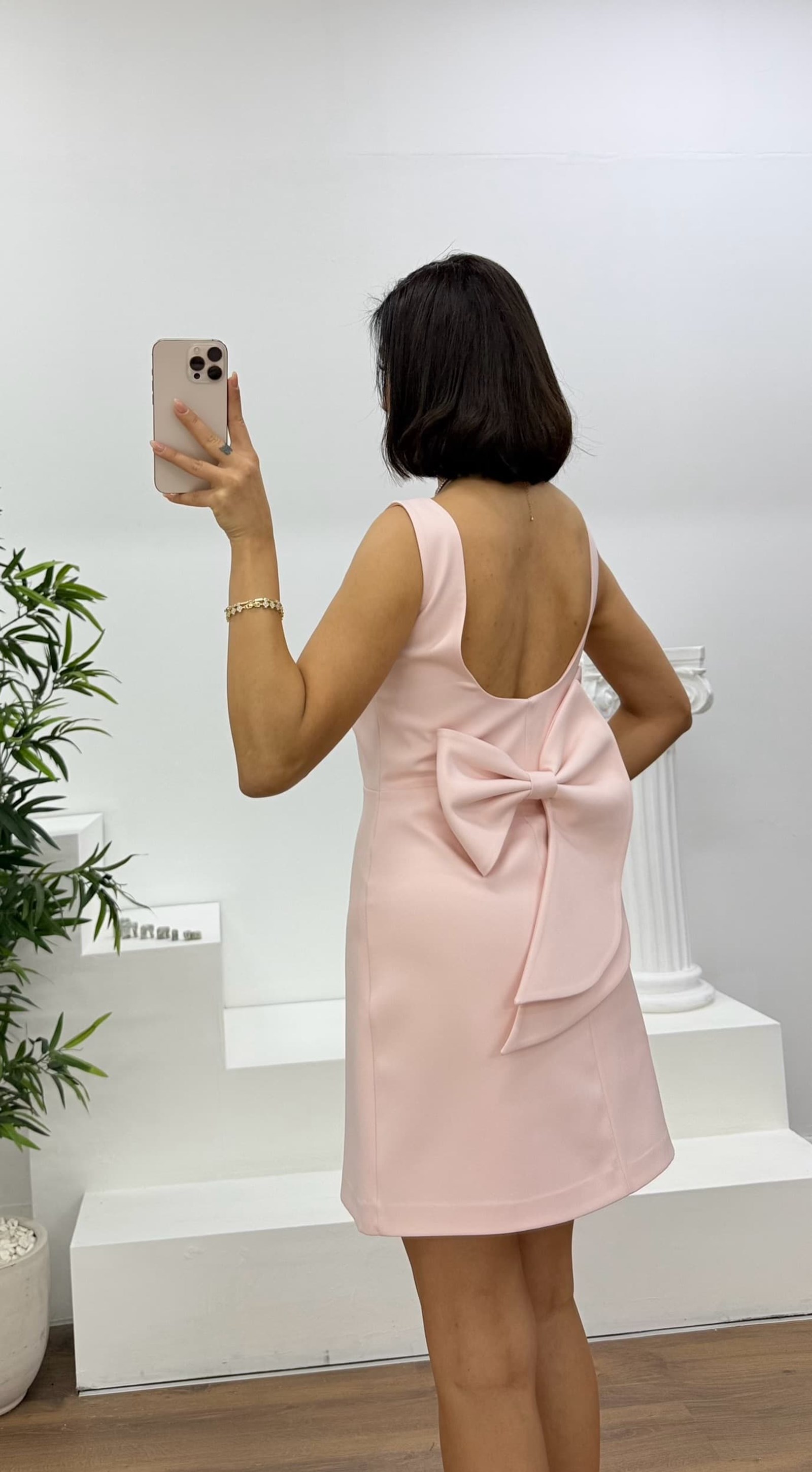 • Kemik Bisiklet Yaka Kolsuz Mini Abiye Elbise