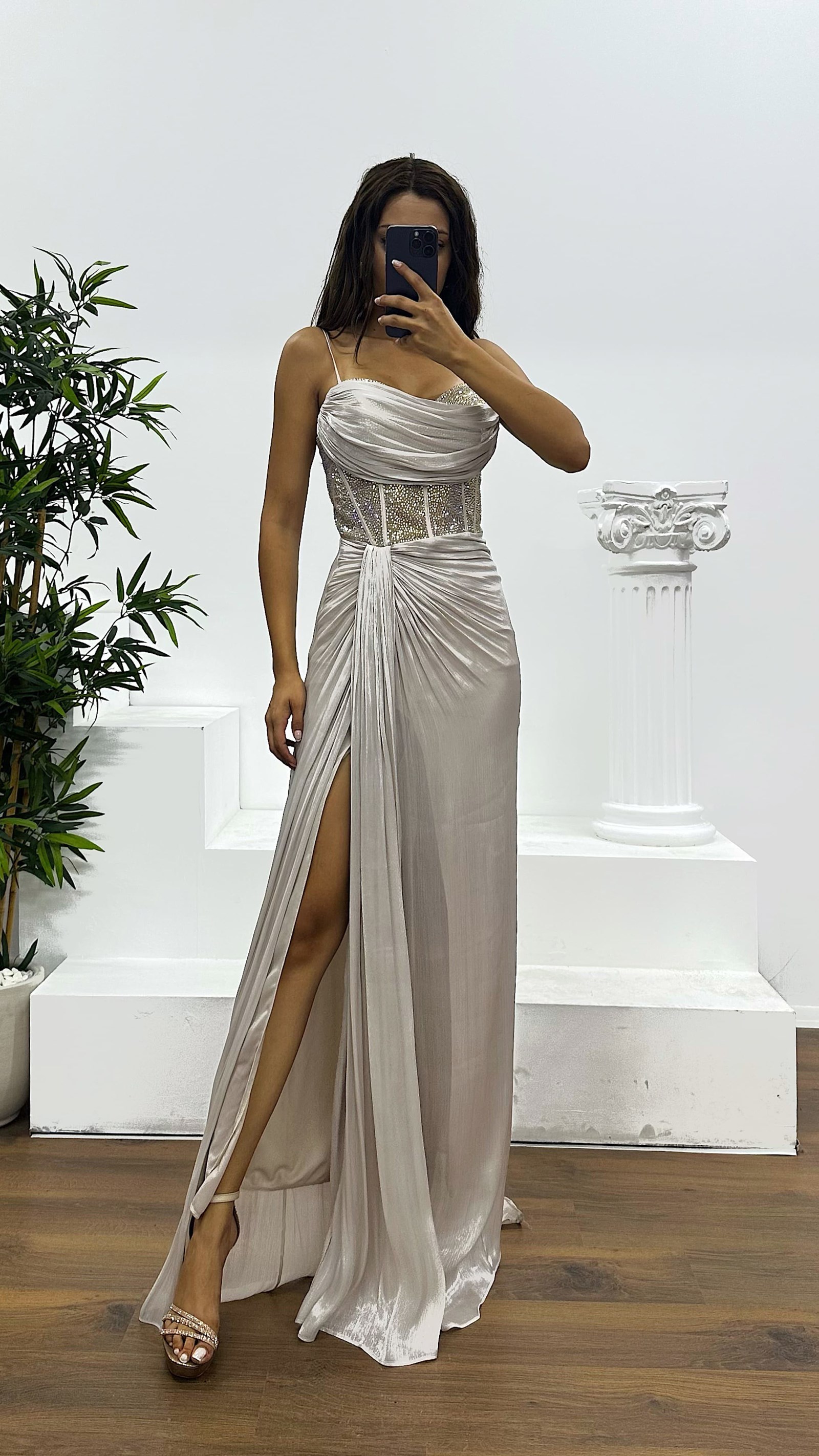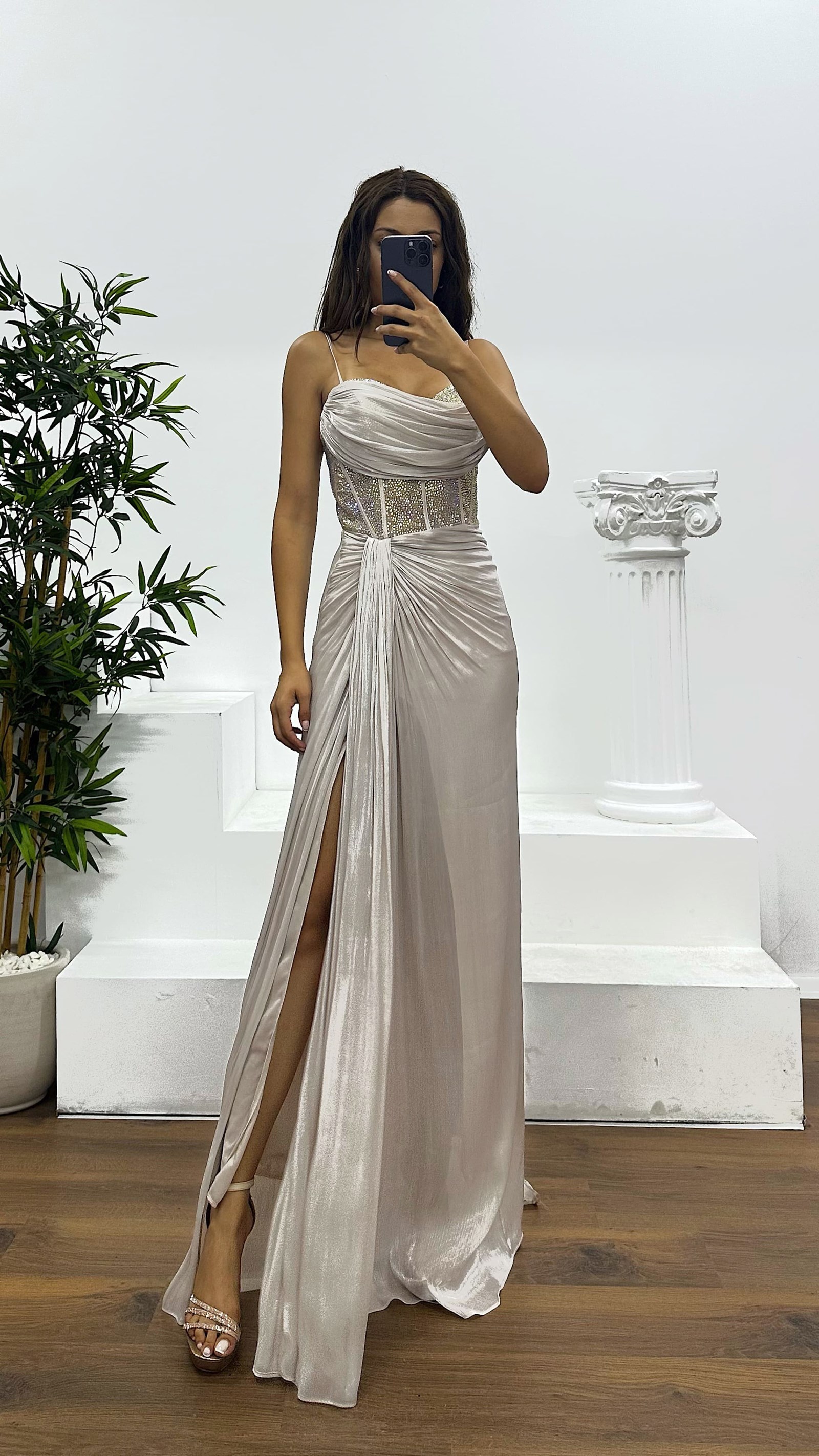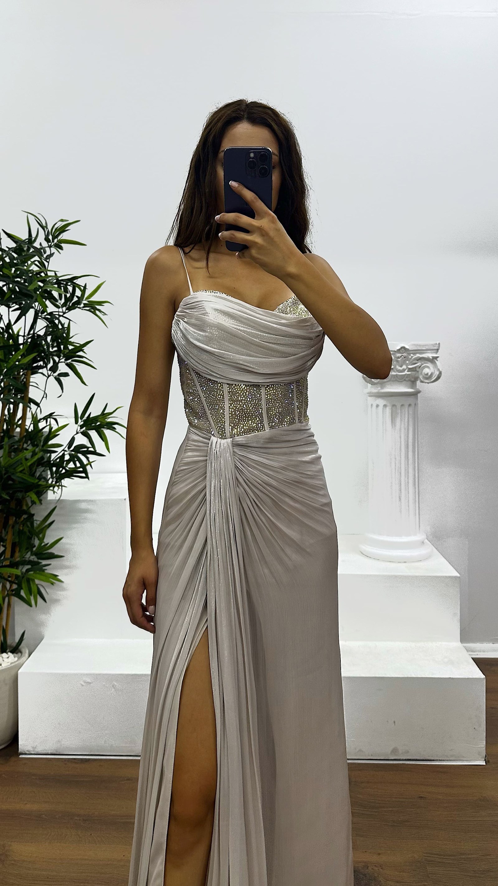 • Taş İp Askılı Jan Jan Abiye Elbise