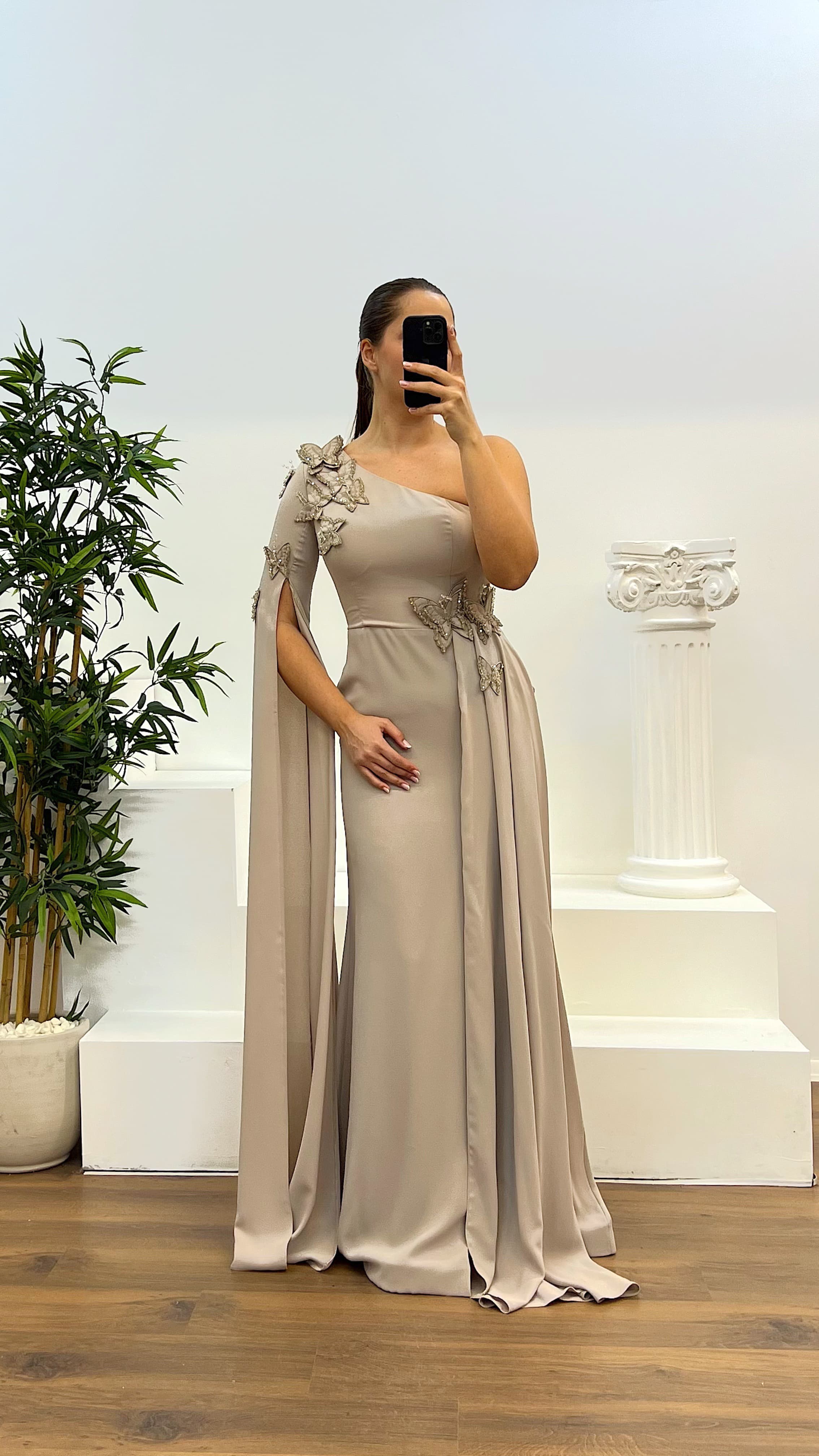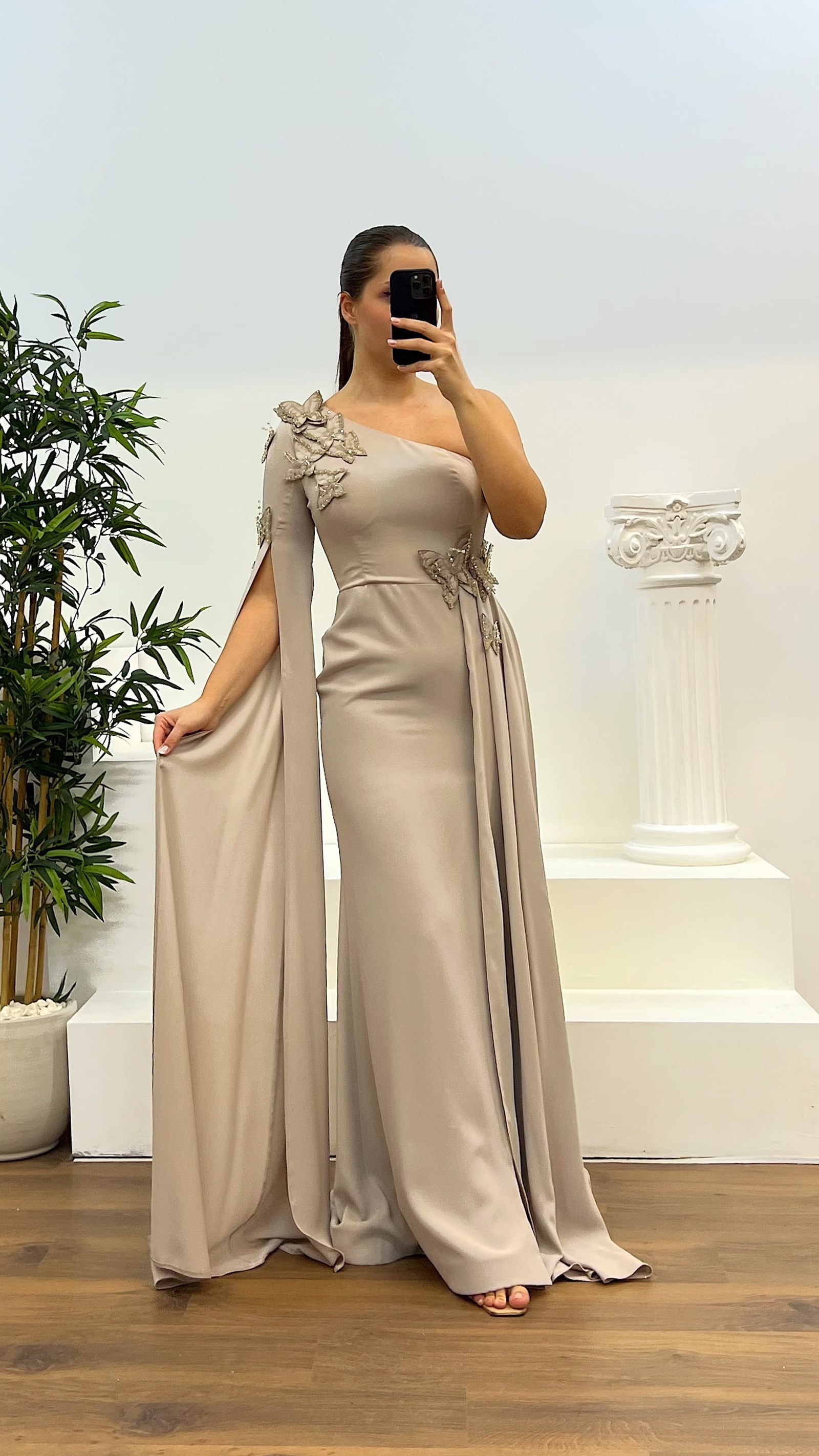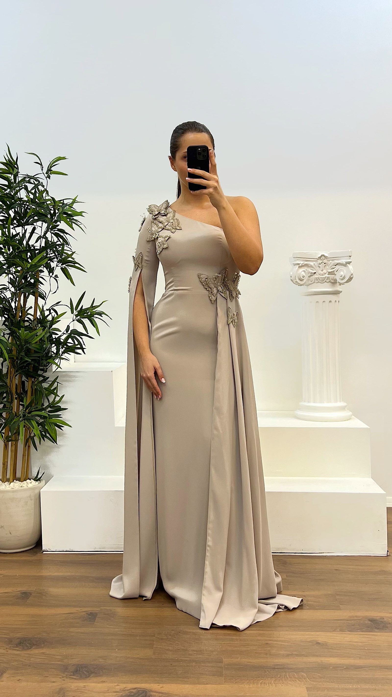 • Taş Tek Kol Büyük Beden Abiye Elbise