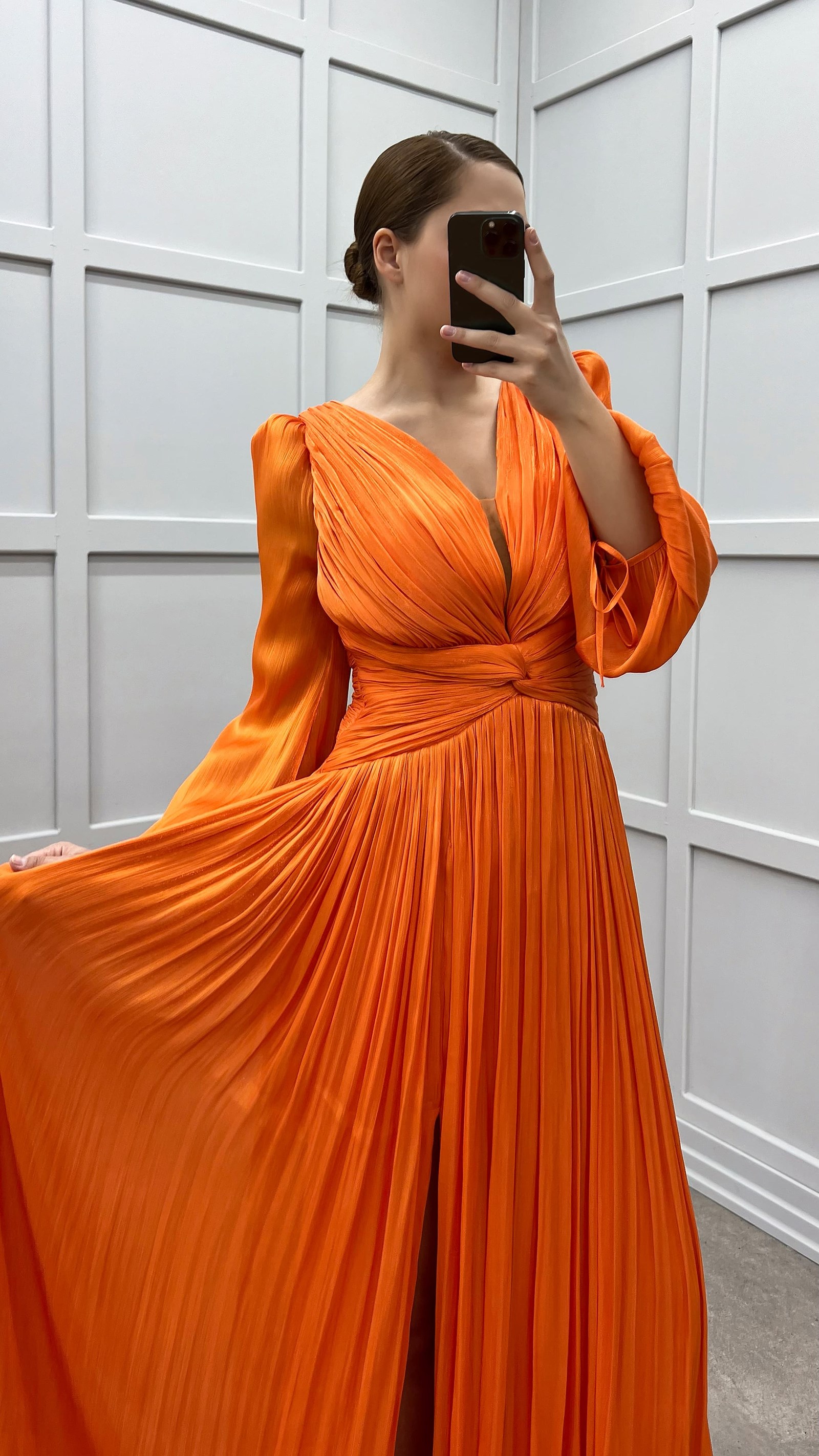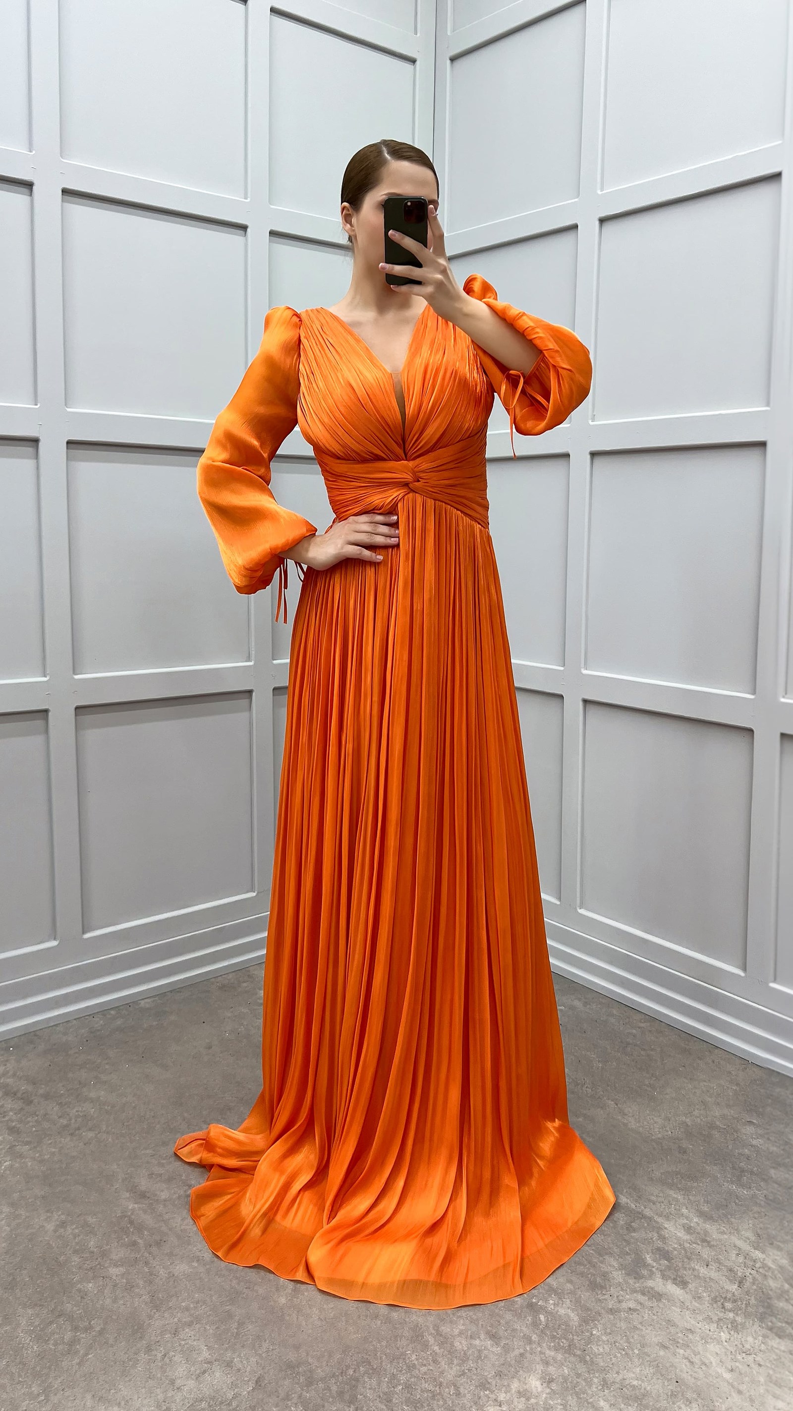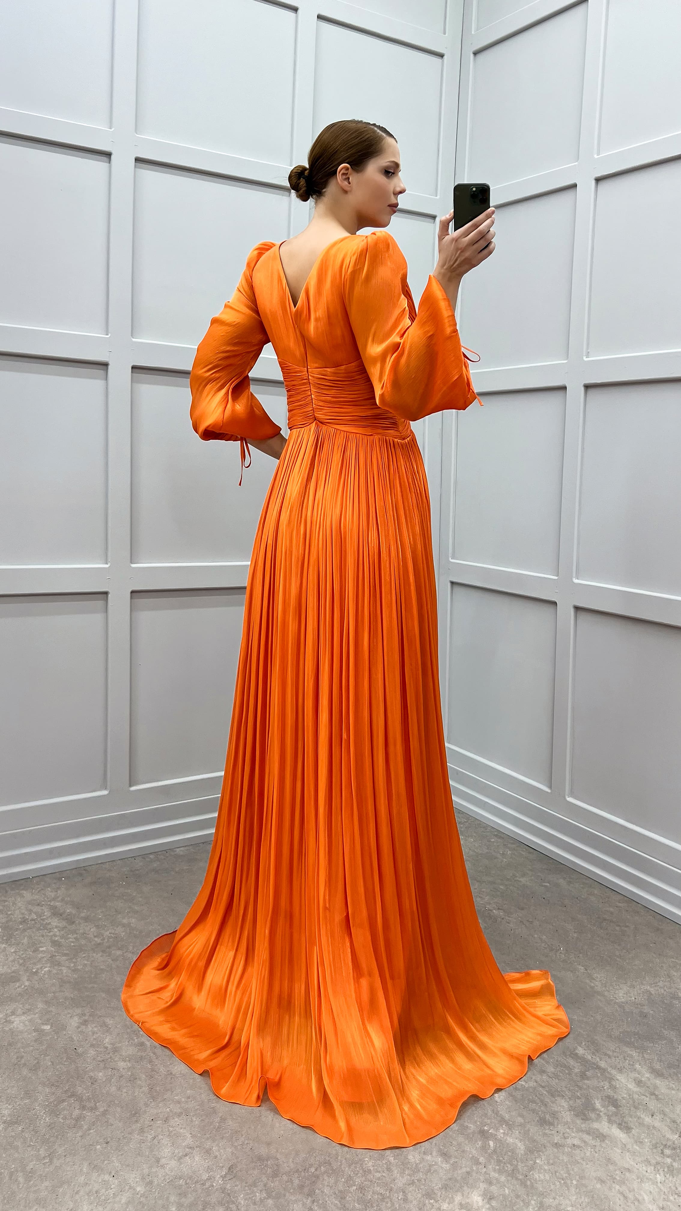 Turuncu Balon Kol Drapeli Tasarım Büyük Beden Elbise