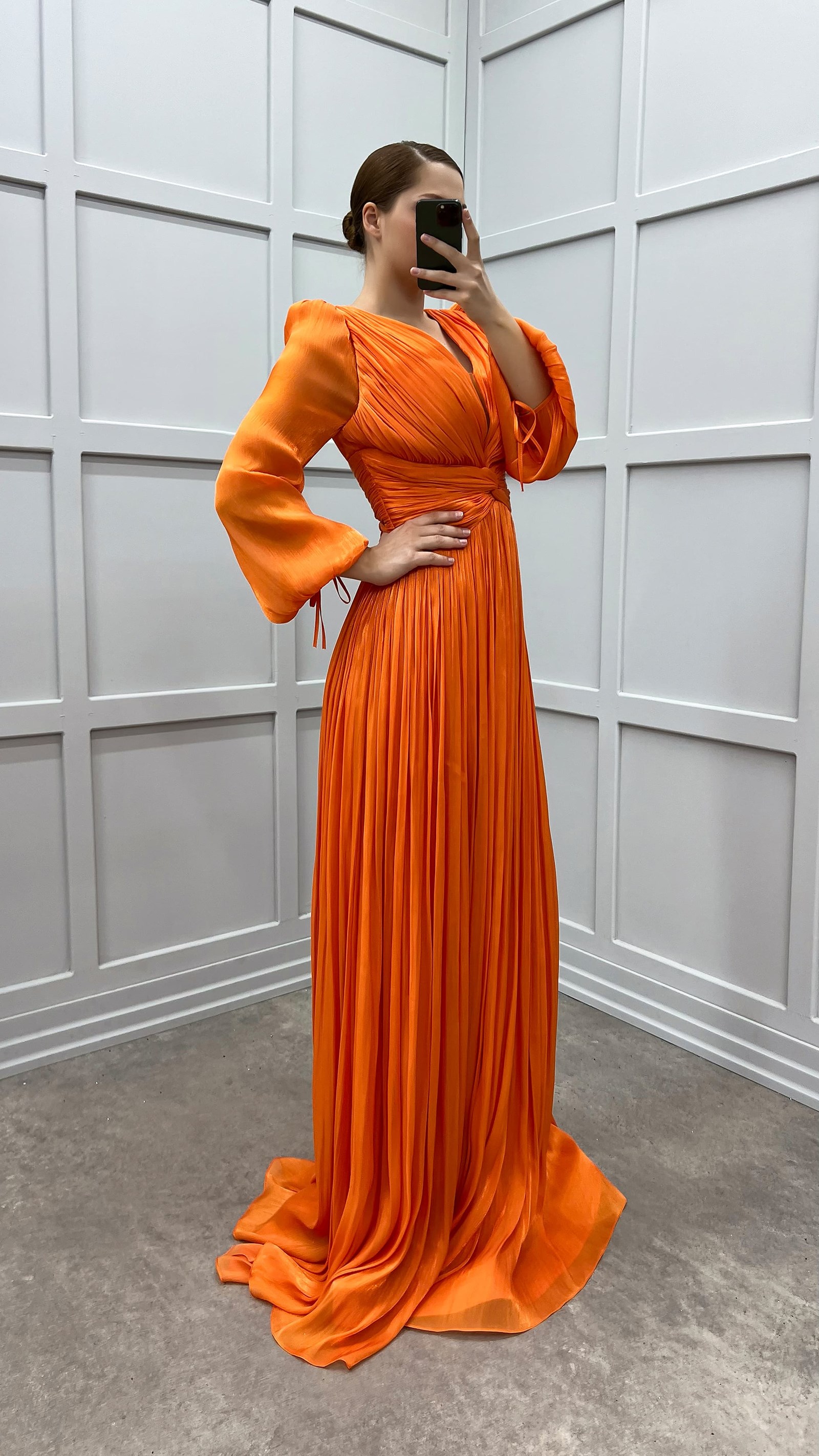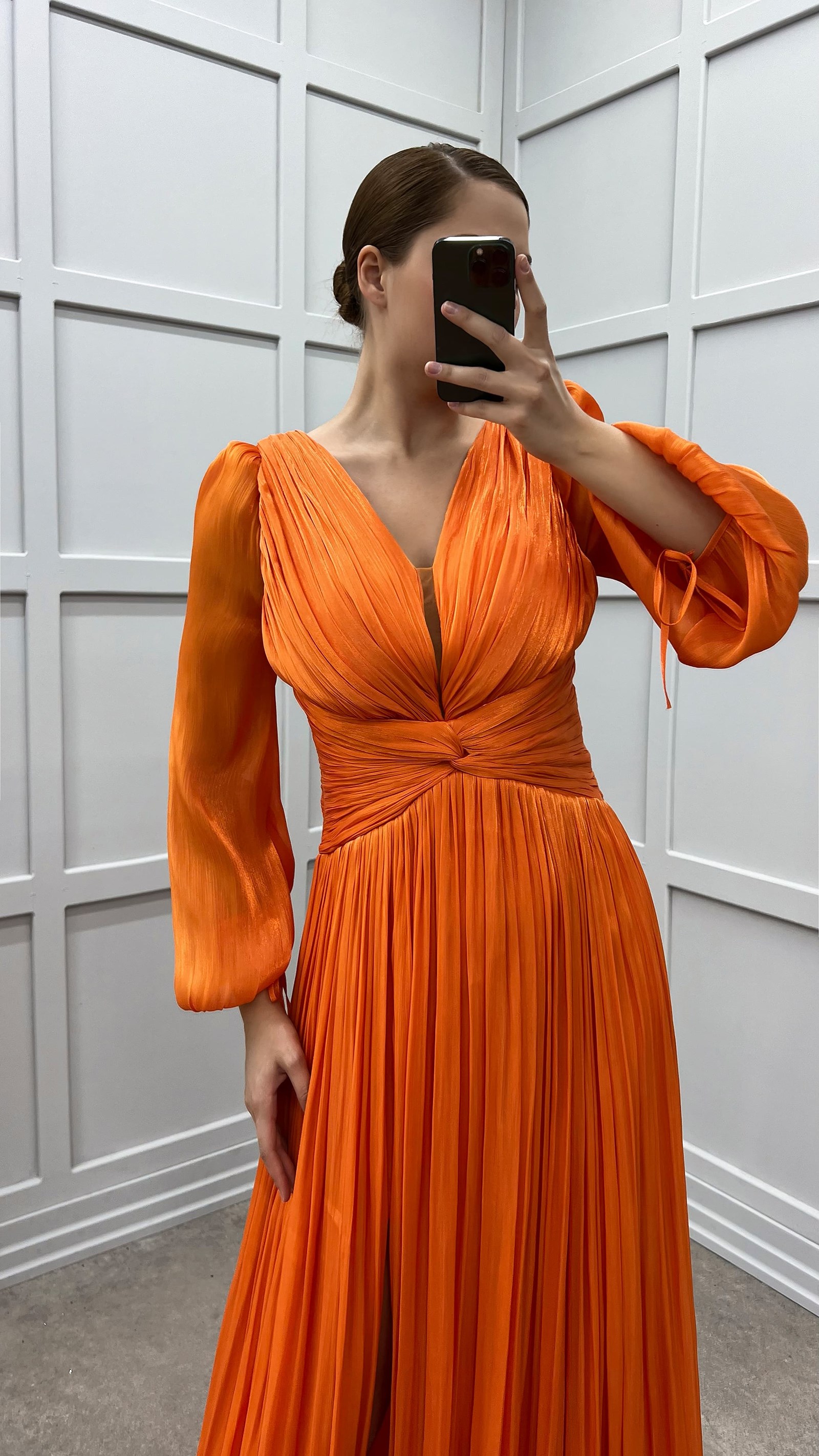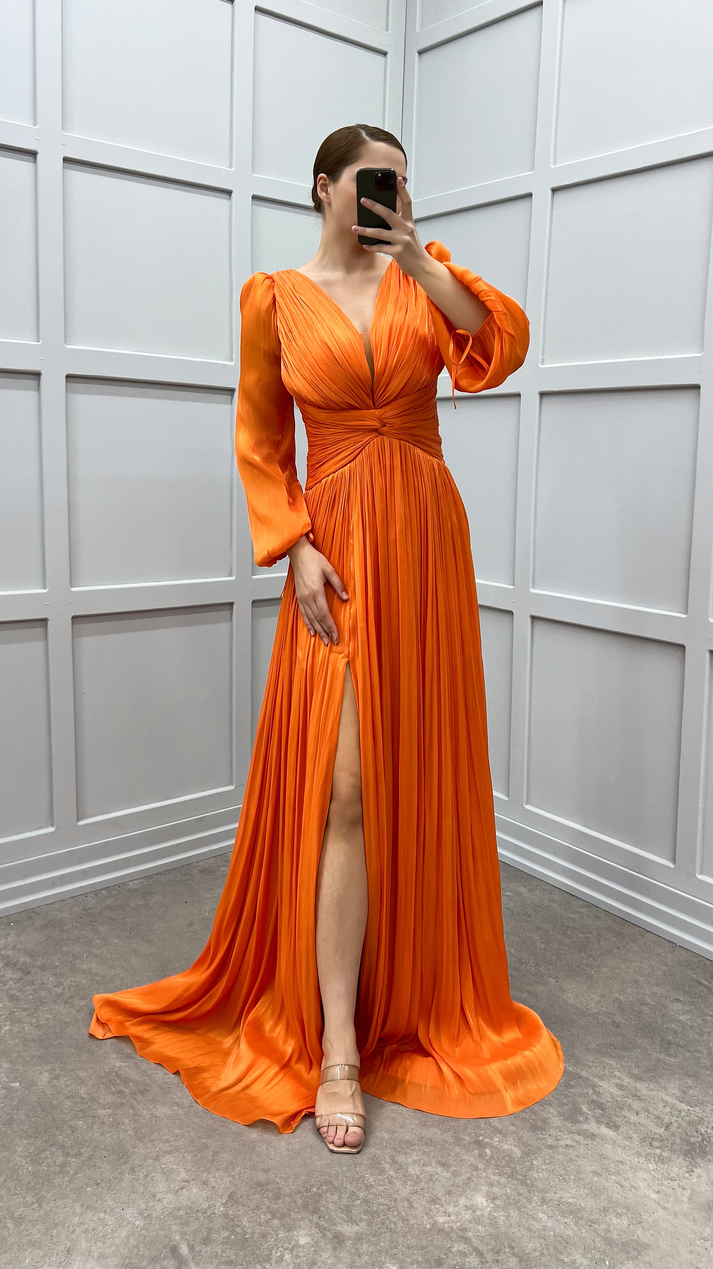 Turuncu Balon Kol Drapeli Tasarım Büyük Beden Elbise