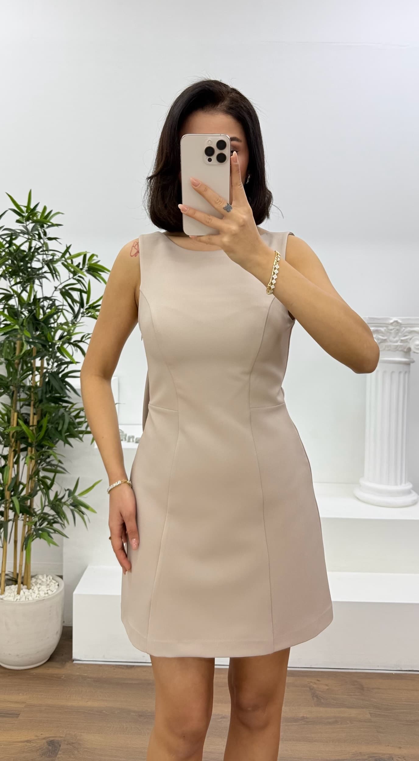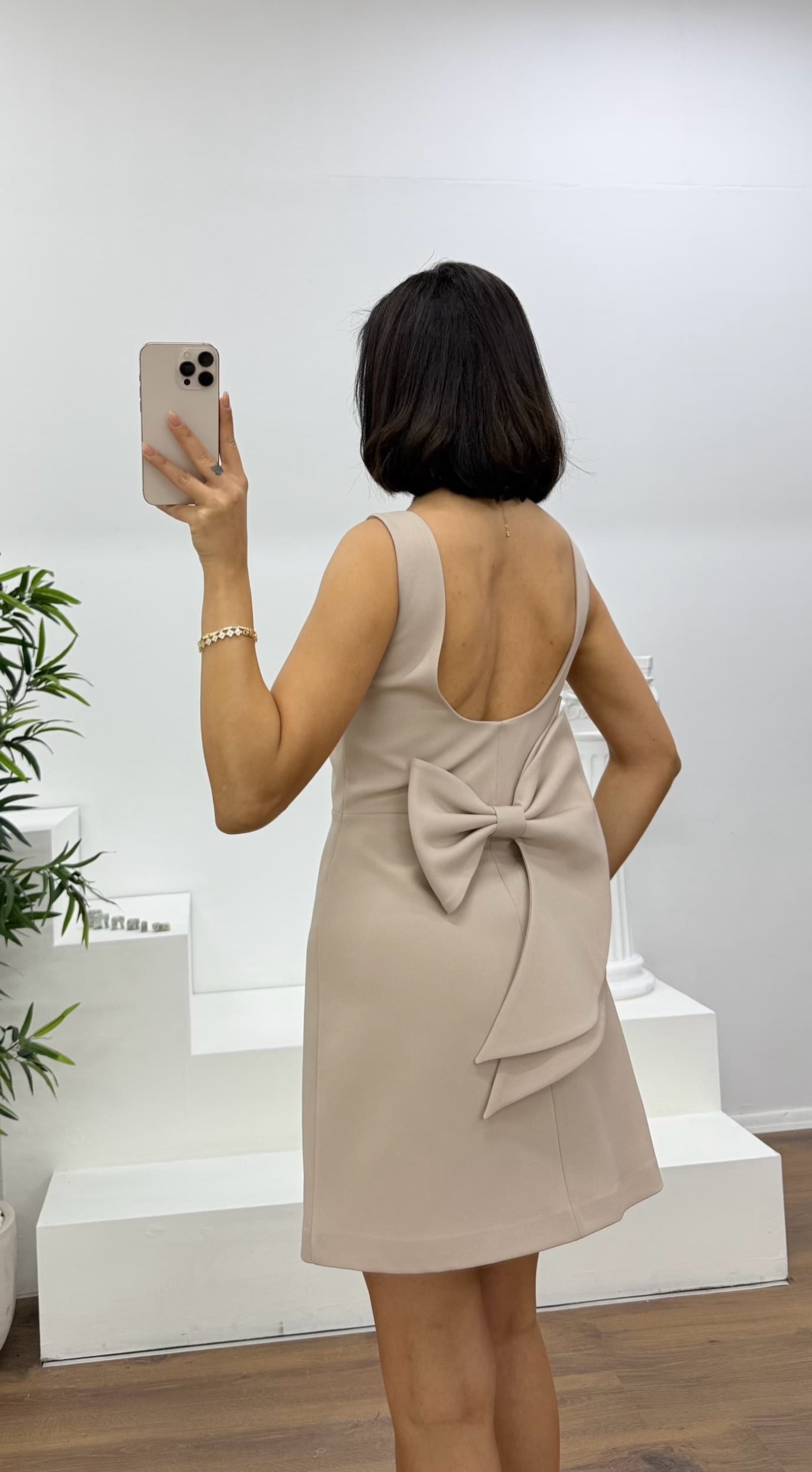 • Kemik Bisiklet Yaka Kolsuz Mini Abiye Elbise