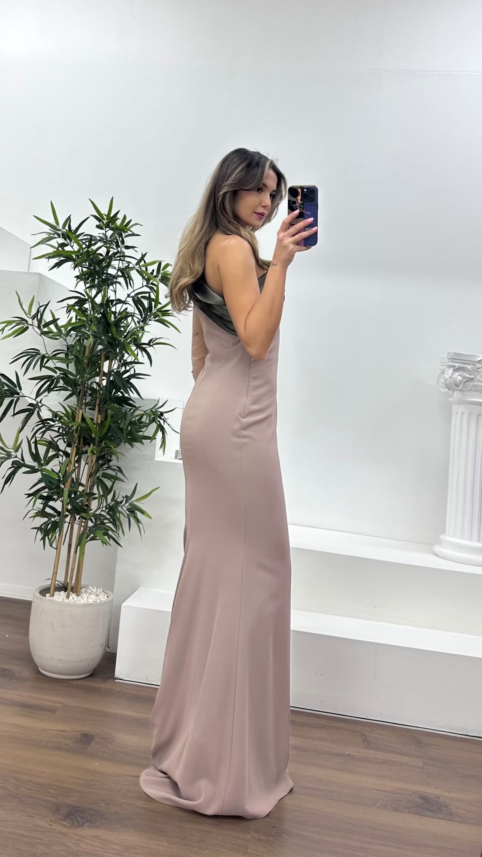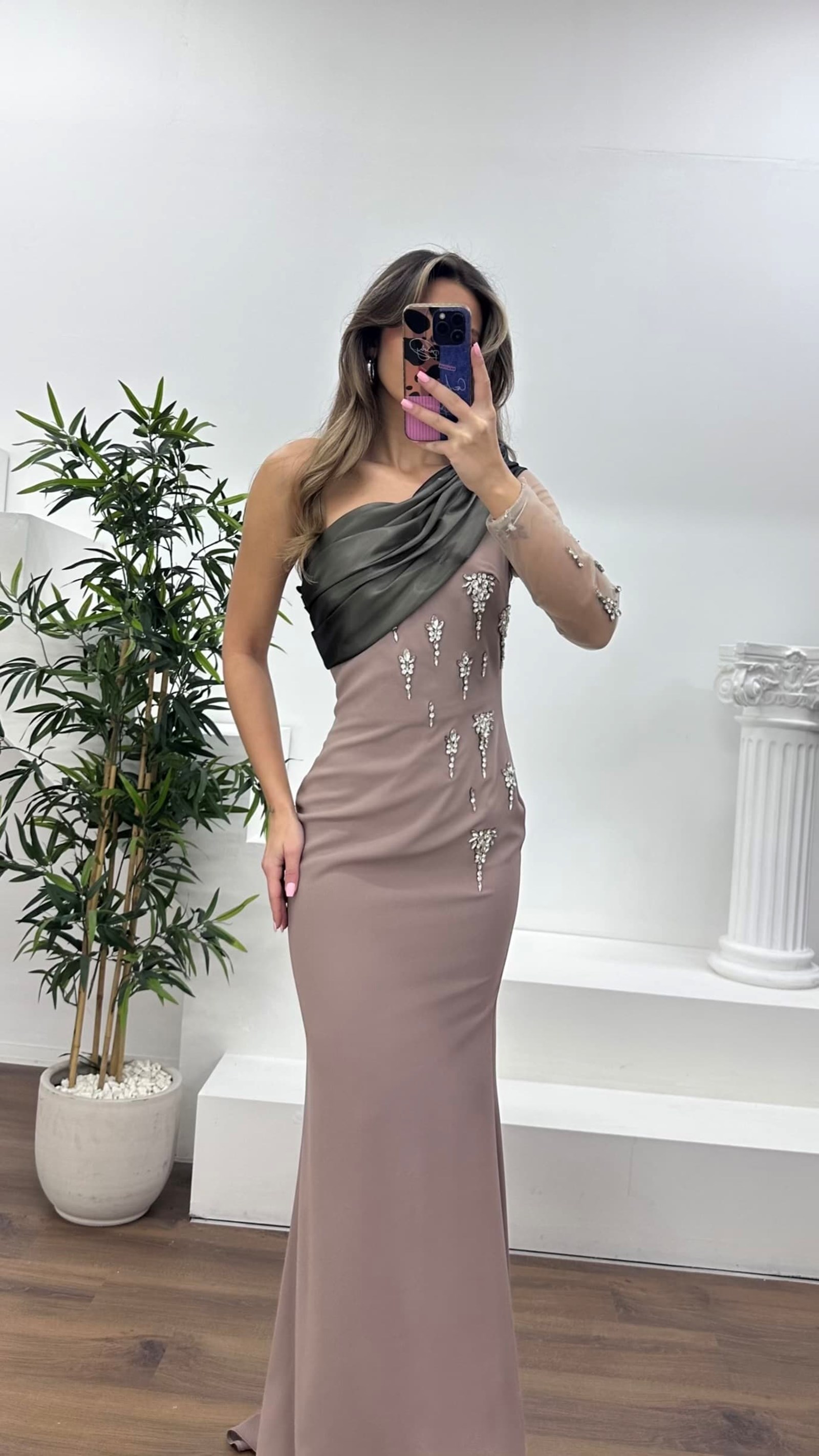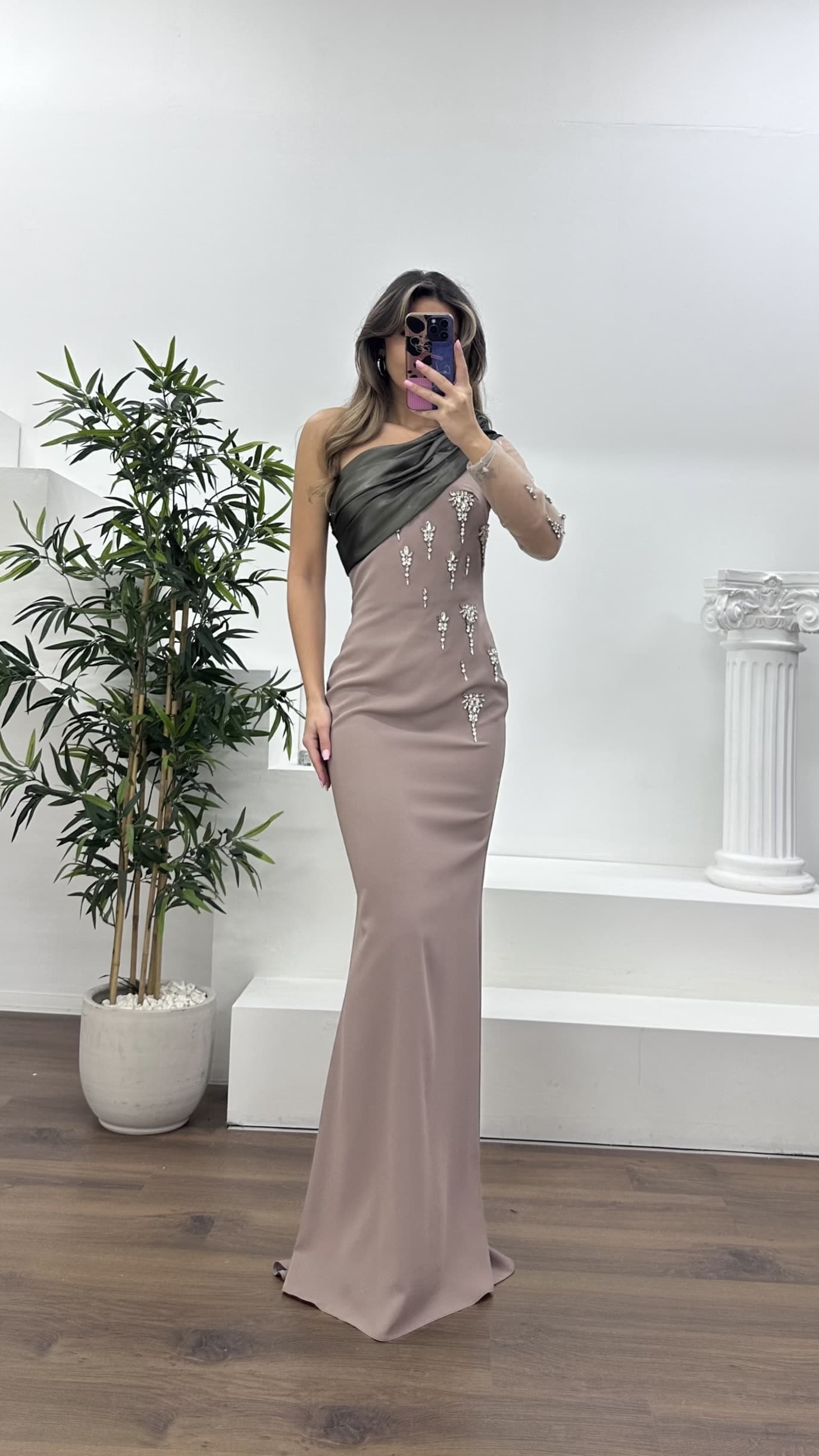 Drapeli taş işlemeli abiye elbise