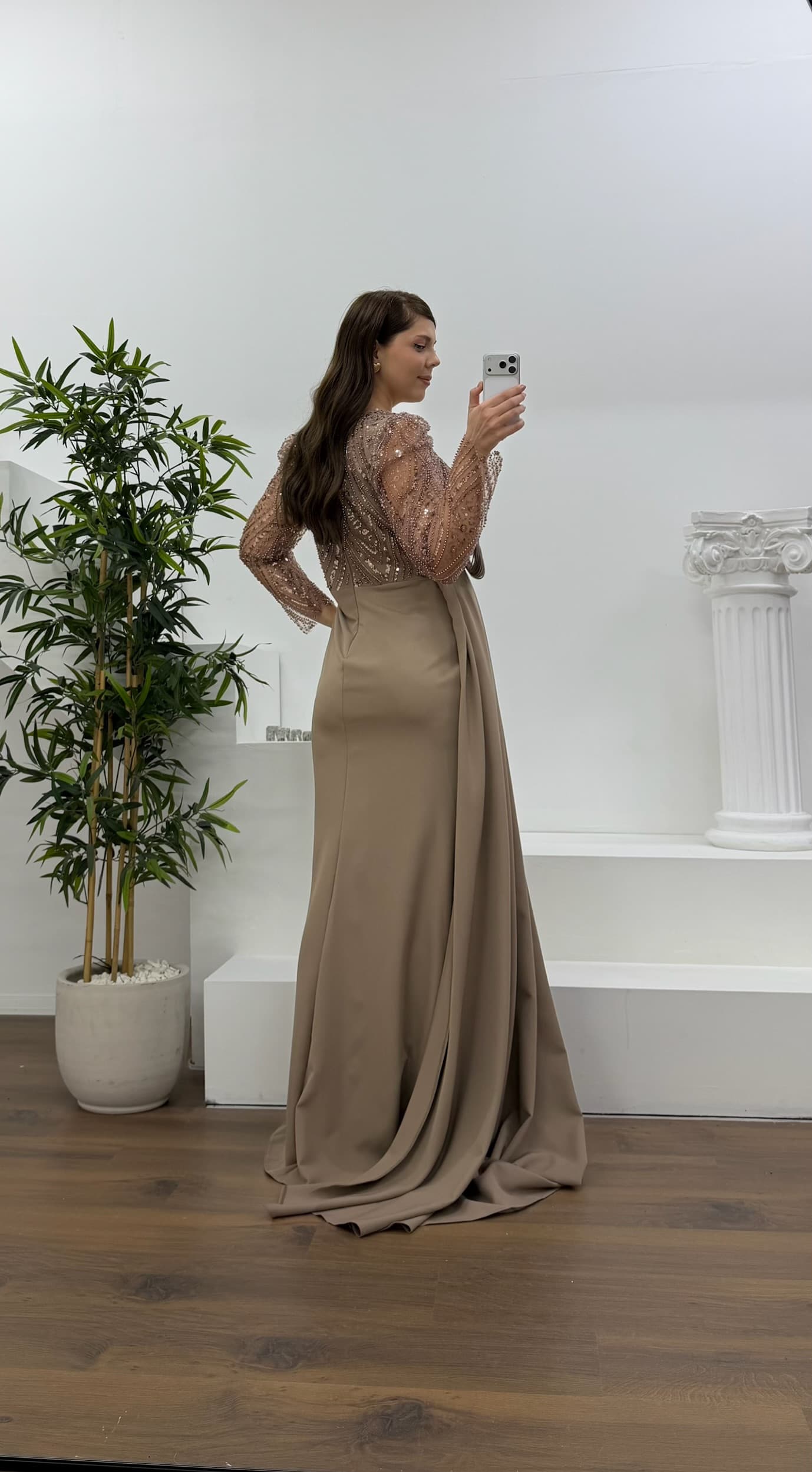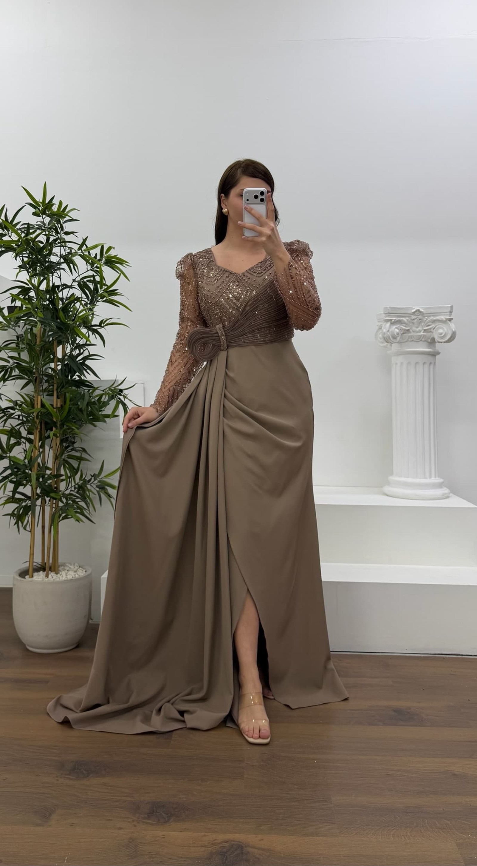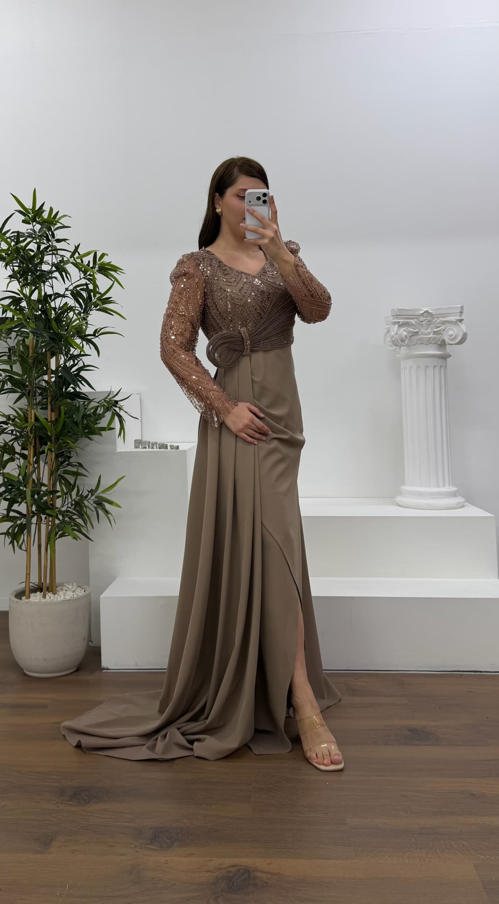 Ürün 46-52 bedene kadar uyumludur. göğüs pedli, astarlı, arka kapama fermuar, yırtmaçlı, bel detay abiye olarak tasarlanmıştır.
