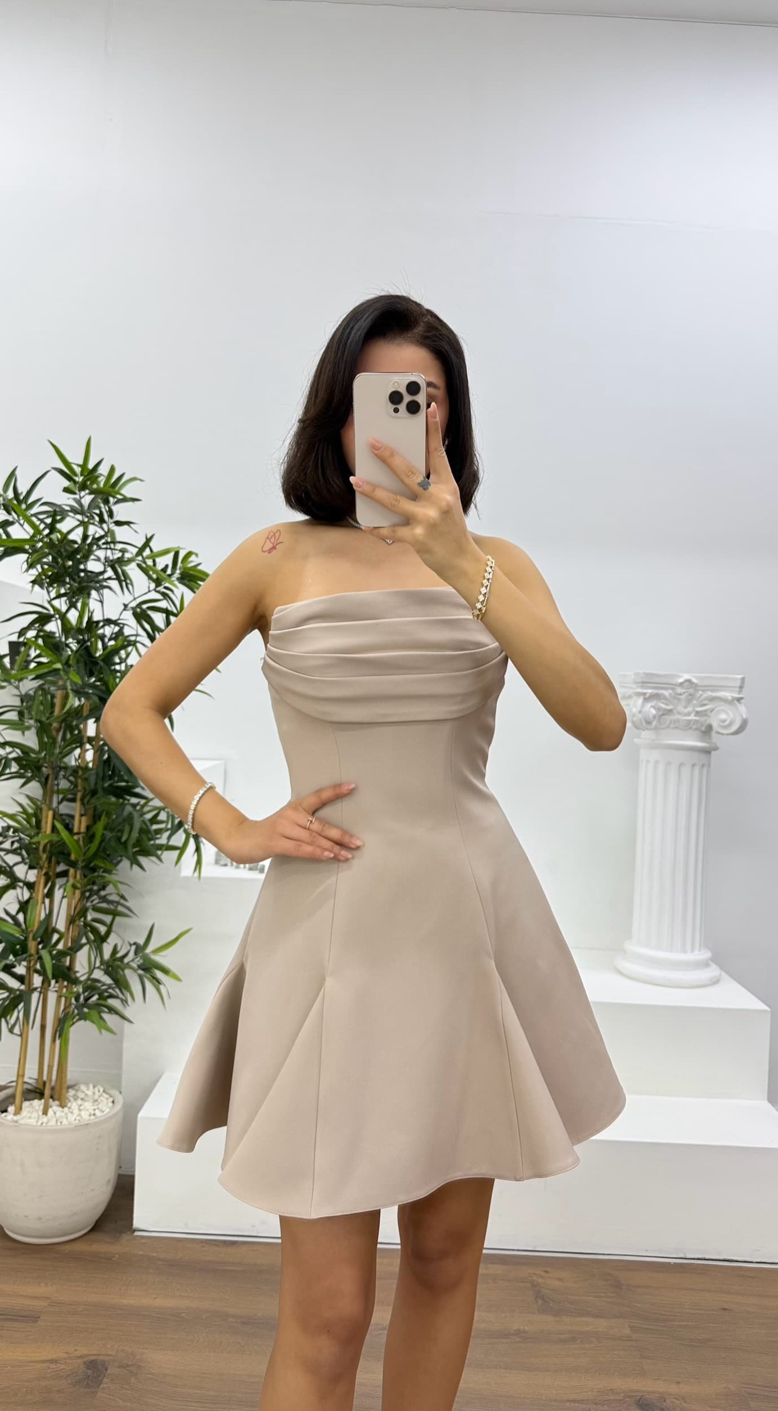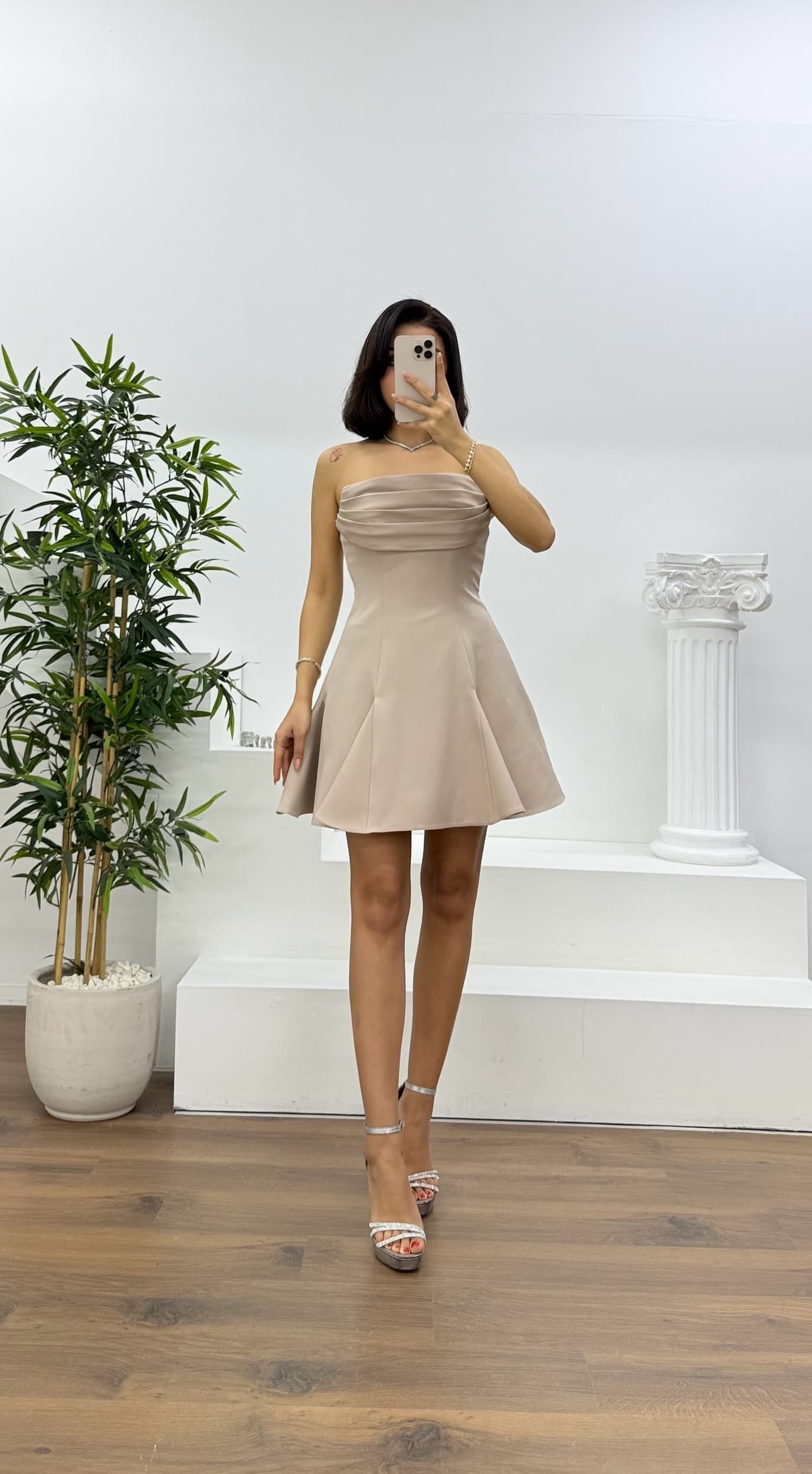 • Somon Straplez Drapeli Mini Abiye Elbise
