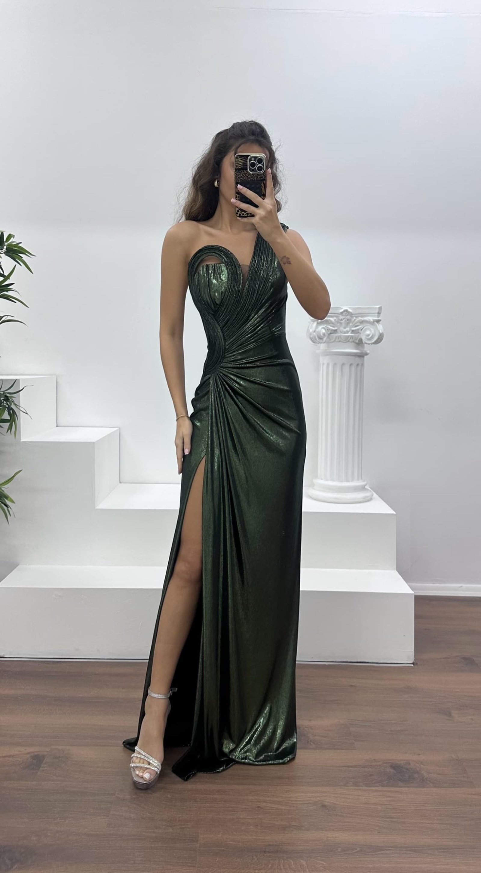 Ürün 36-44 bedene kadar uyumludur. göğüs pedli, astarlı, arka kapama fermuar, yırtmaçlı, tek omuz abiye olarak tasarlanmıştır.