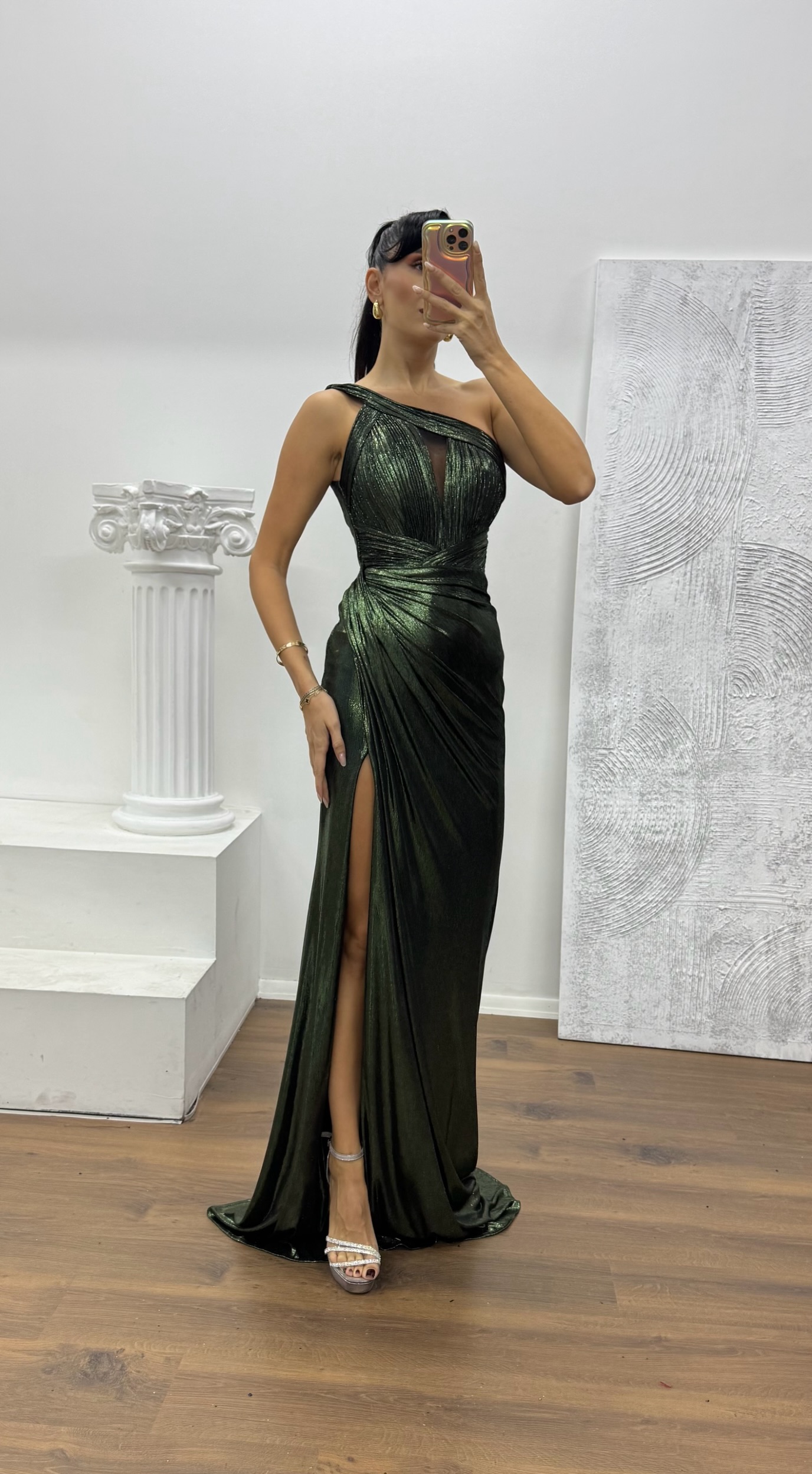 Ürün 36-44 bedene kadar uyumlu, göğüs pedli, astarlı, arka kapama fermuar, yırtmaçlı abiye olarak tasarlanmıştır.