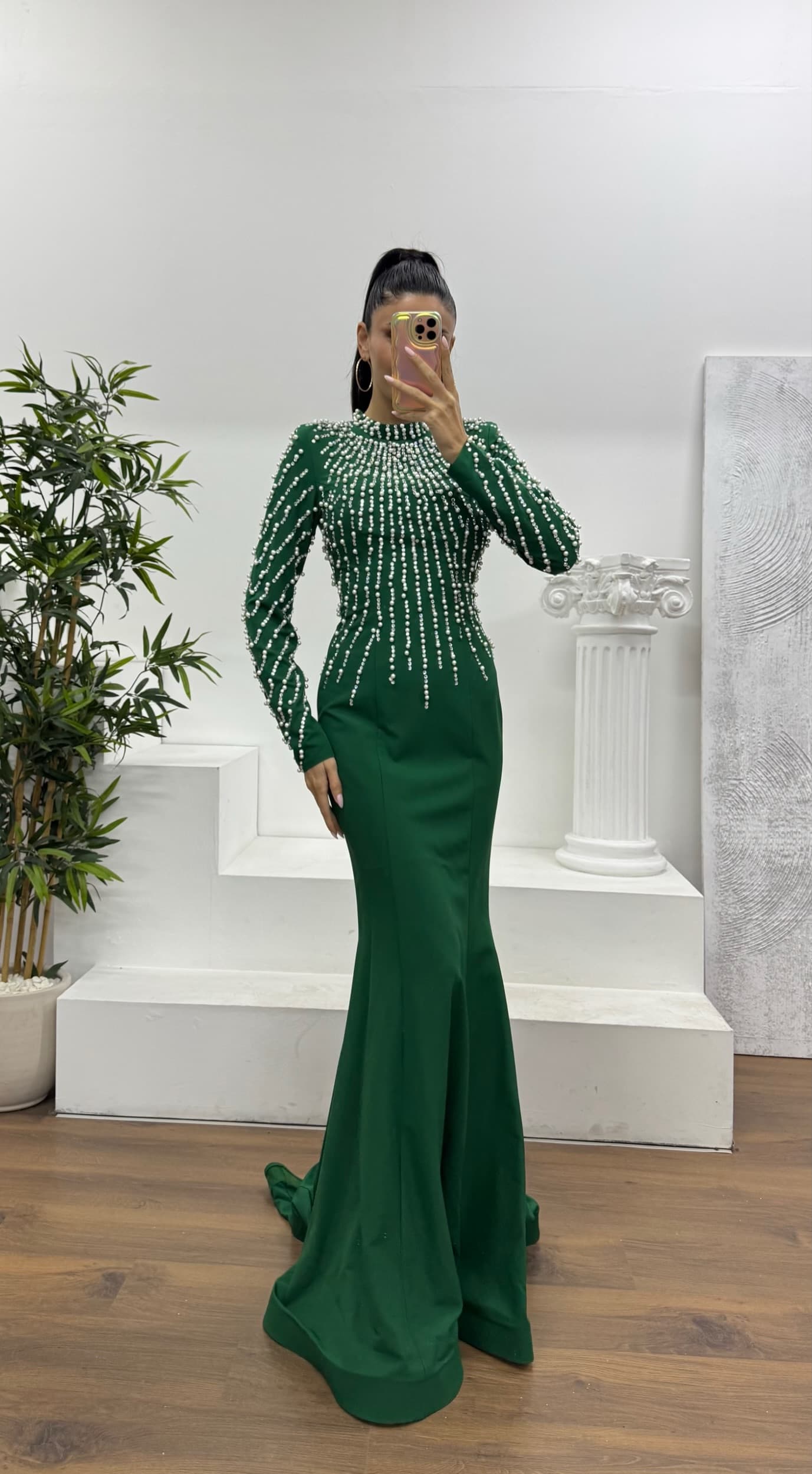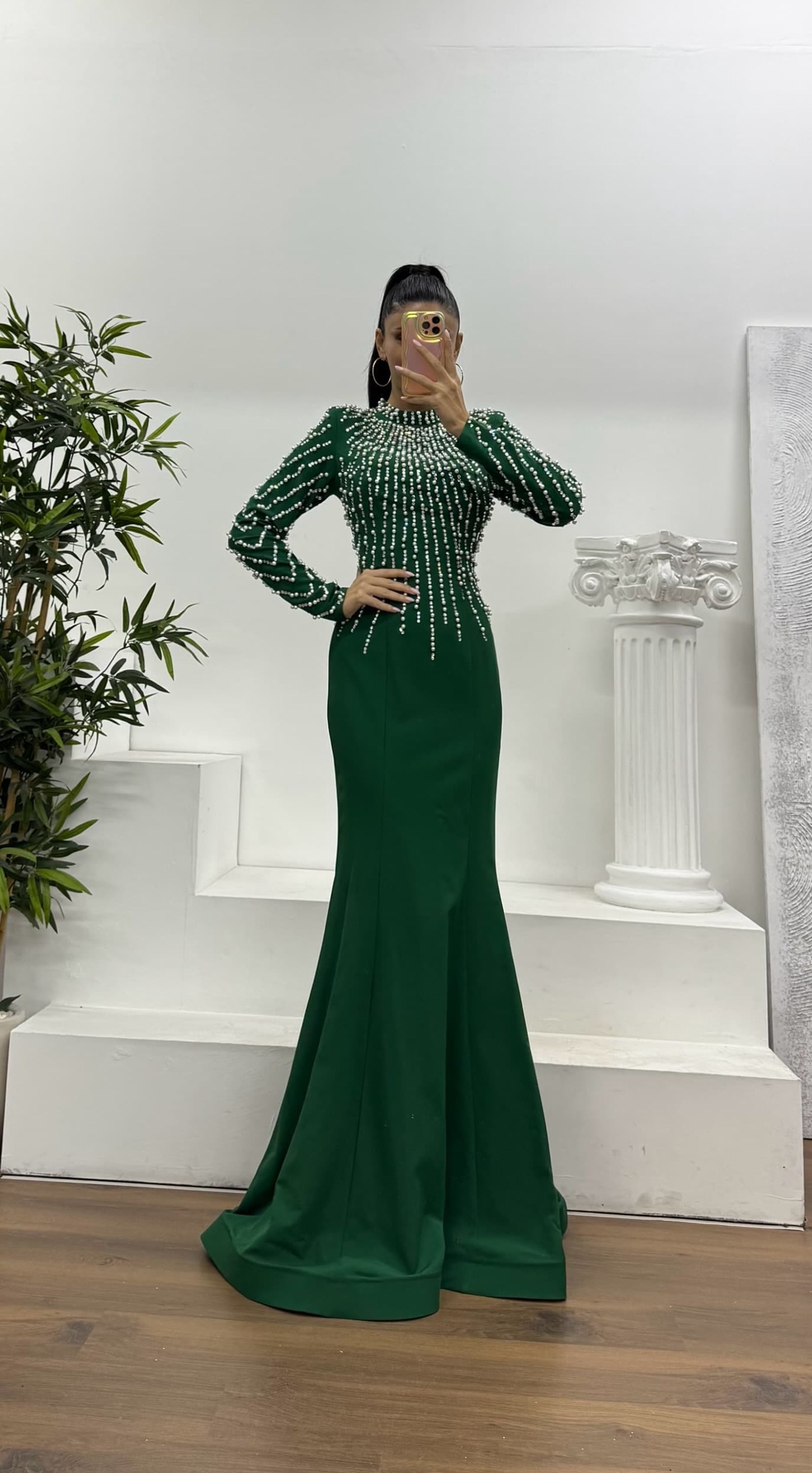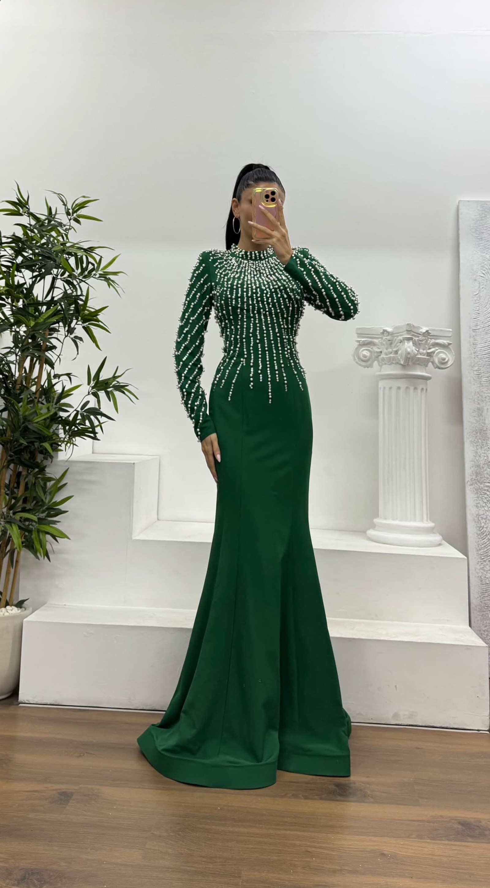 • Yeşil İnci İşlemeli Abiye Elbise
