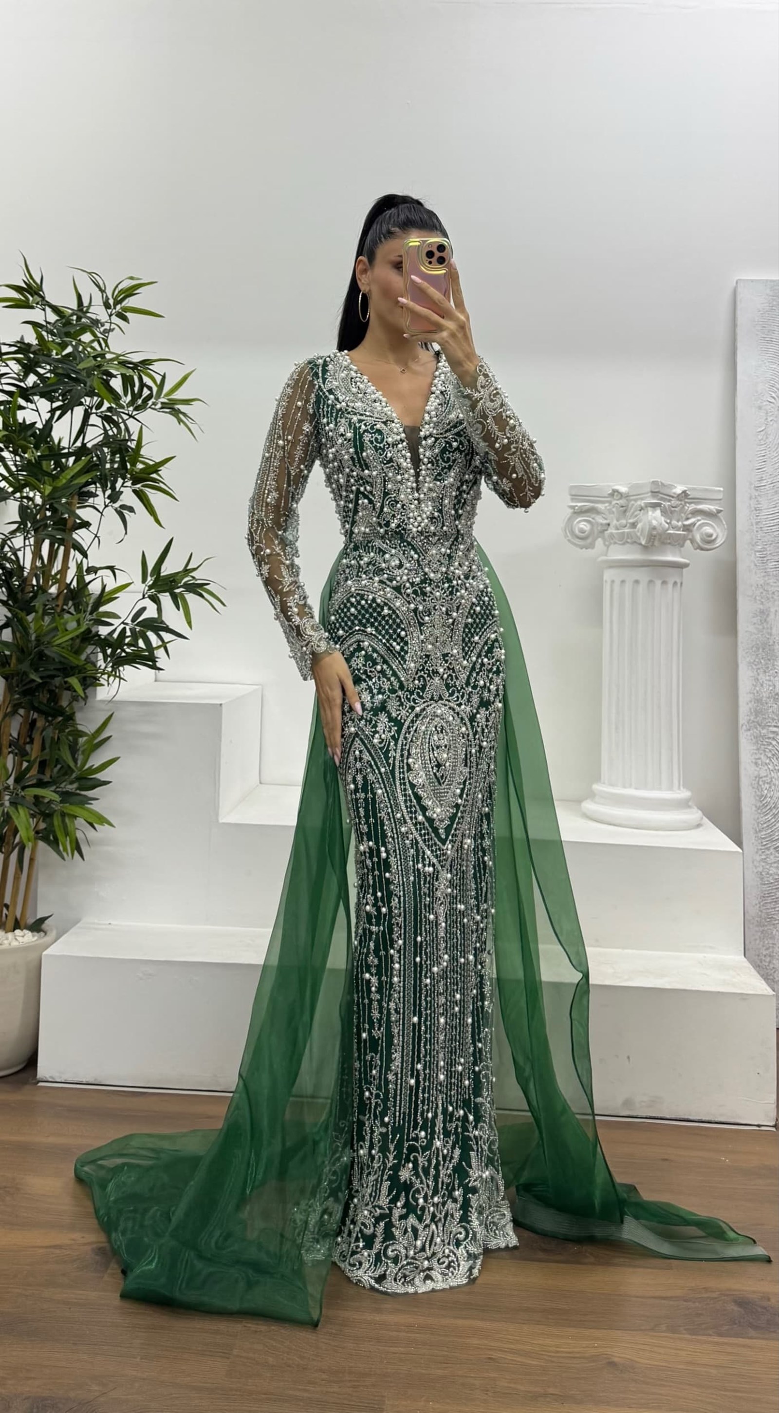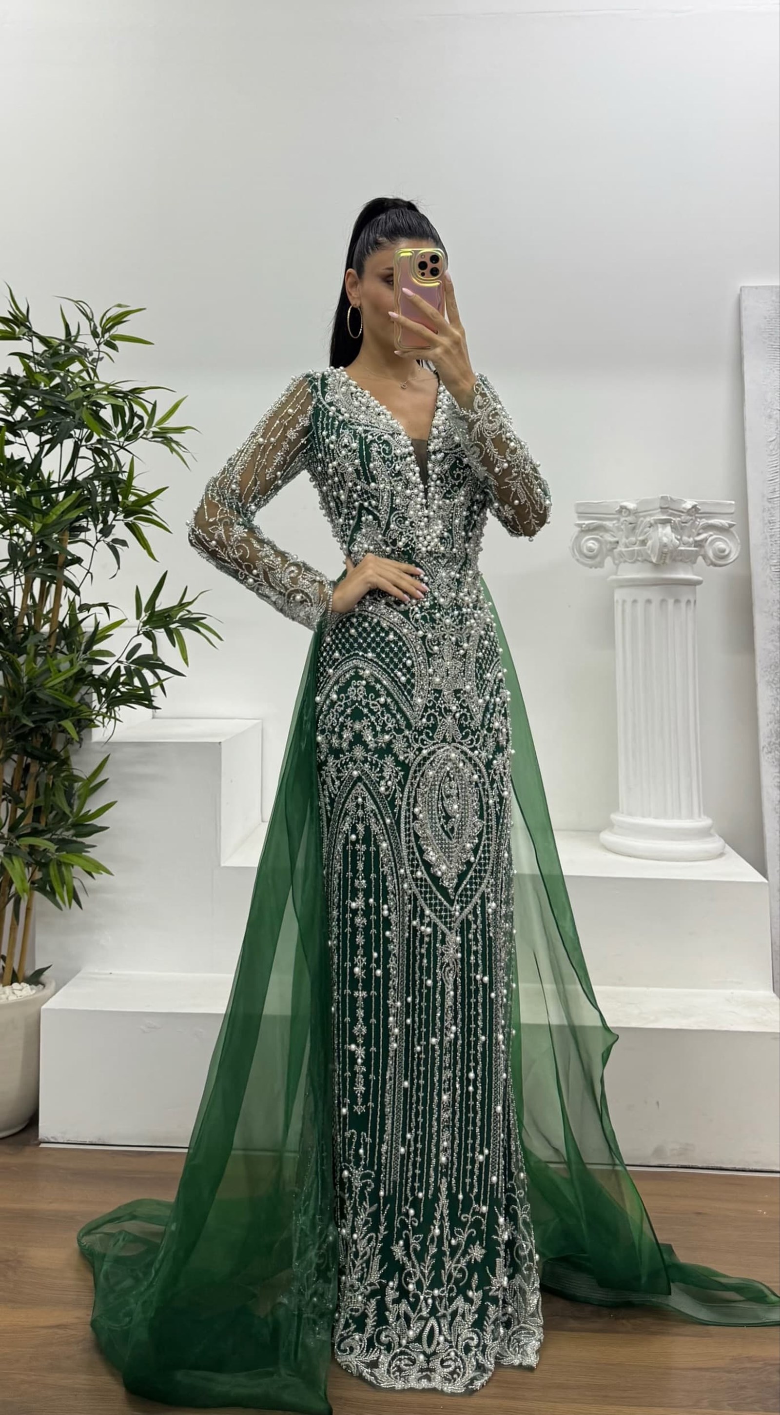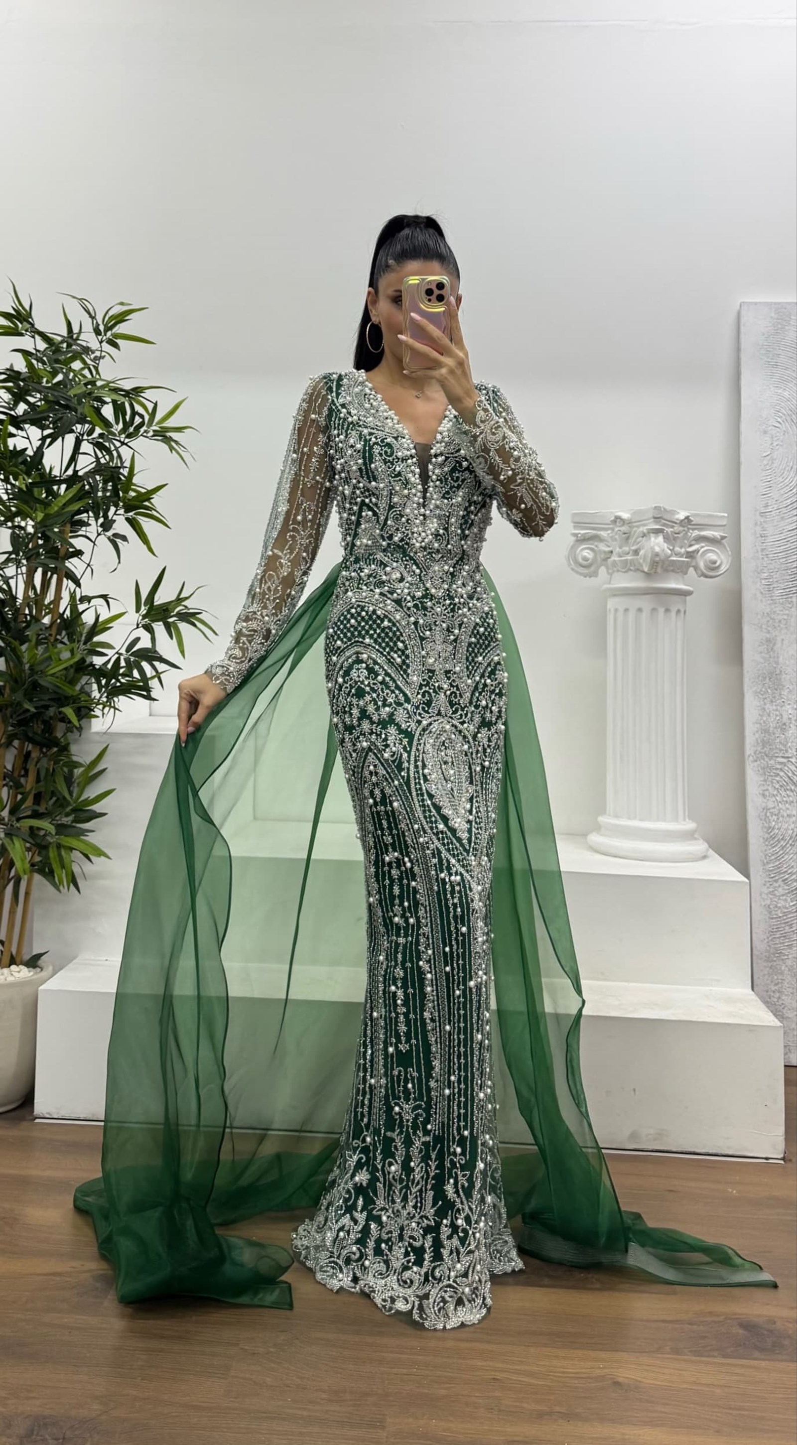 • Yeşil İşlemeli Abiye Elbise