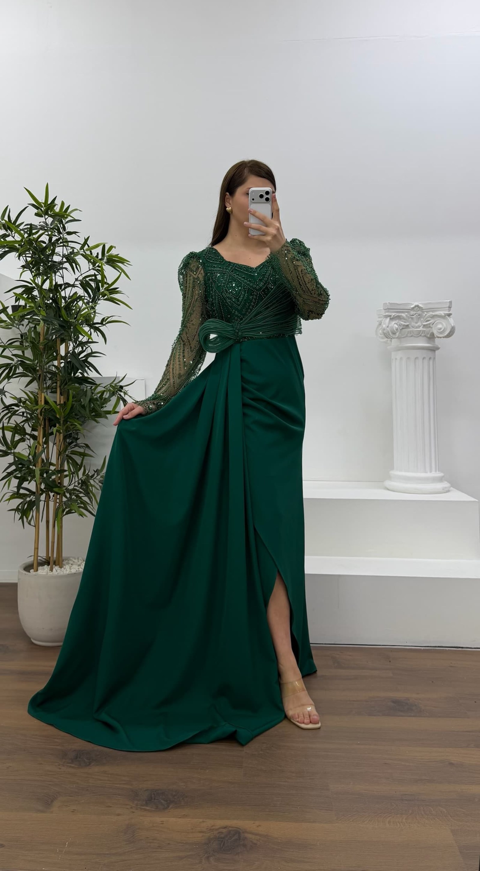 Ürün 46-52 bedene kadar uyumludur. göğüs pedli, astarlı, arka kapama fermuar, yırtmaçlı, bel detay abiye olarak tasarlanmıştır.