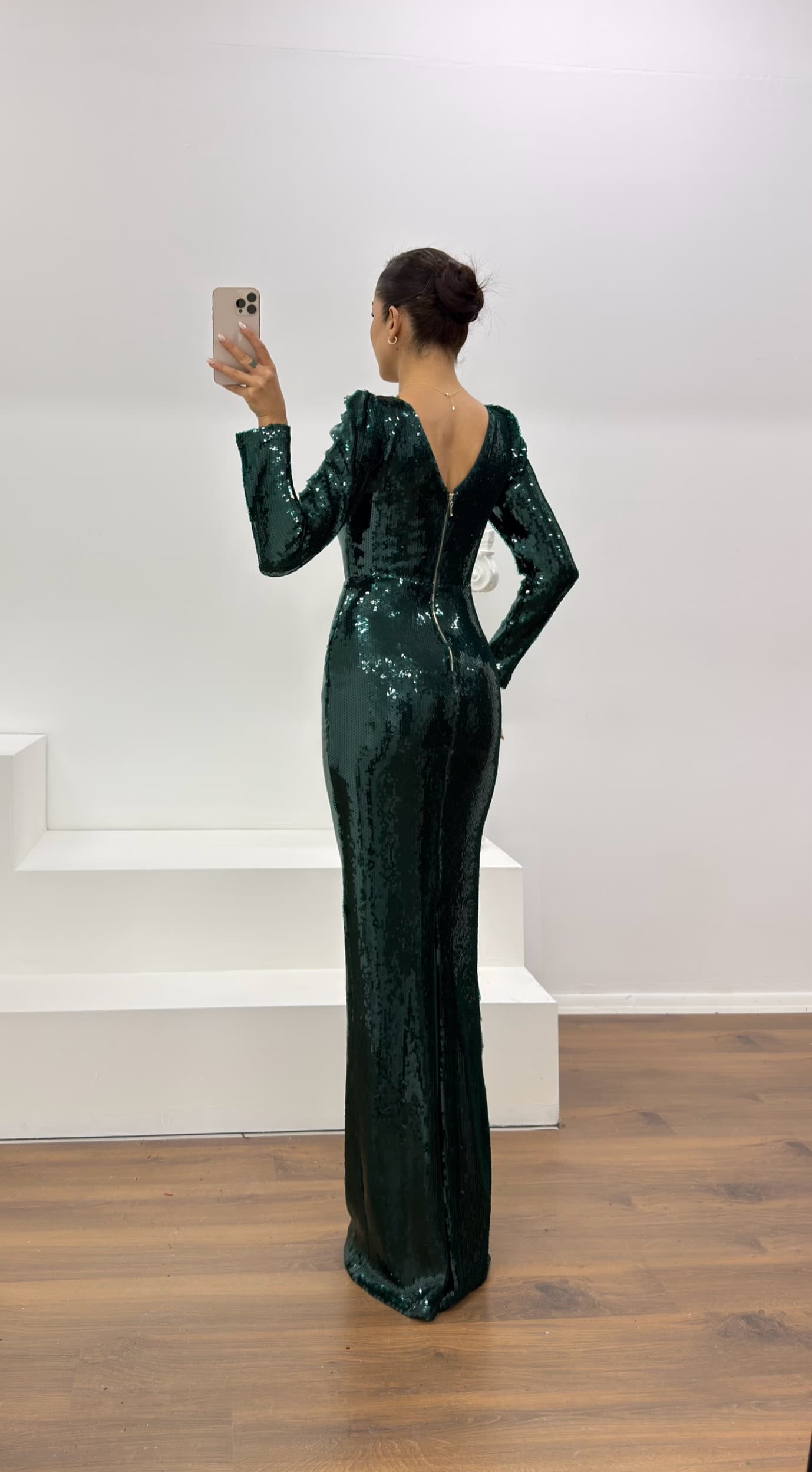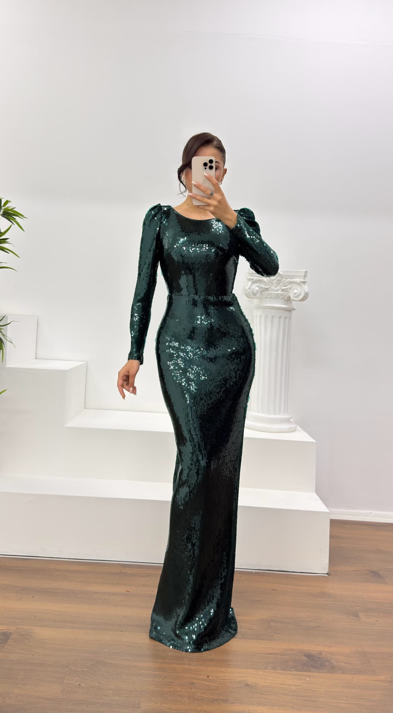 Zümrüt Pullu Abiye Elbise
