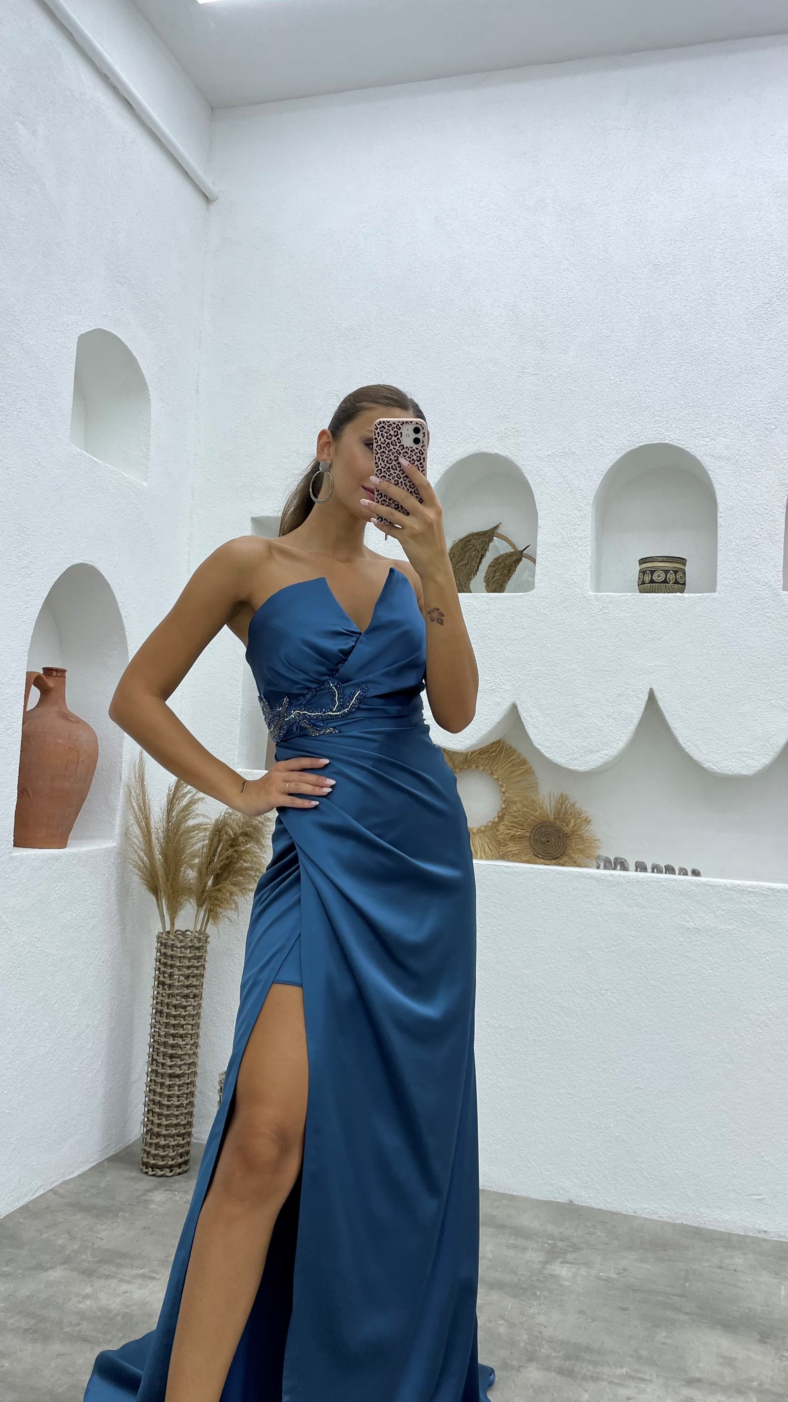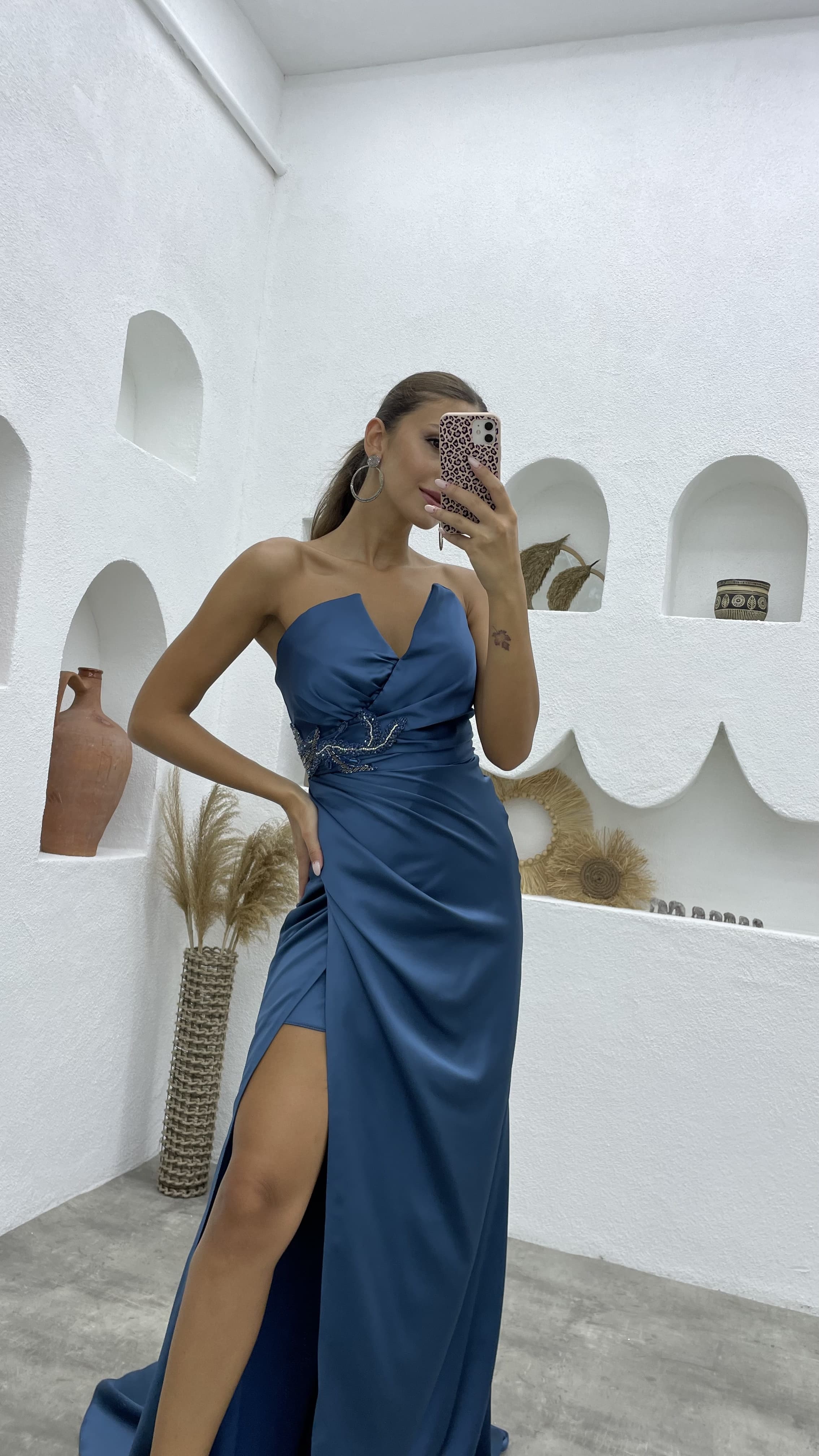 6 Ratingİndigo Bel Detay Straplez Abiye Elbise Ürün Yorumları