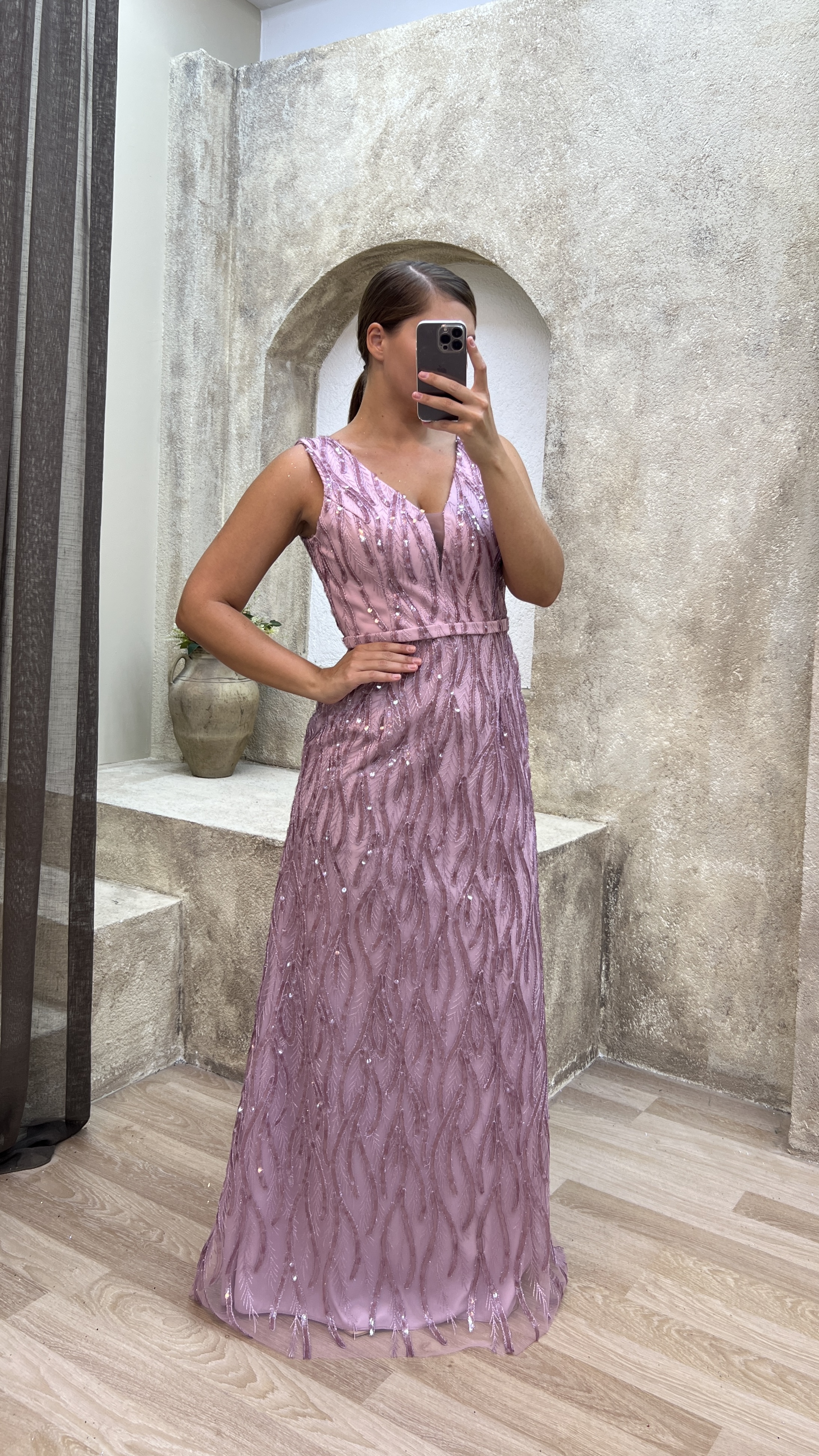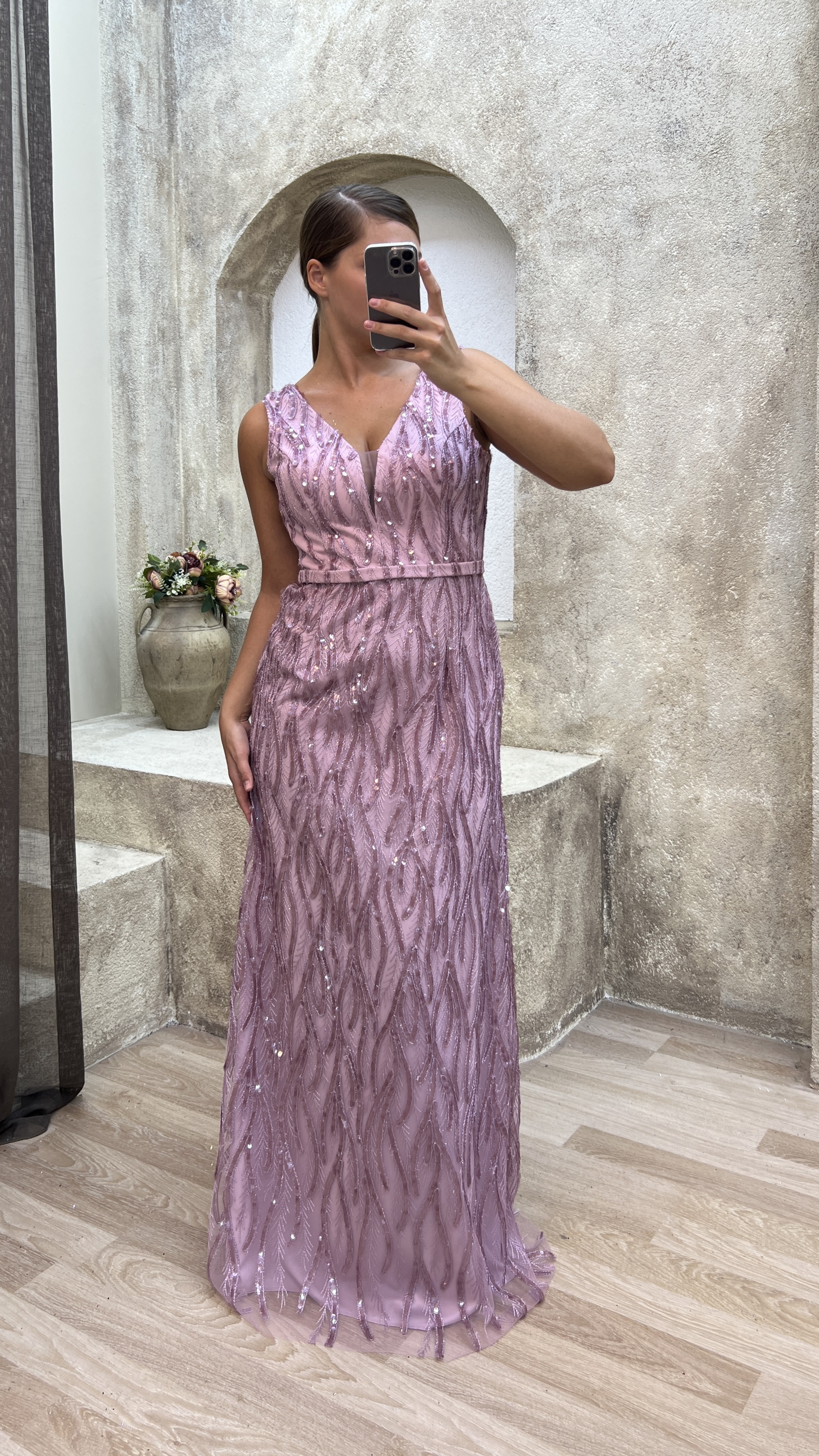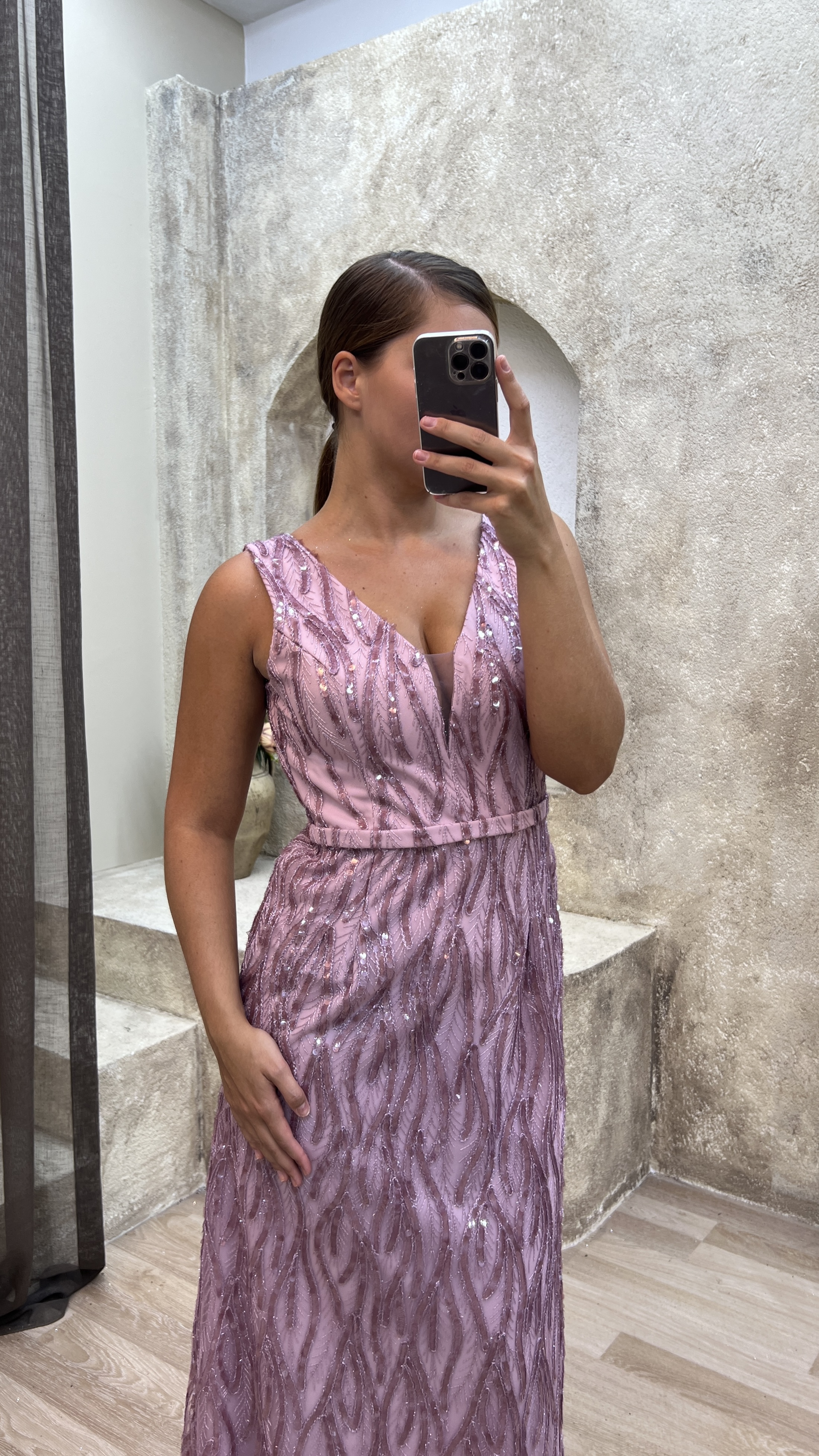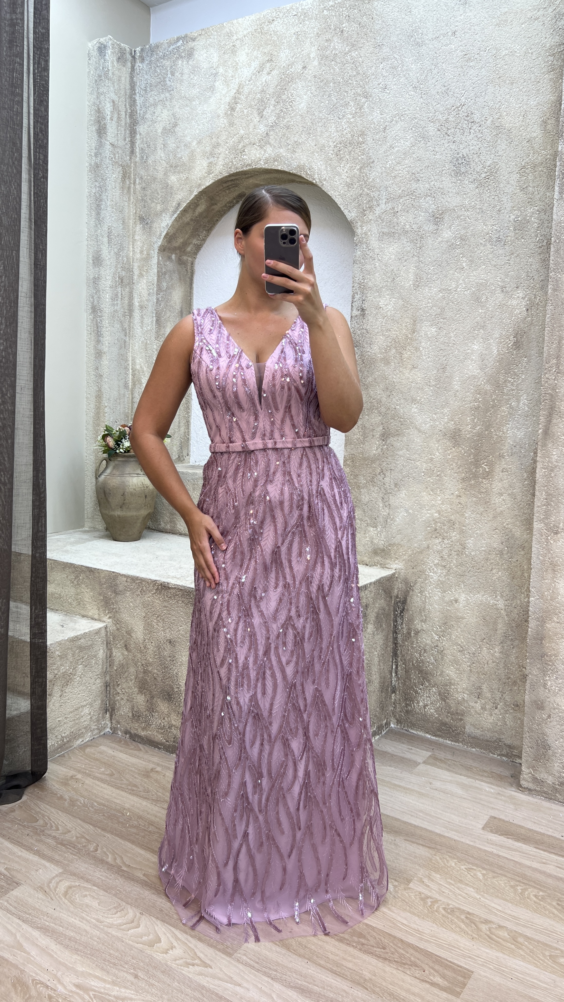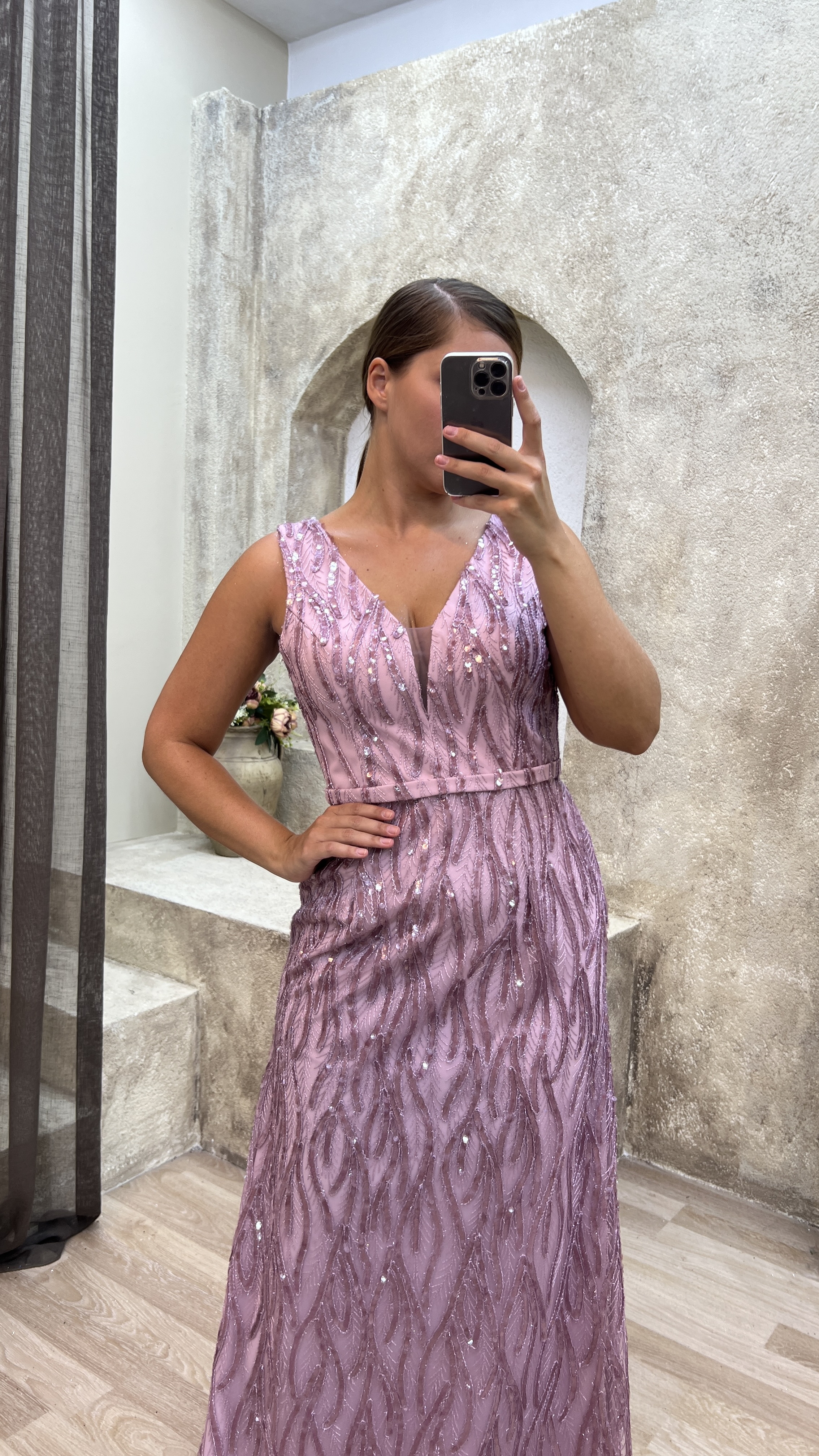 • Lilac Bust Detail Embroidered Design Evening Dress