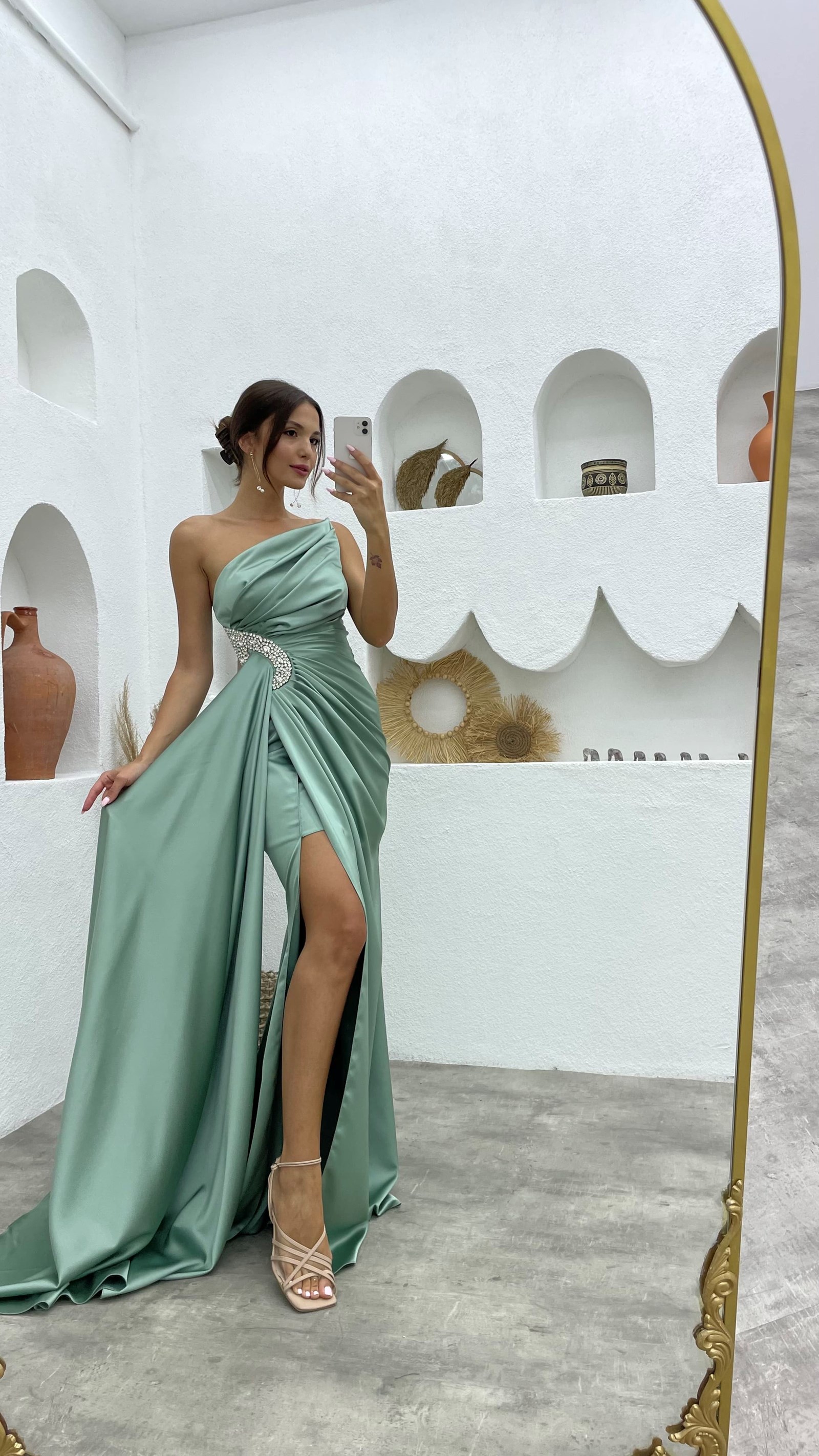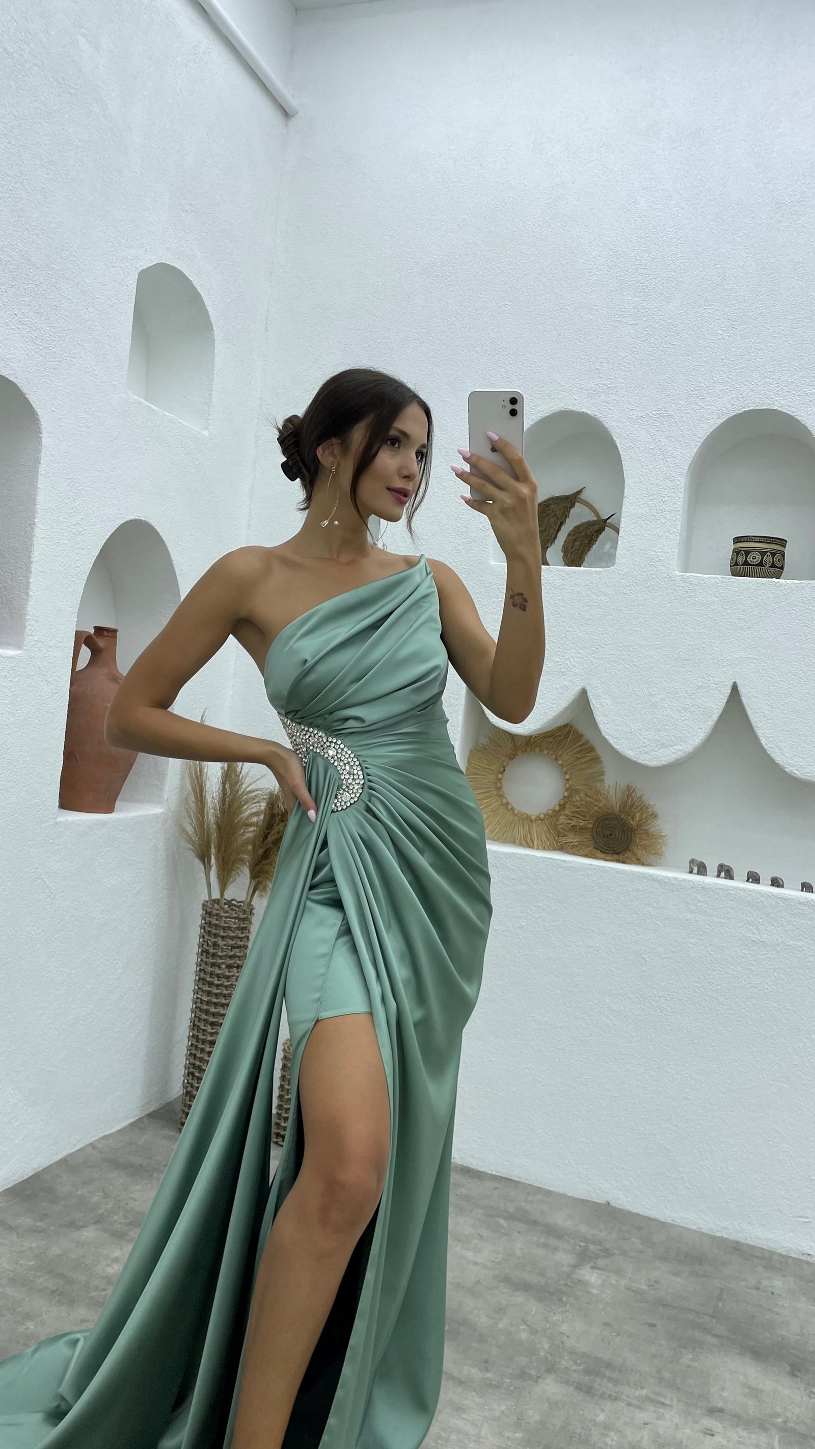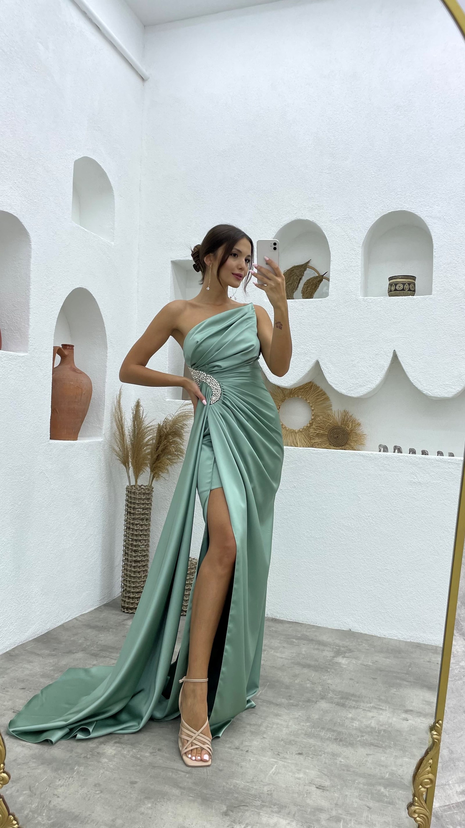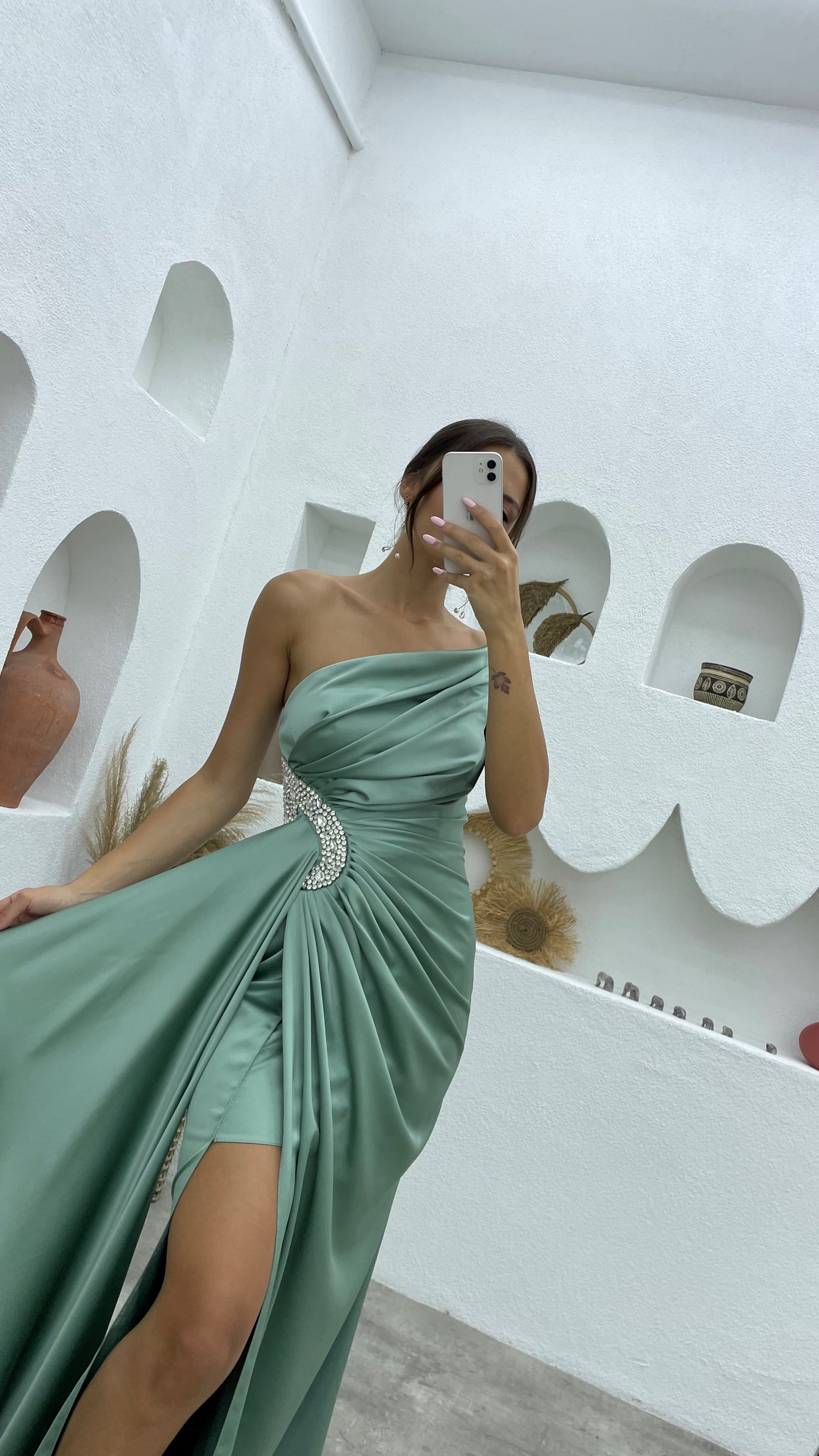 5 RatingMint Yeşili Straplez İşlemeli Saten Abiye Elbise Ürün Yorumları