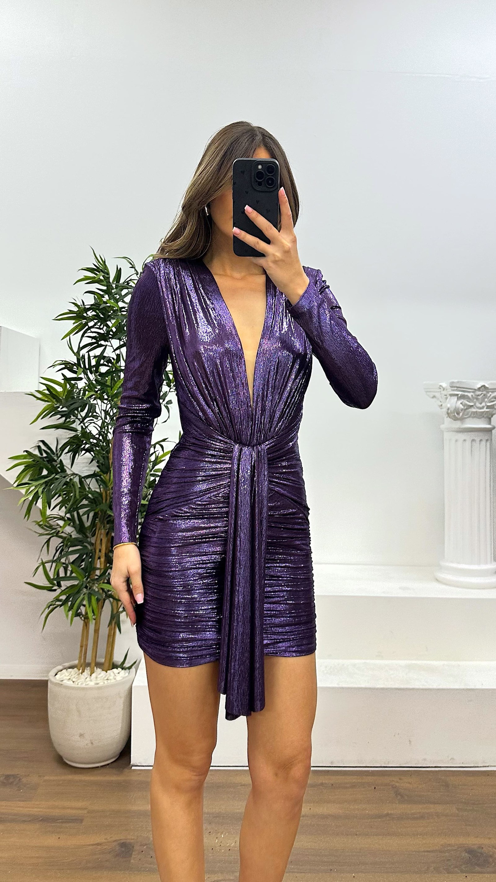 8 RatingMor V Yaka Drapeli Abiye Elbise Ürün Yorumları