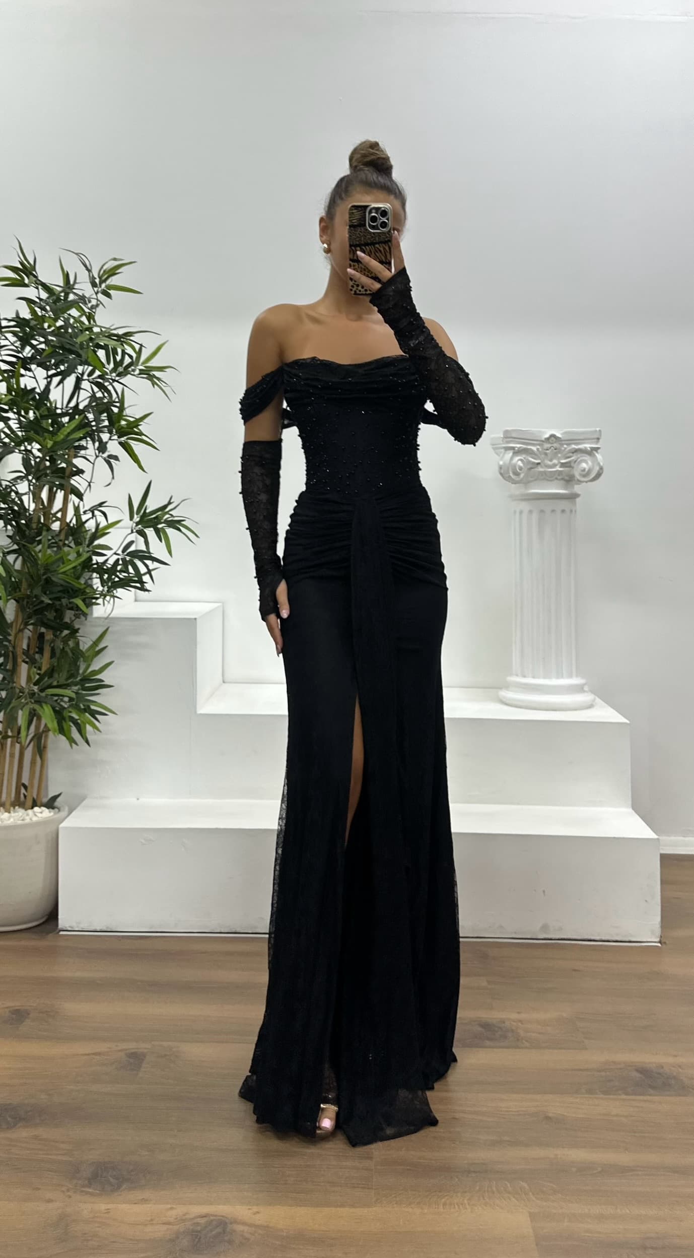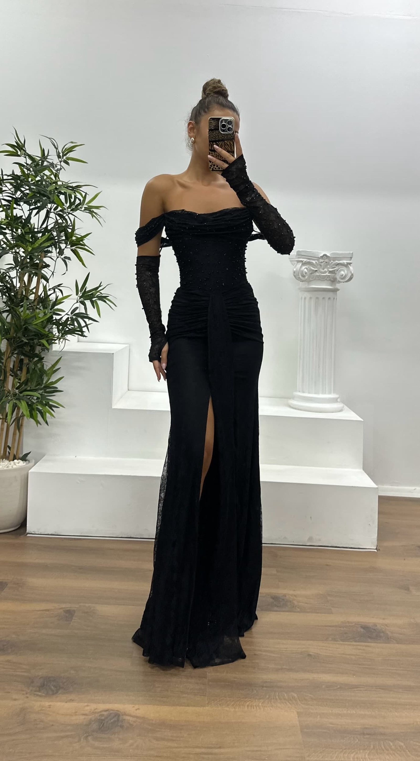 • Black Pearl Lace Evening Dress