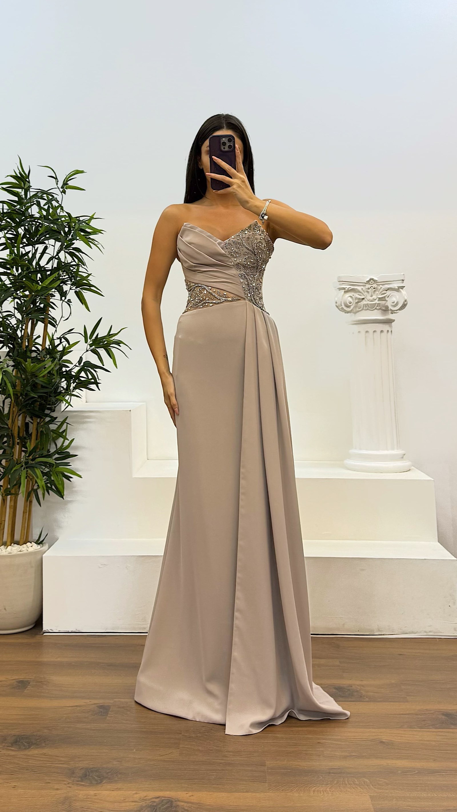 • Taş İp Askılı İşleme Detay Abiye Elbise