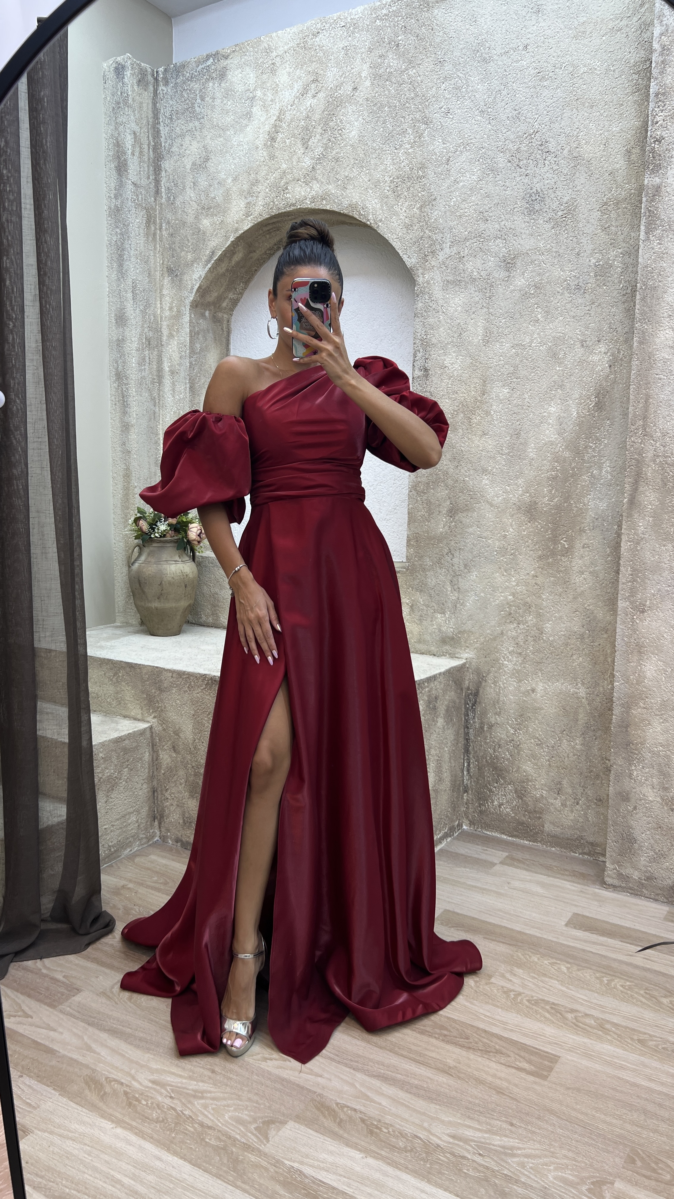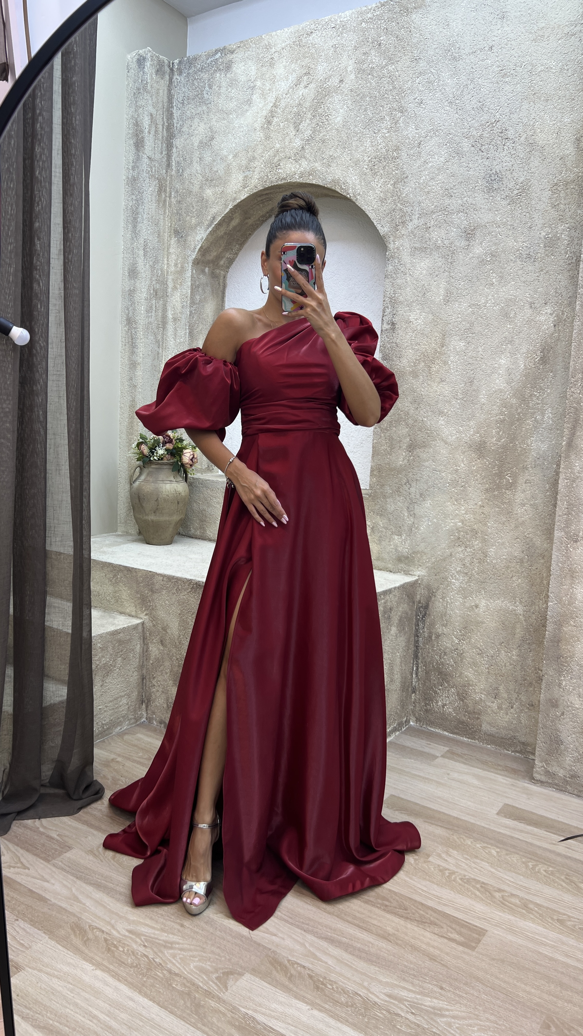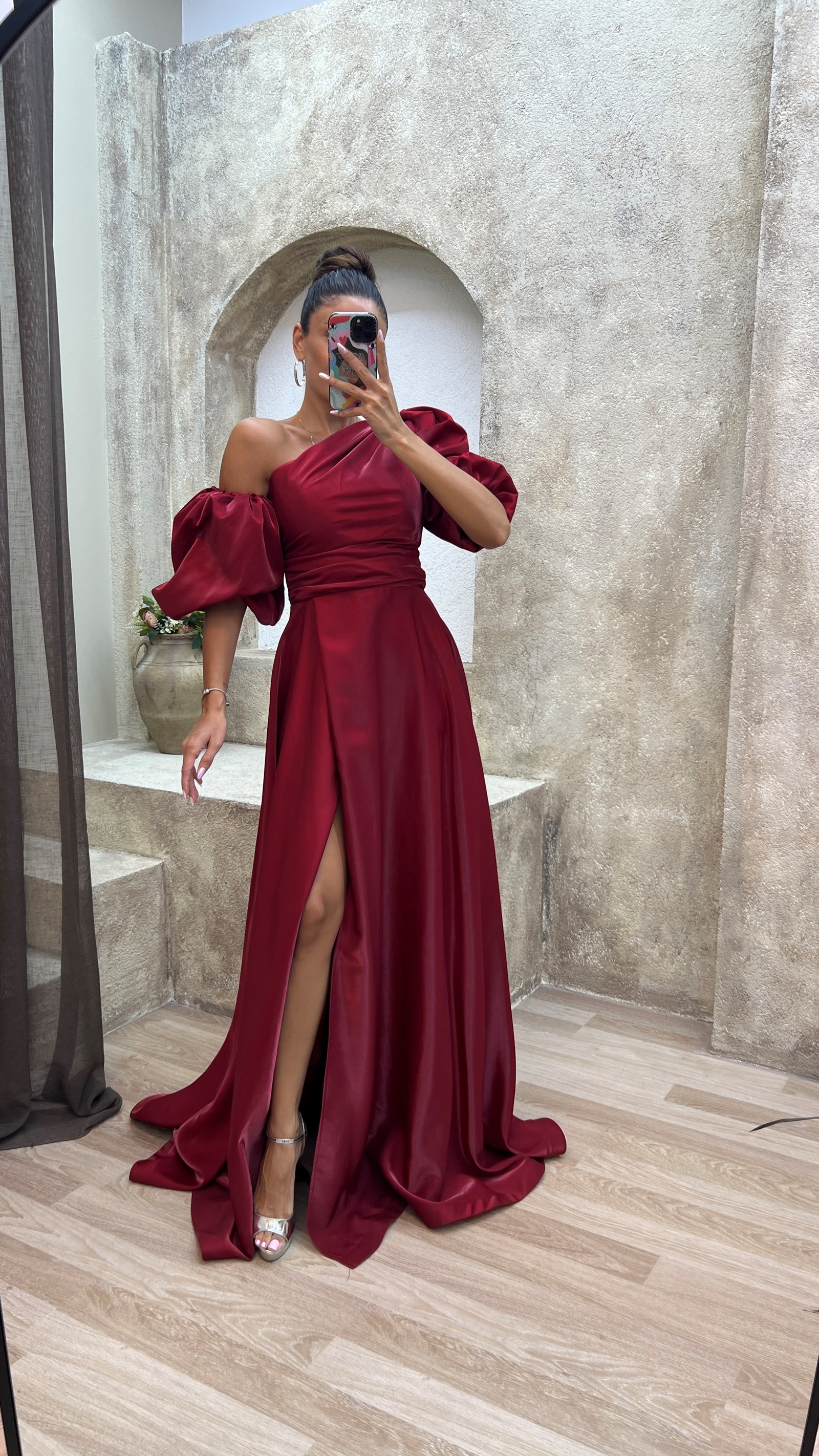 Bedeni tam oldu. Yalnız boyu çok uzun kesilmesi gerek. Terzilik işi var yani. Yırtmacı da tam kararında bana göre. Duruşu güzel bir elbise.