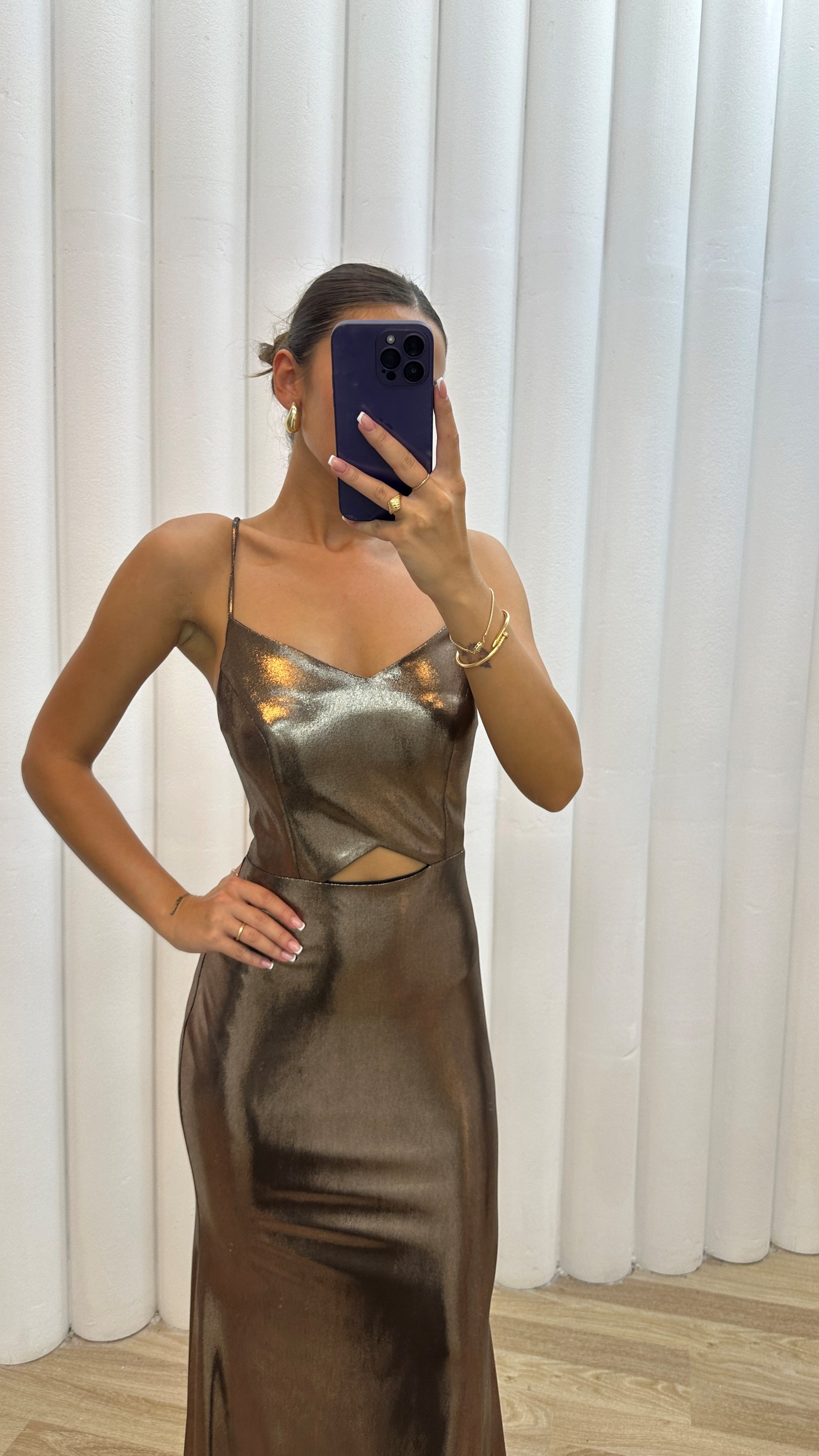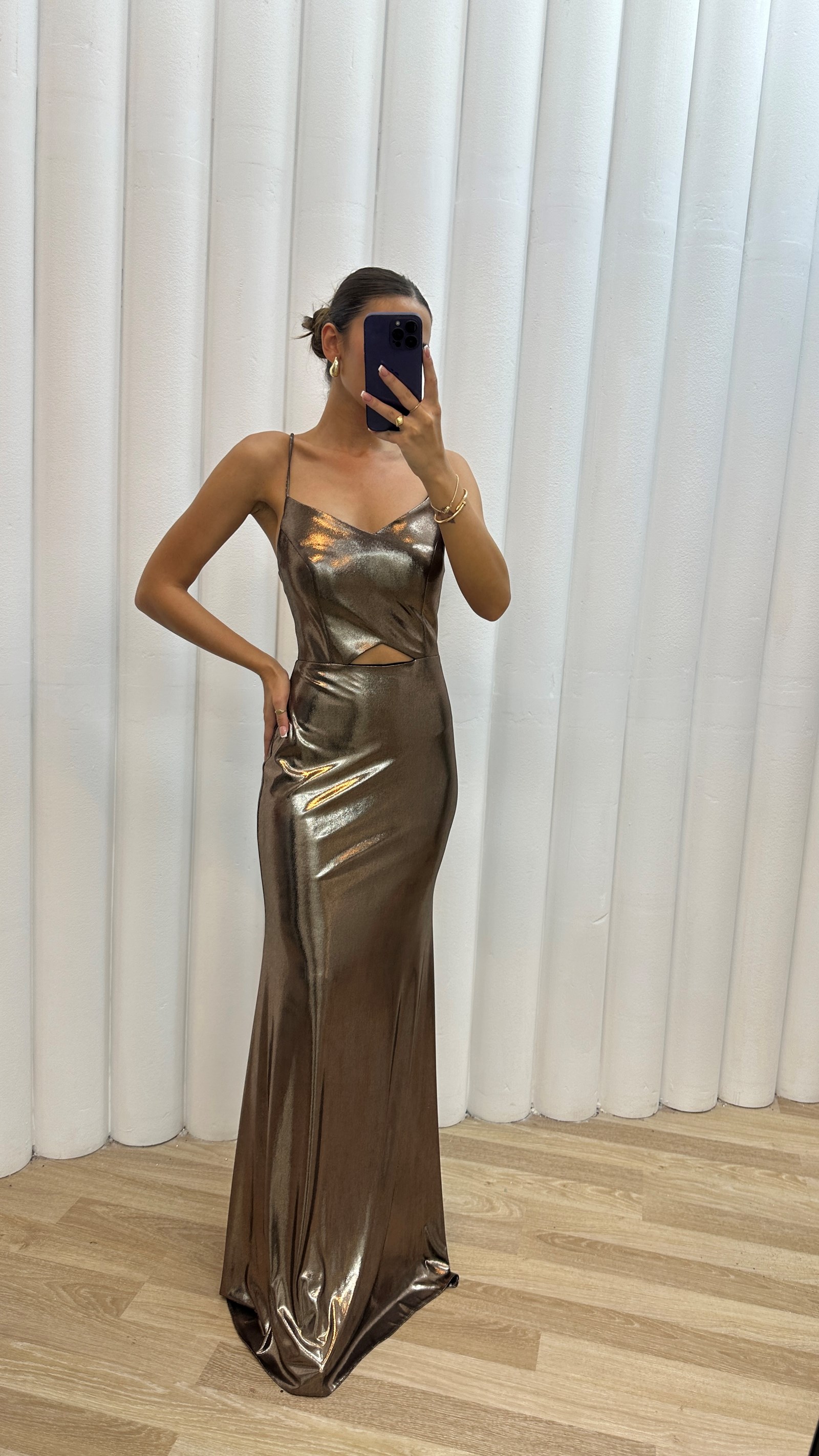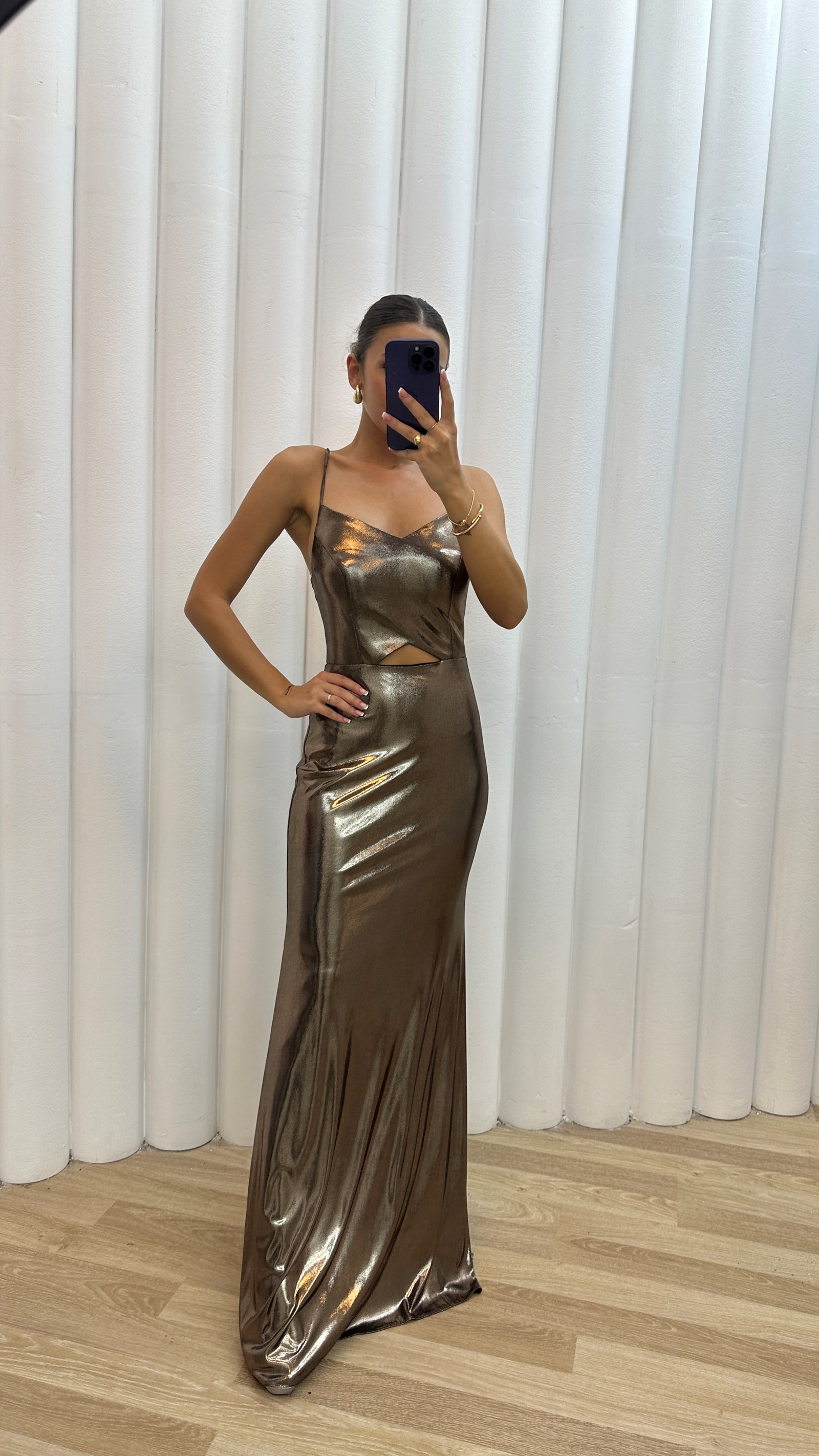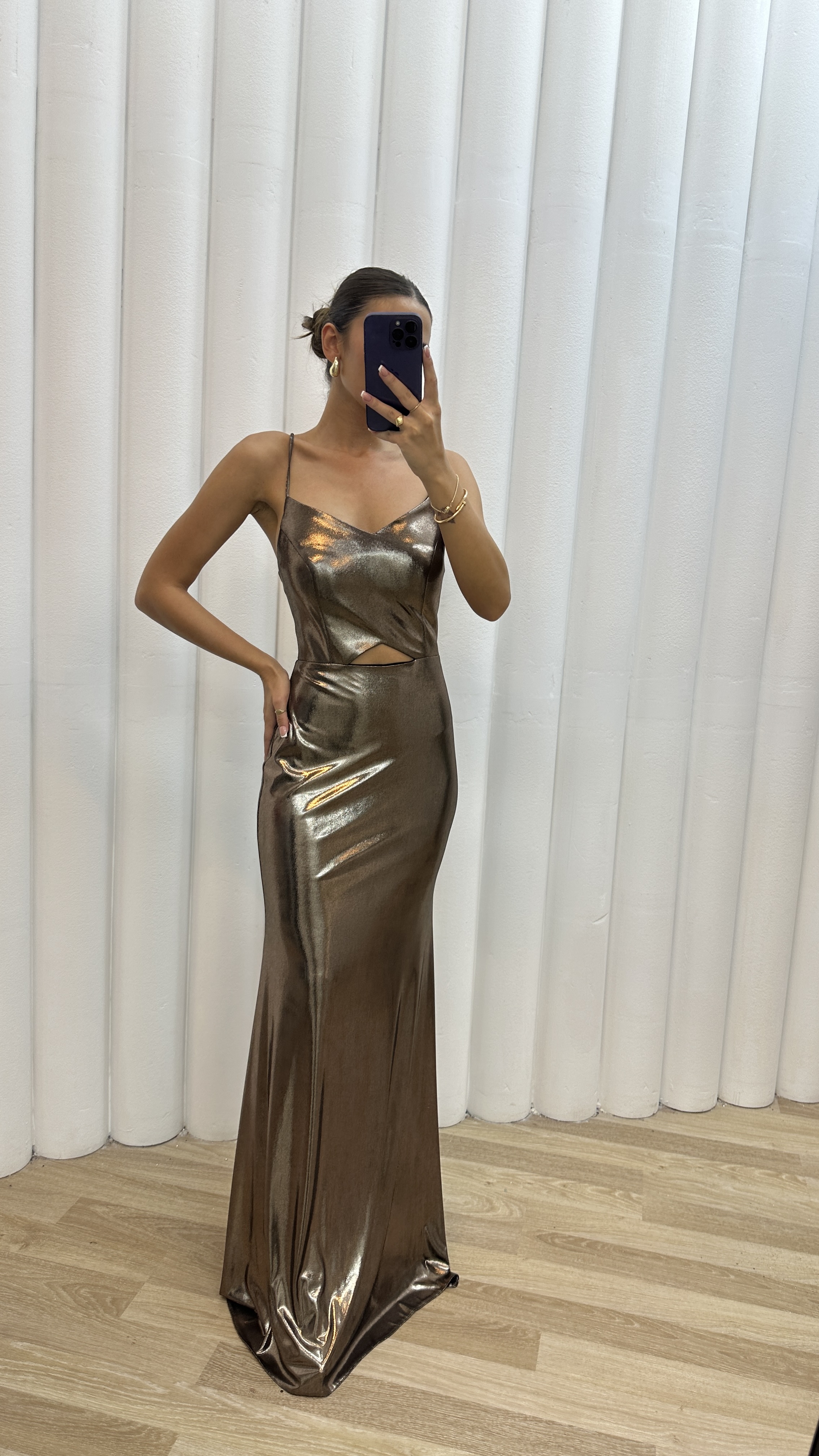 • Vizon Sırtı Çapraz Detay İp Askılı Abiye Elbise
