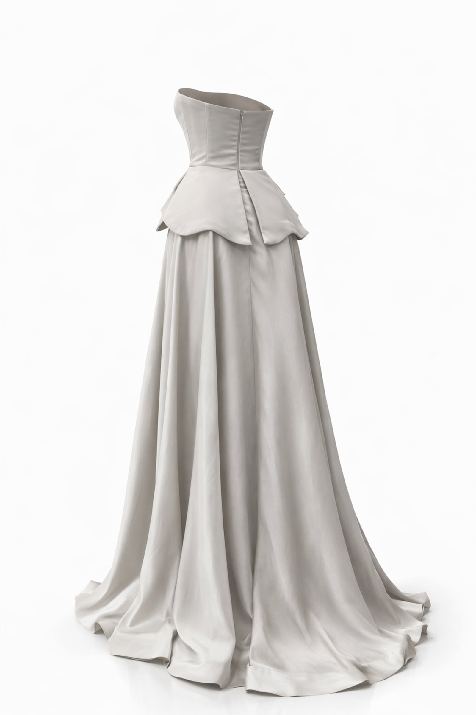 • Taş Straplez İşlemeli Saten Abiye Elbise