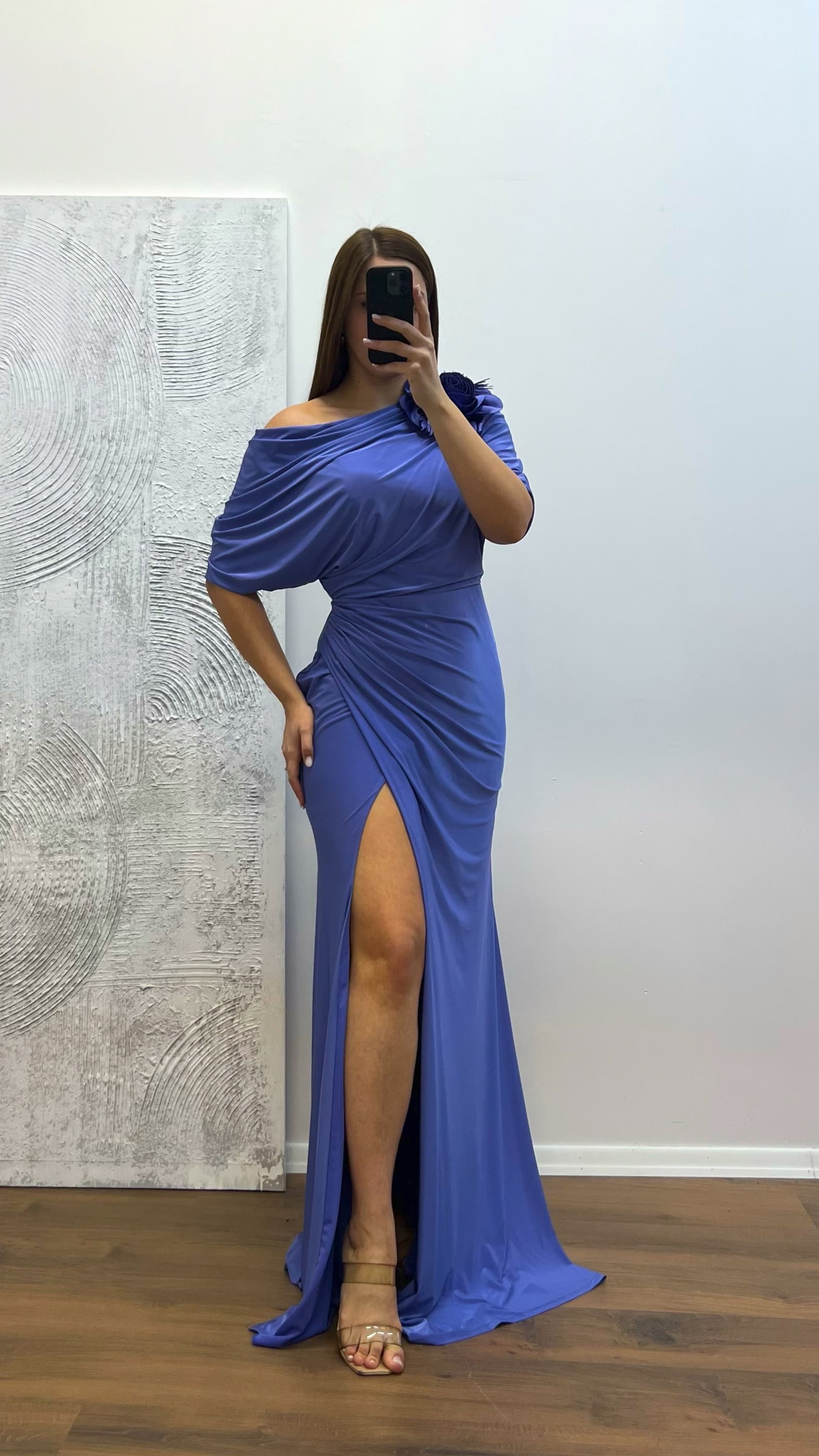 • Lavanta Çiçek Detay Büyük Beden Abiye Elbise