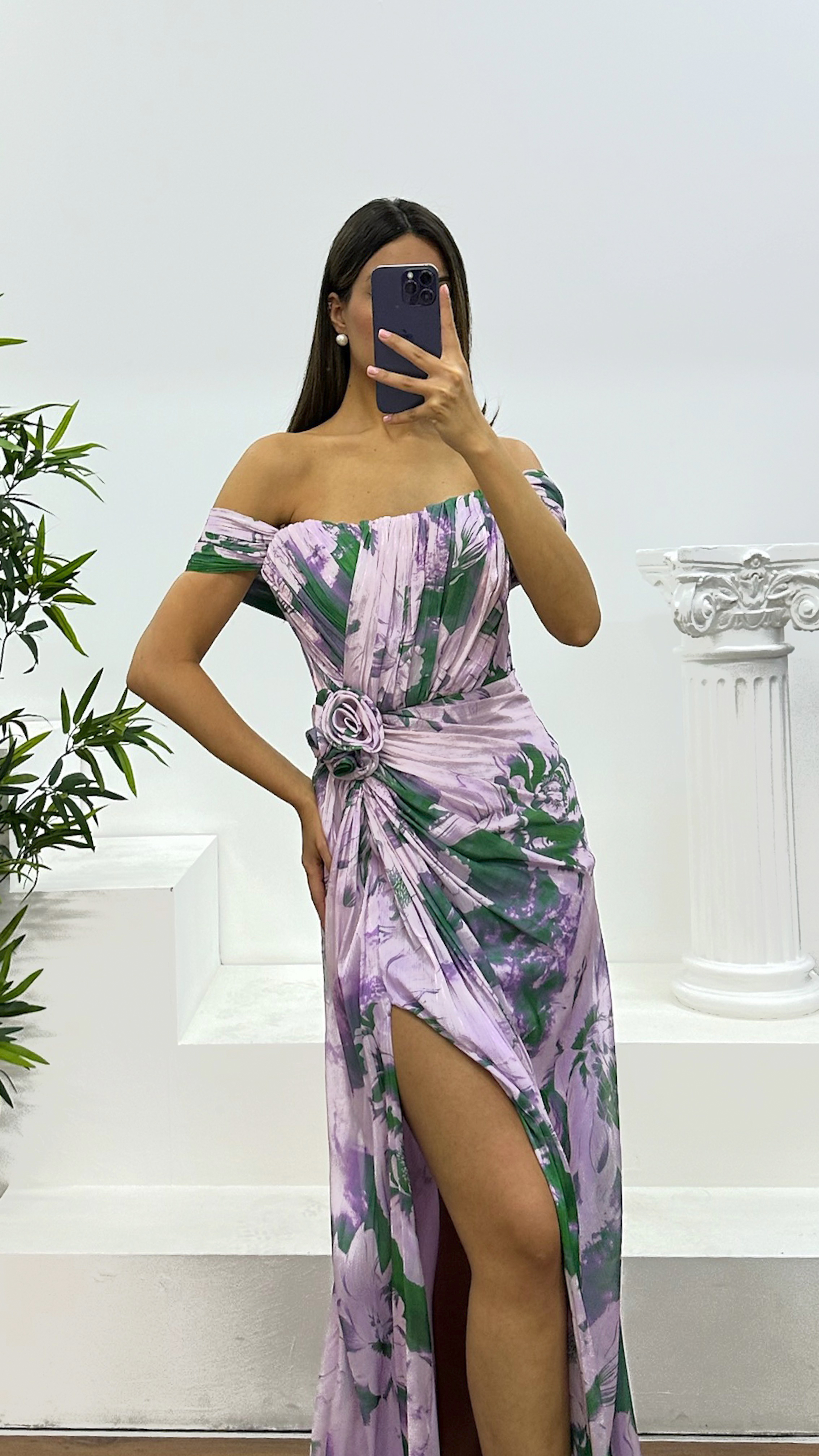 Vestido de fiesta con detalles florales Apto para tallas de la 36 a la 44, con copas en el busto, forro, cremallera trasera y abertura. Diseñado con detalles florales. Longitud del producto: Puede variar entre 170-175 cm. Tipo de tela: gasa, 66 % viscosa, 34 % poliéster.